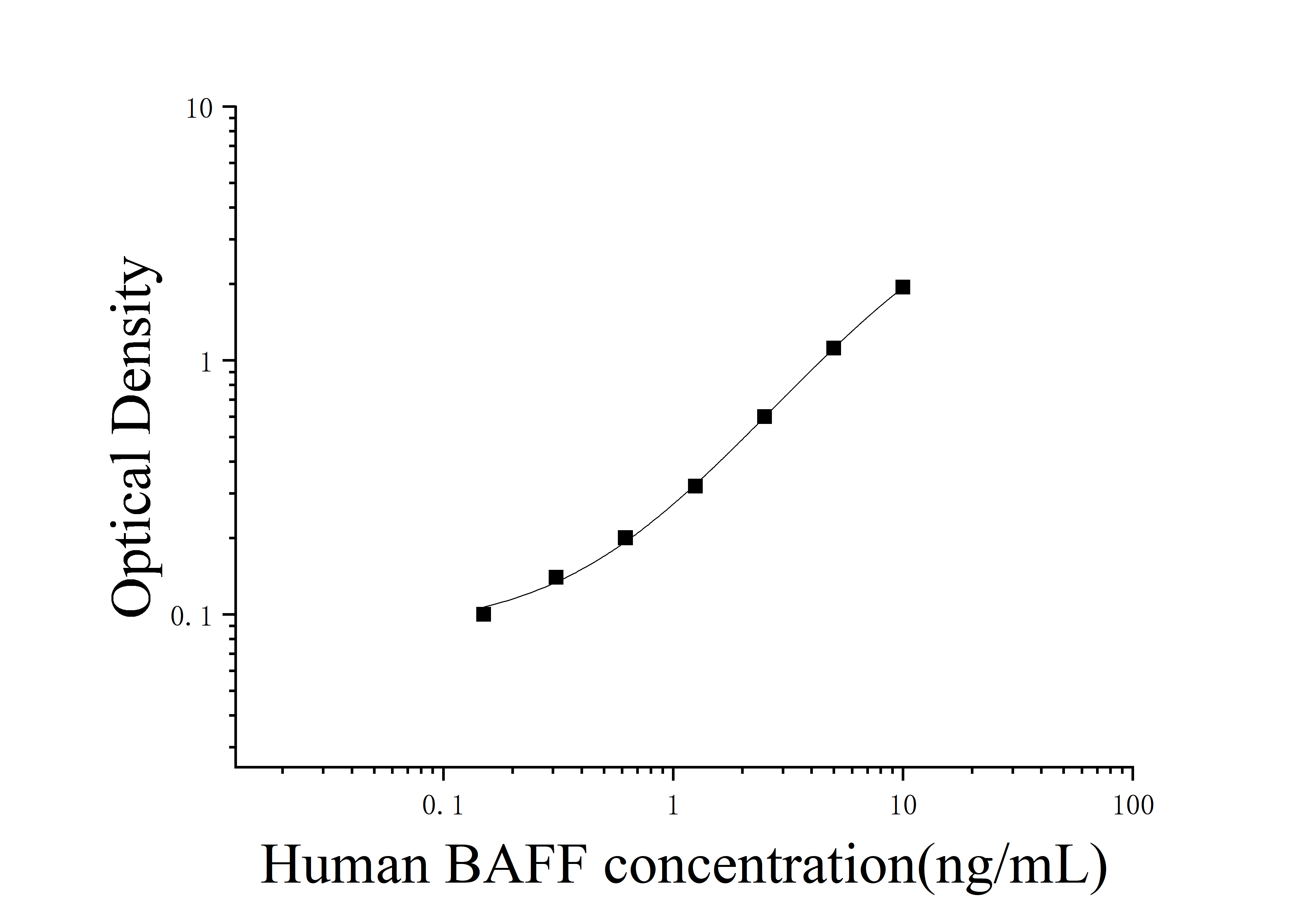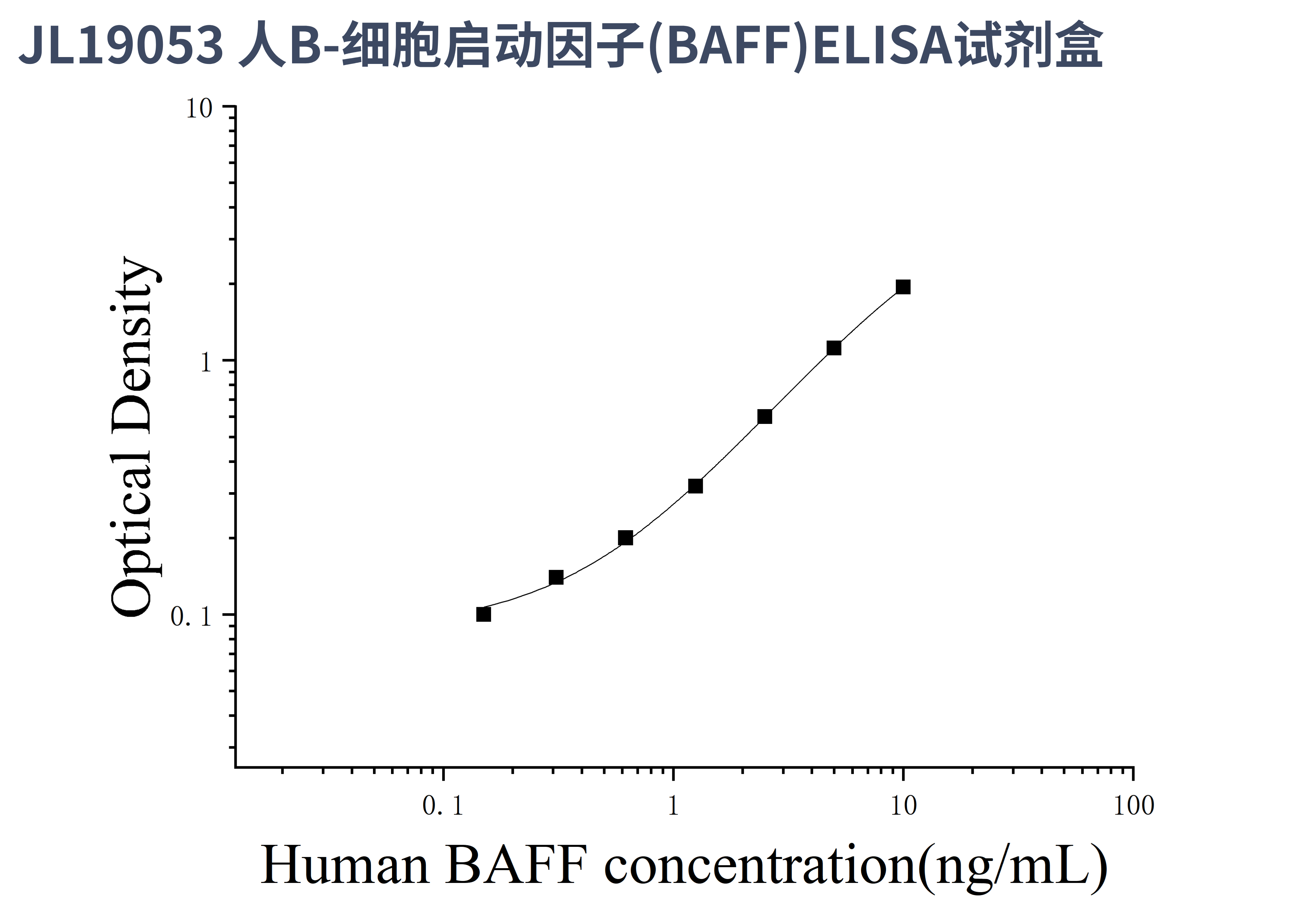 由于实验操作条件的不同( 如操作者、移液技术、洗板技术和稳定条件等),标准曲线的OD值会有所差异。以下数据和曲线仅供参考,实验者需根据自己的实验建立标准曲线。