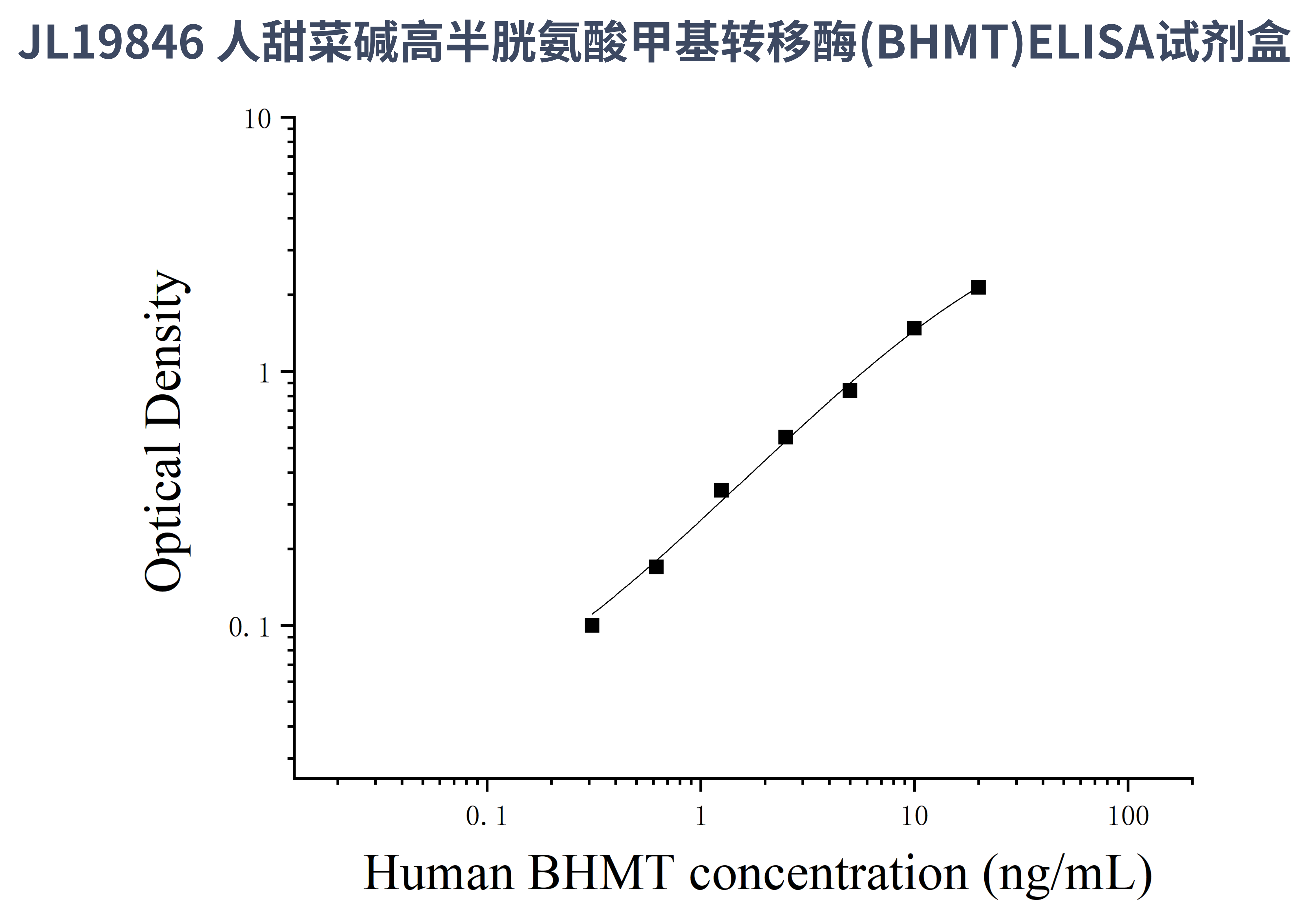 由于实验操作条件的不同( 如操作者、移液技术、洗板技术和稳定条件等),标准曲线的OD值会有所差异。以下数据和曲线仅供参考,实验者需根据自己的实验建立标准曲线。