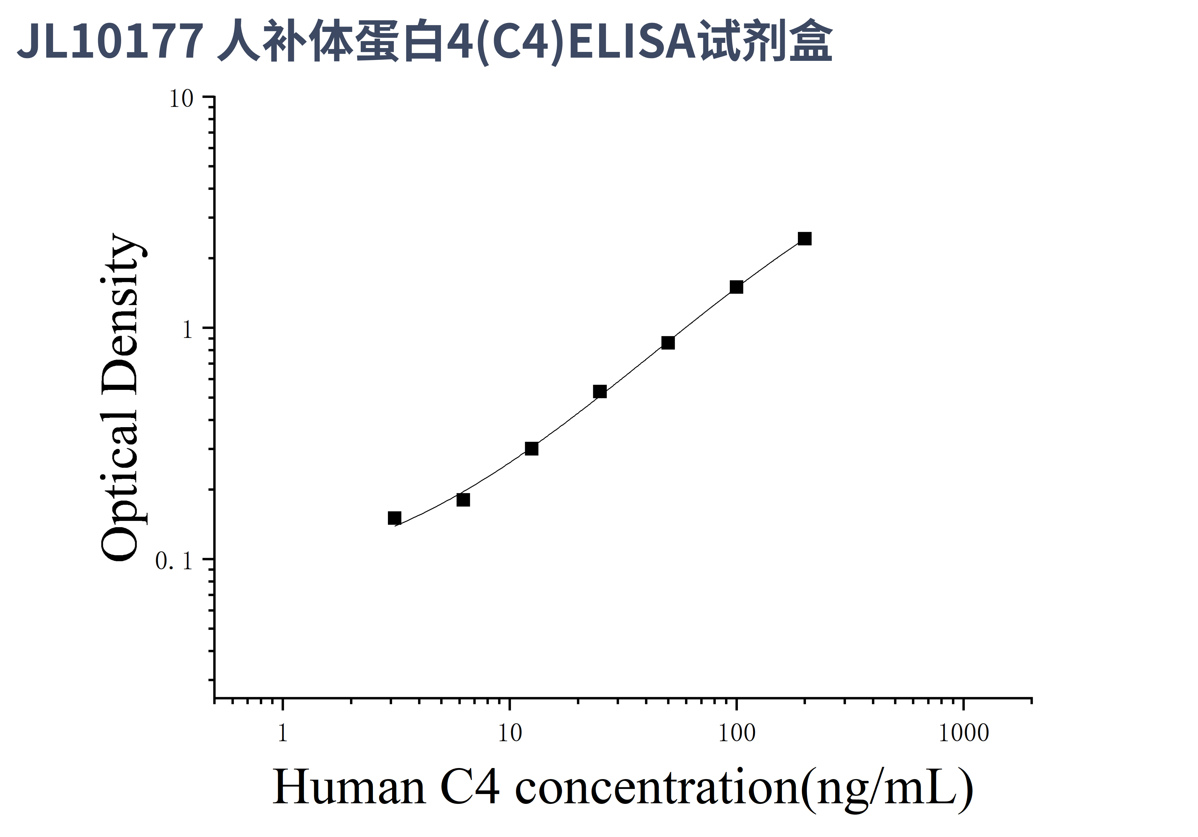 由于实验操作条件的不同( 如操作者、移液技术、洗板技术和稳定条件等),标准曲线的OD值会有所差异。以下数据和曲线仅供参考,实验者需根据自己的实验建立标准曲线。