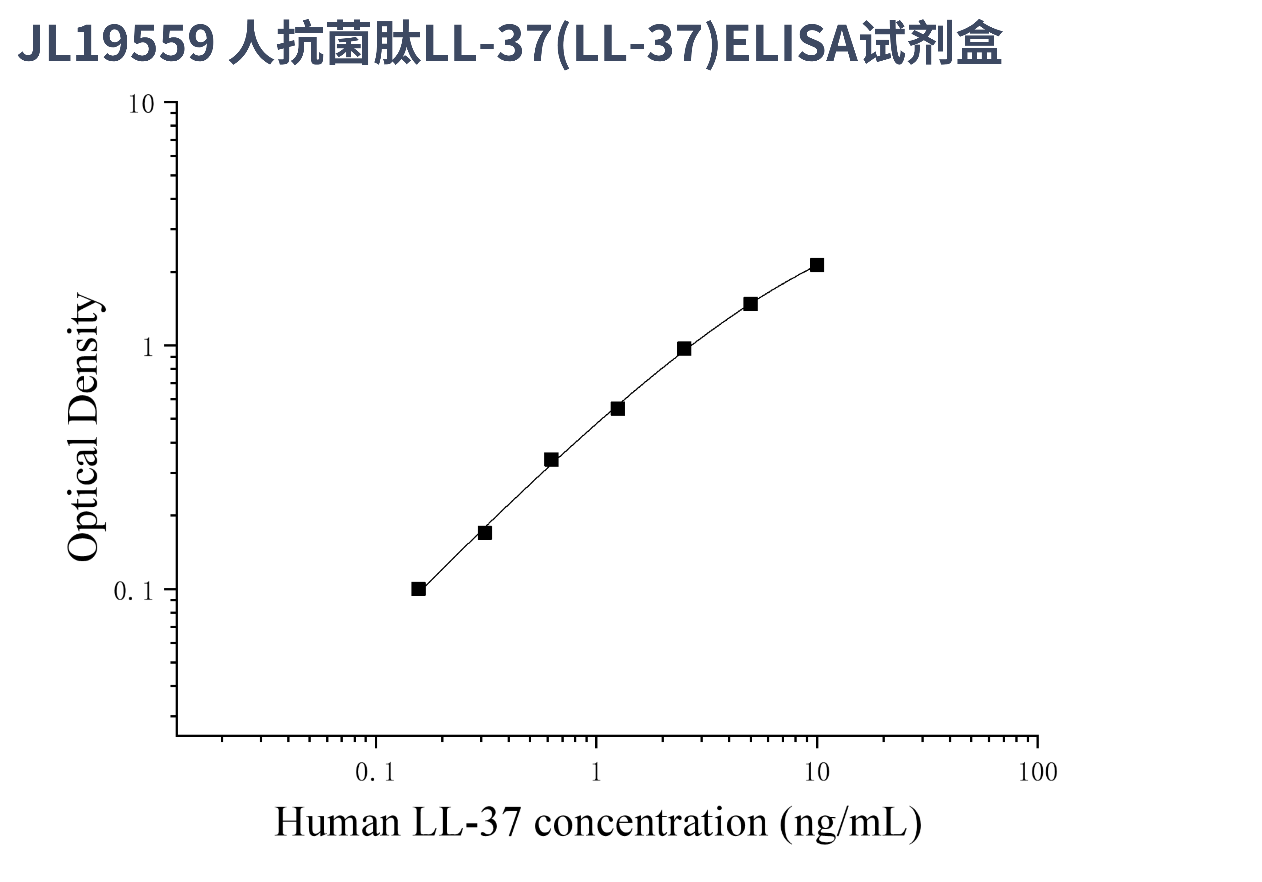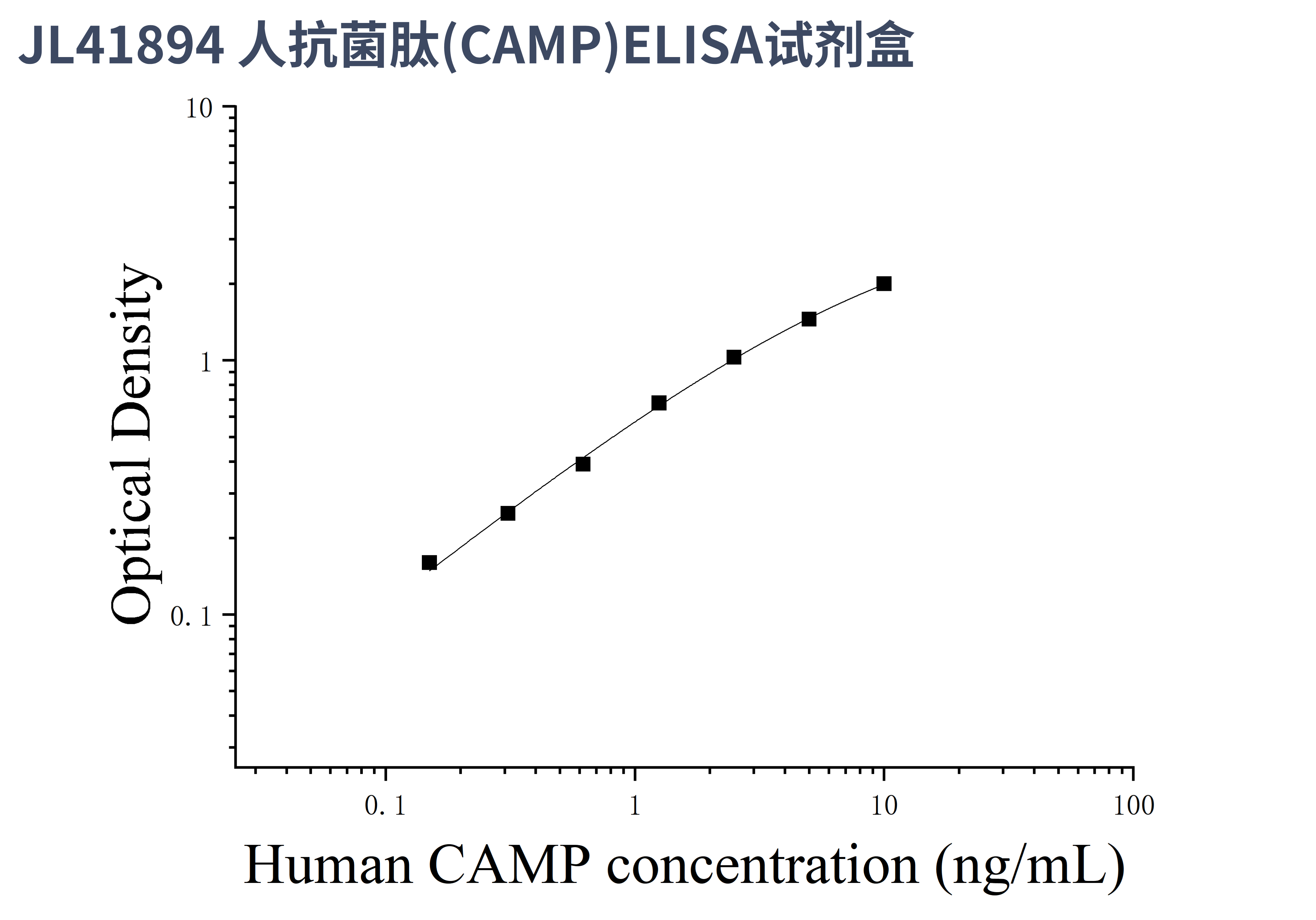 由于实验操作条件的不同( 如操作者、移液技术、洗板技术和稳定条件等),标准曲线的OD值会有所差异。以下数据和曲线仅供参考,实验者需根据自己的实验建立标准曲线。