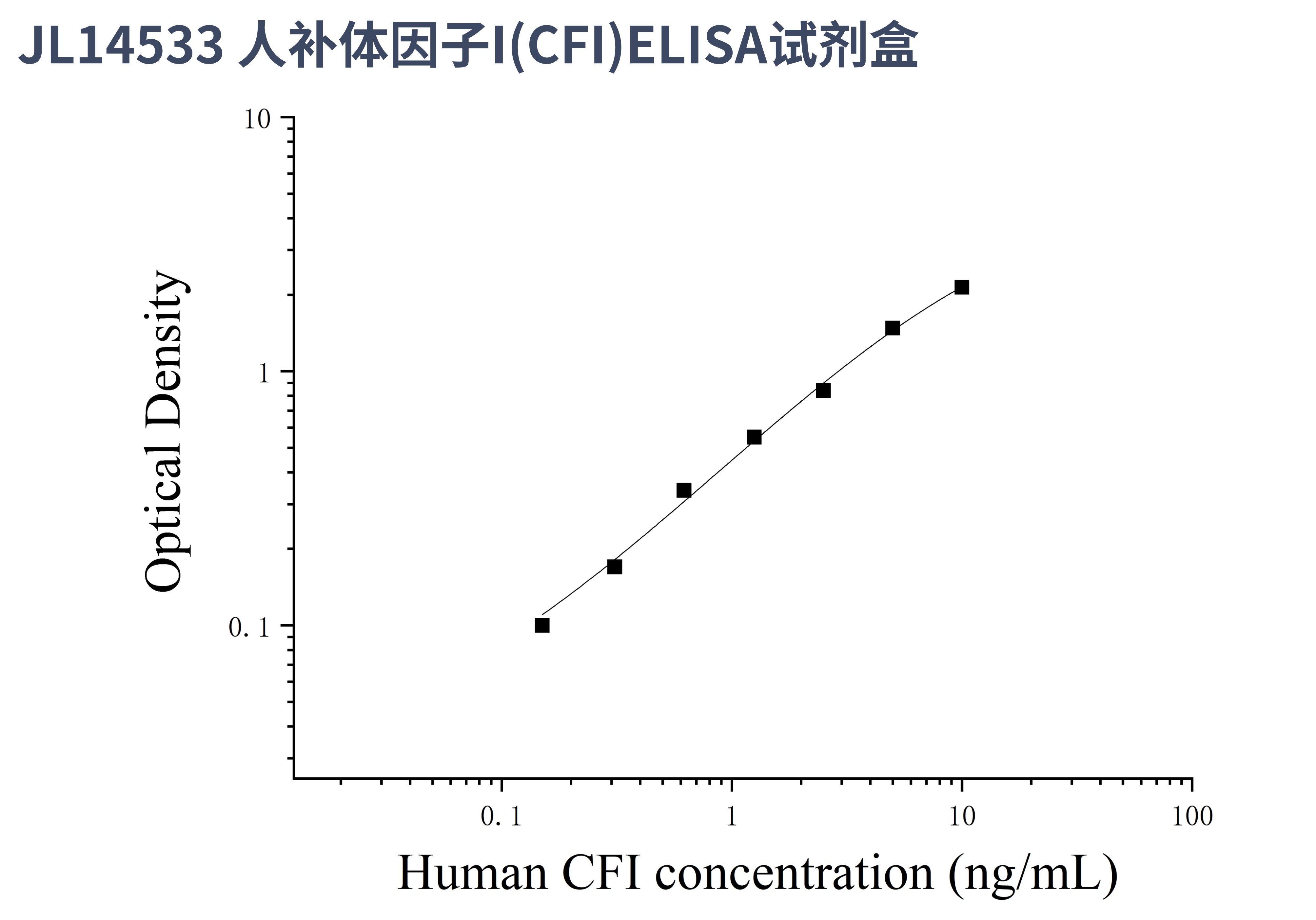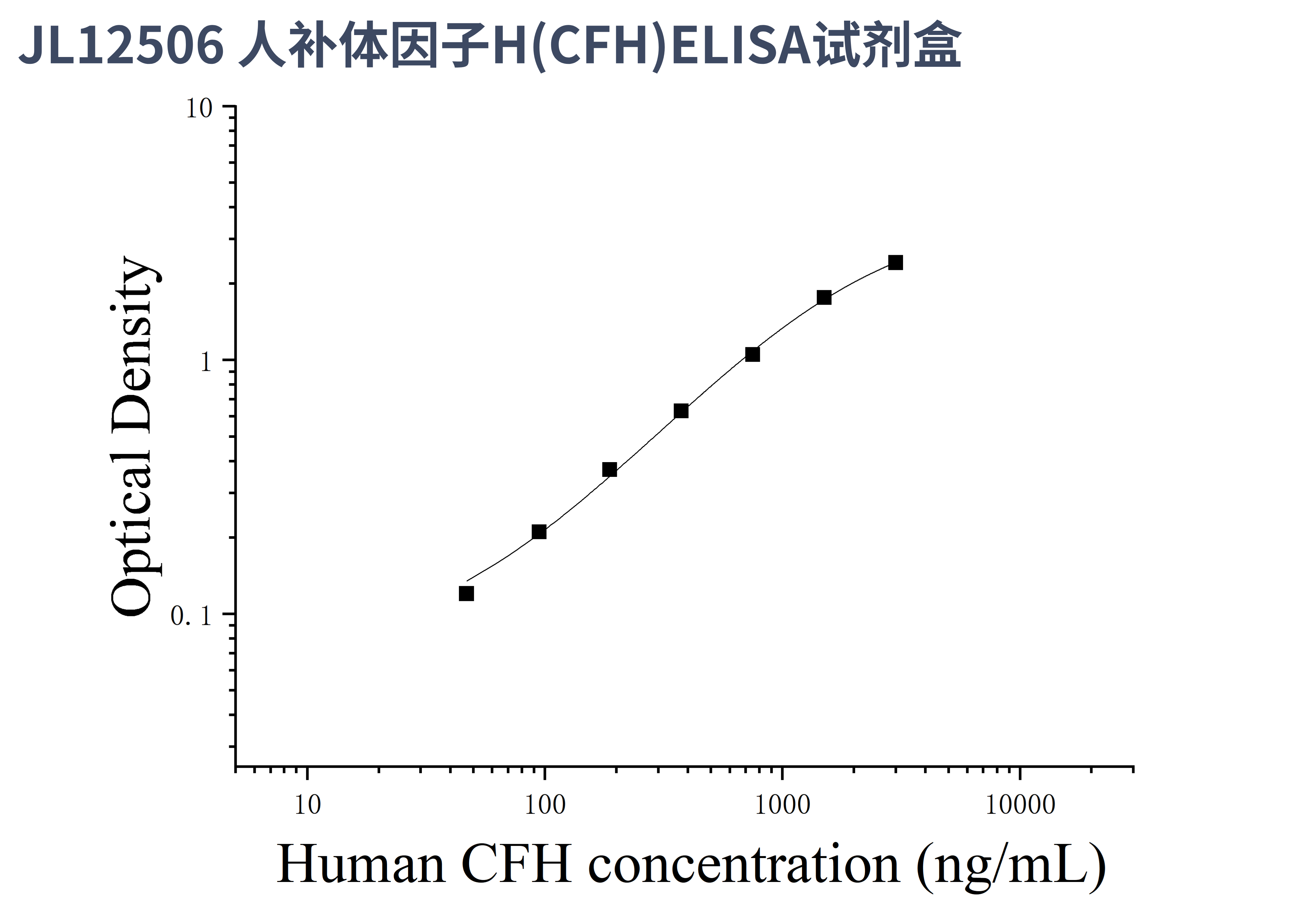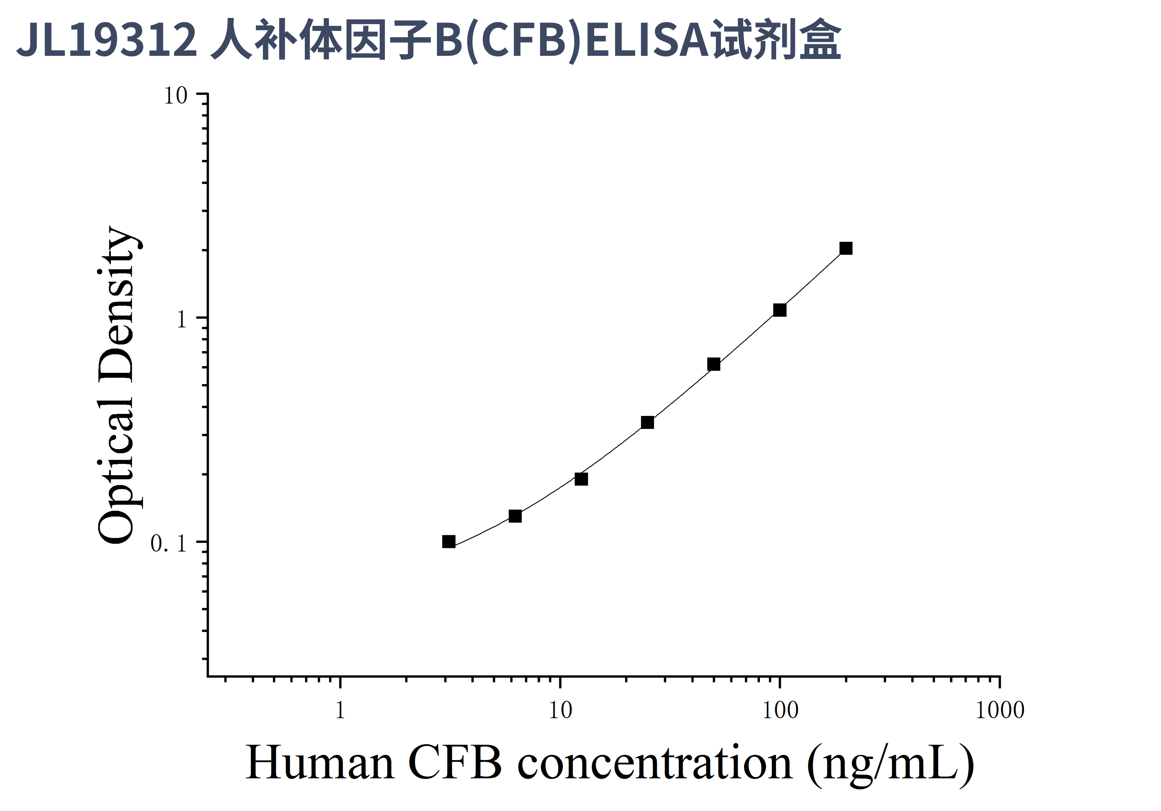 由于实验操作条件的不同( 如操作者、移液技术、洗板技术和稳定条件等),标准曲线的OD值会有所差异。以下数据和曲线仅供参考,实验者需根据自己的实验建立标准曲线。