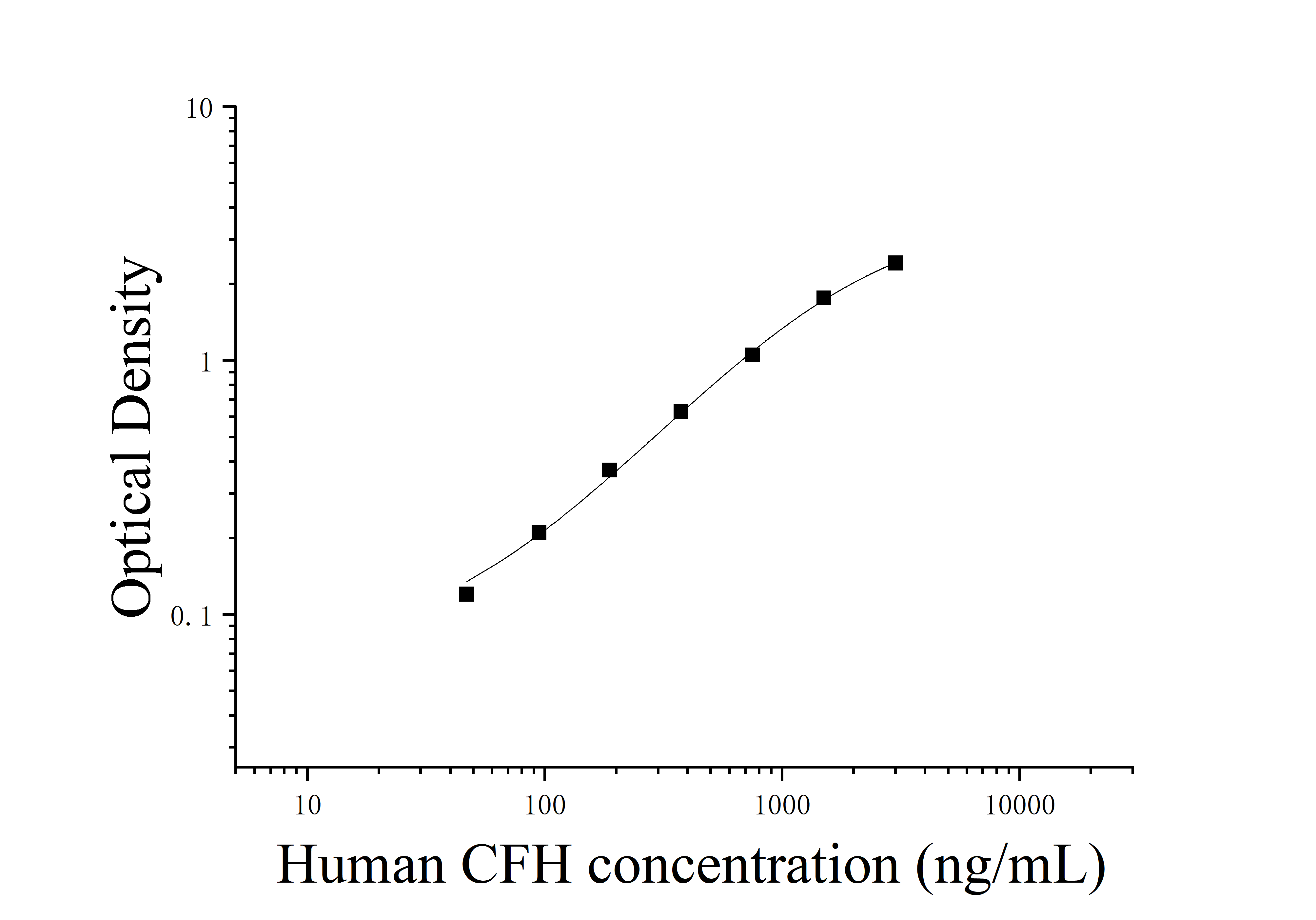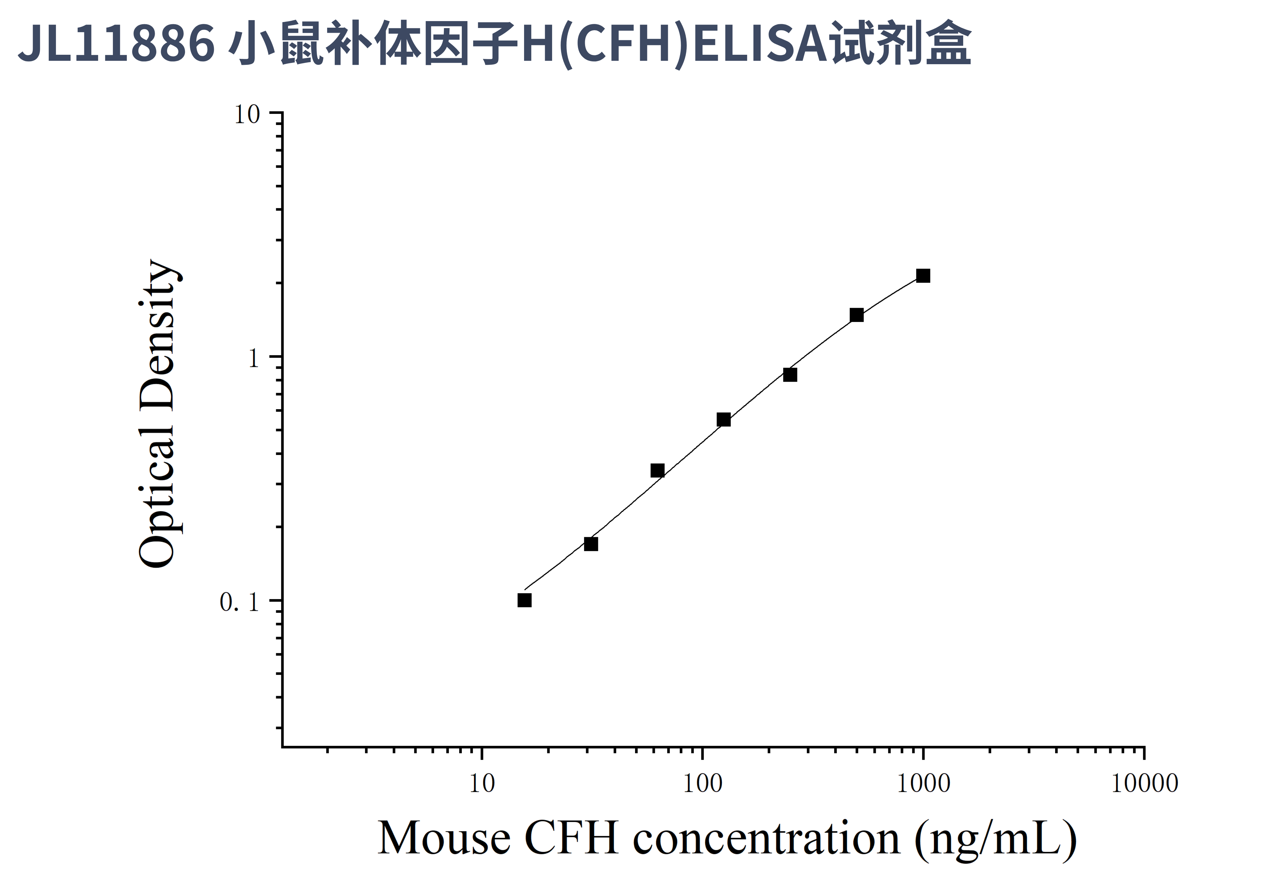 由于实验操作条件的不同( 如操作者、移液技术、洗板技术和稳定条件等),标准曲线的OD值会有所差异。以下数据和曲线仅供参考,实验者需根据自己的实验建立标准曲线。