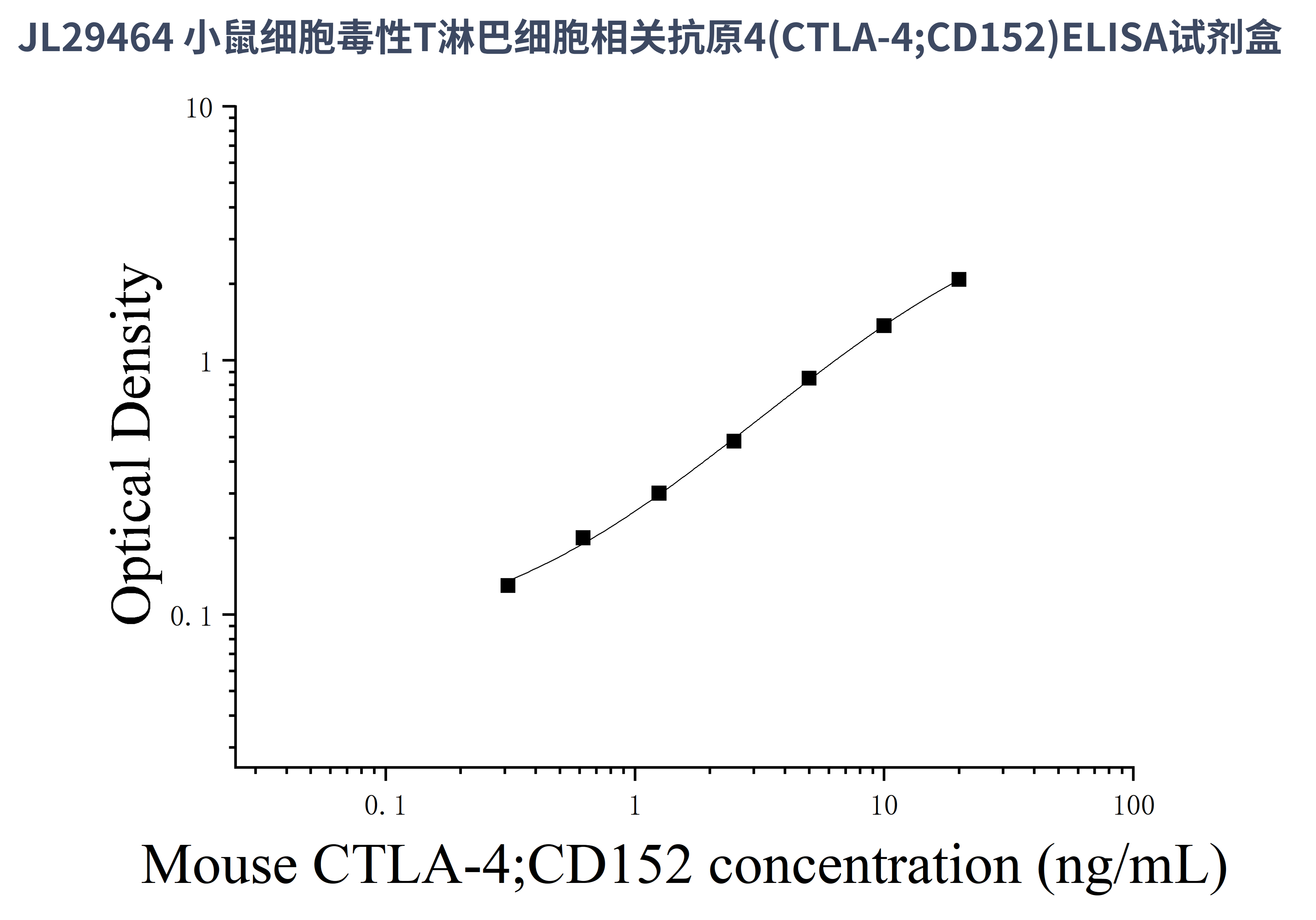 由于实验操作条件的不同( 如操作者、移液技术、洗板技术和稳定条件等),标准曲线的OD值会有所差异。以下数据和曲线仅供参考,实验者需根据自己的实验建立标准曲线。