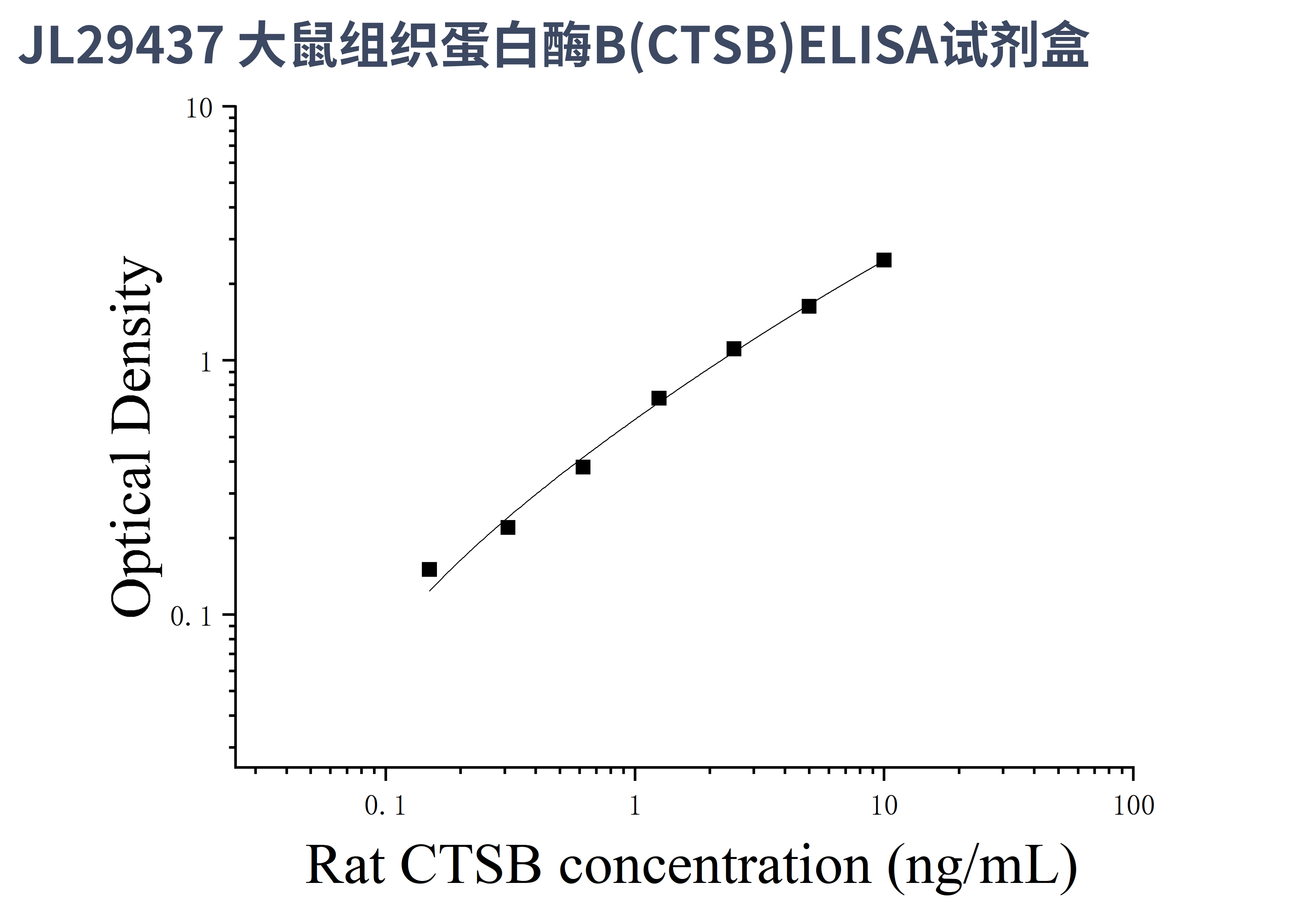 由于实验操作条件的不同( 如操作者、移液技术、洗板技术和稳定条件等),标准曲线的OD值会有所差异。以下数据和曲线仅供参考,实验者需根据自己的实验建立标准曲线。