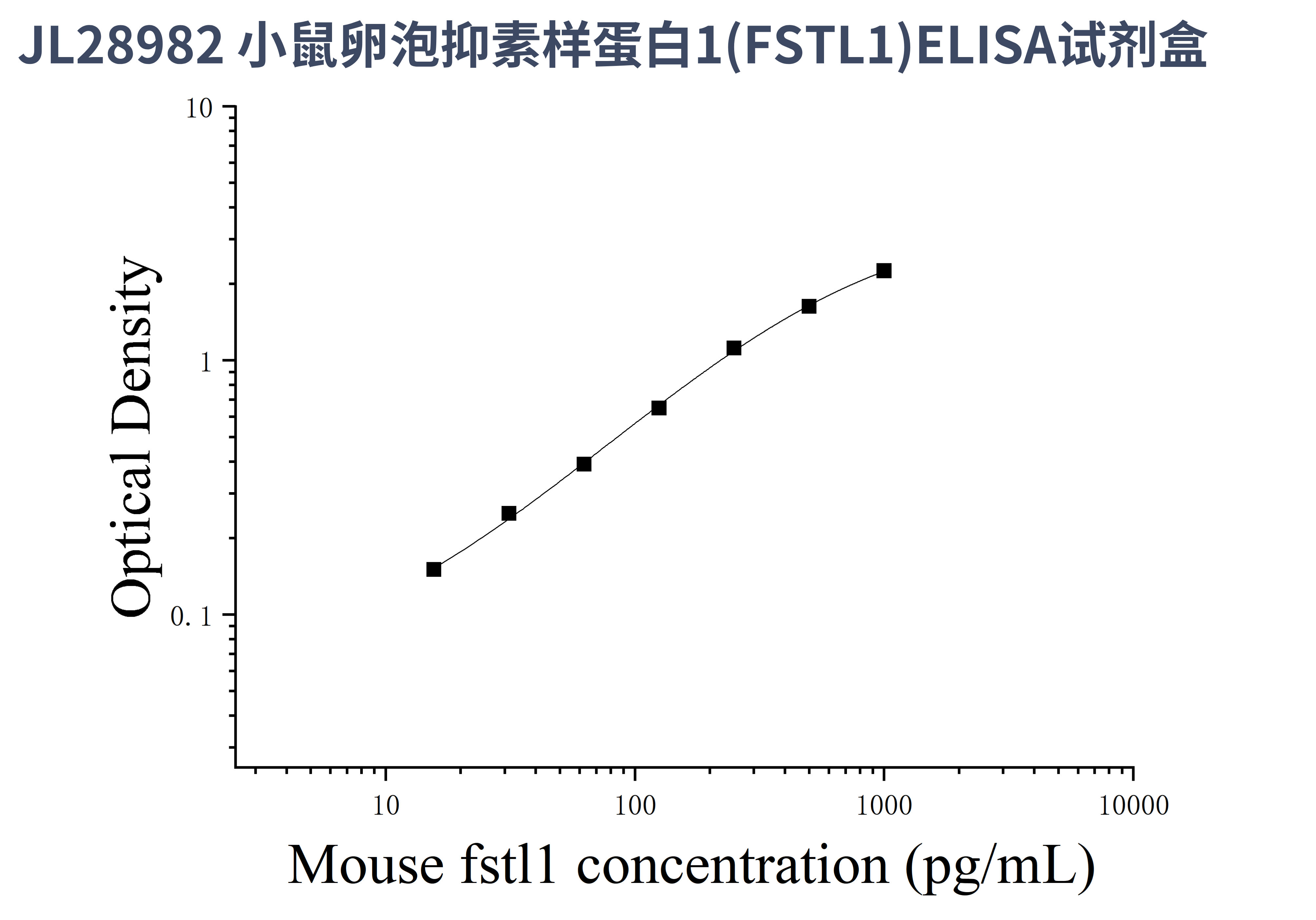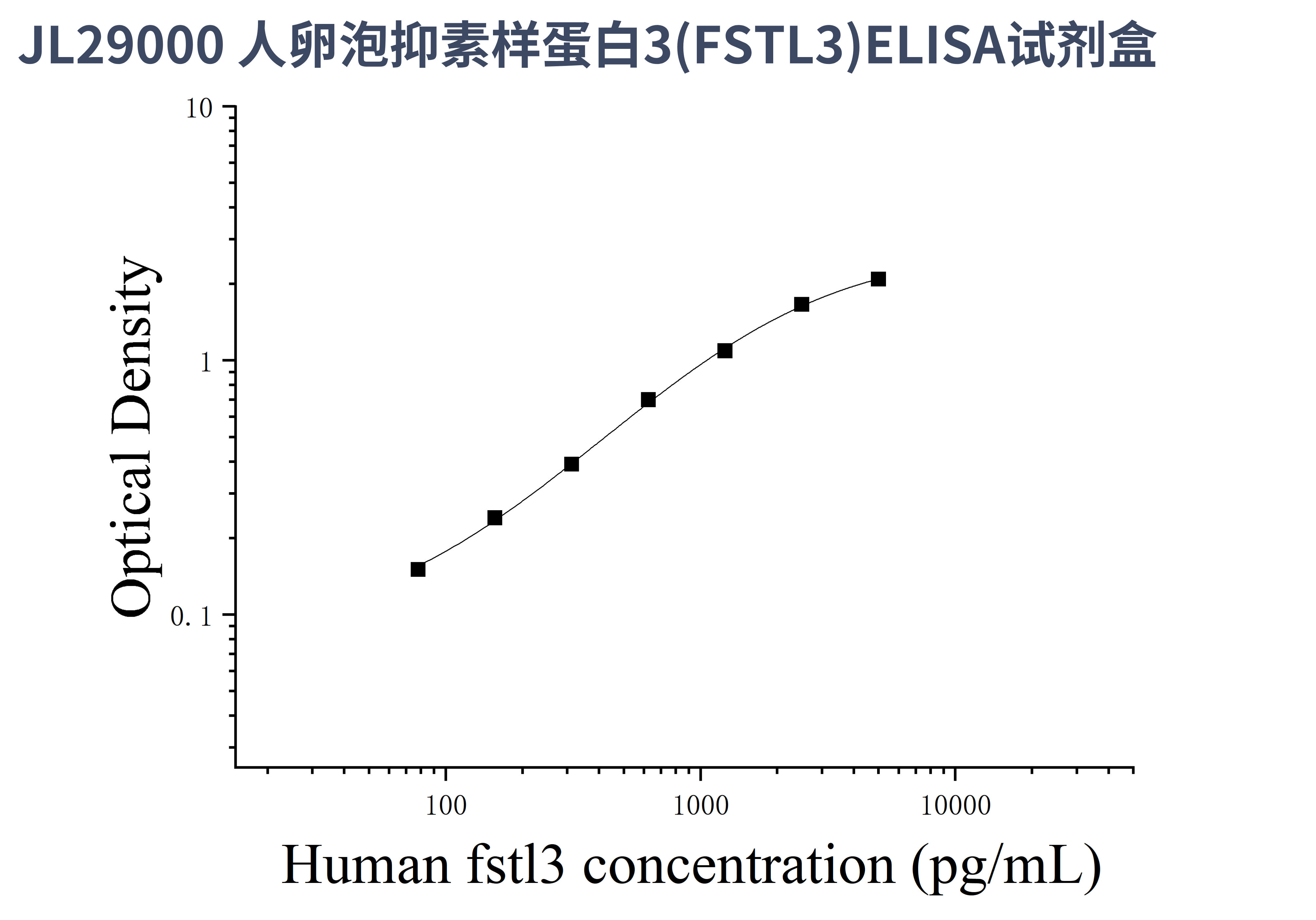 由于实验操作条件的不同( 如操作者、移液技术、洗板技术和稳定条件等),标准曲线的OD值会有所差异。以下数据和曲线仅供参考,实验者需根据自己的实验建立标准曲线。