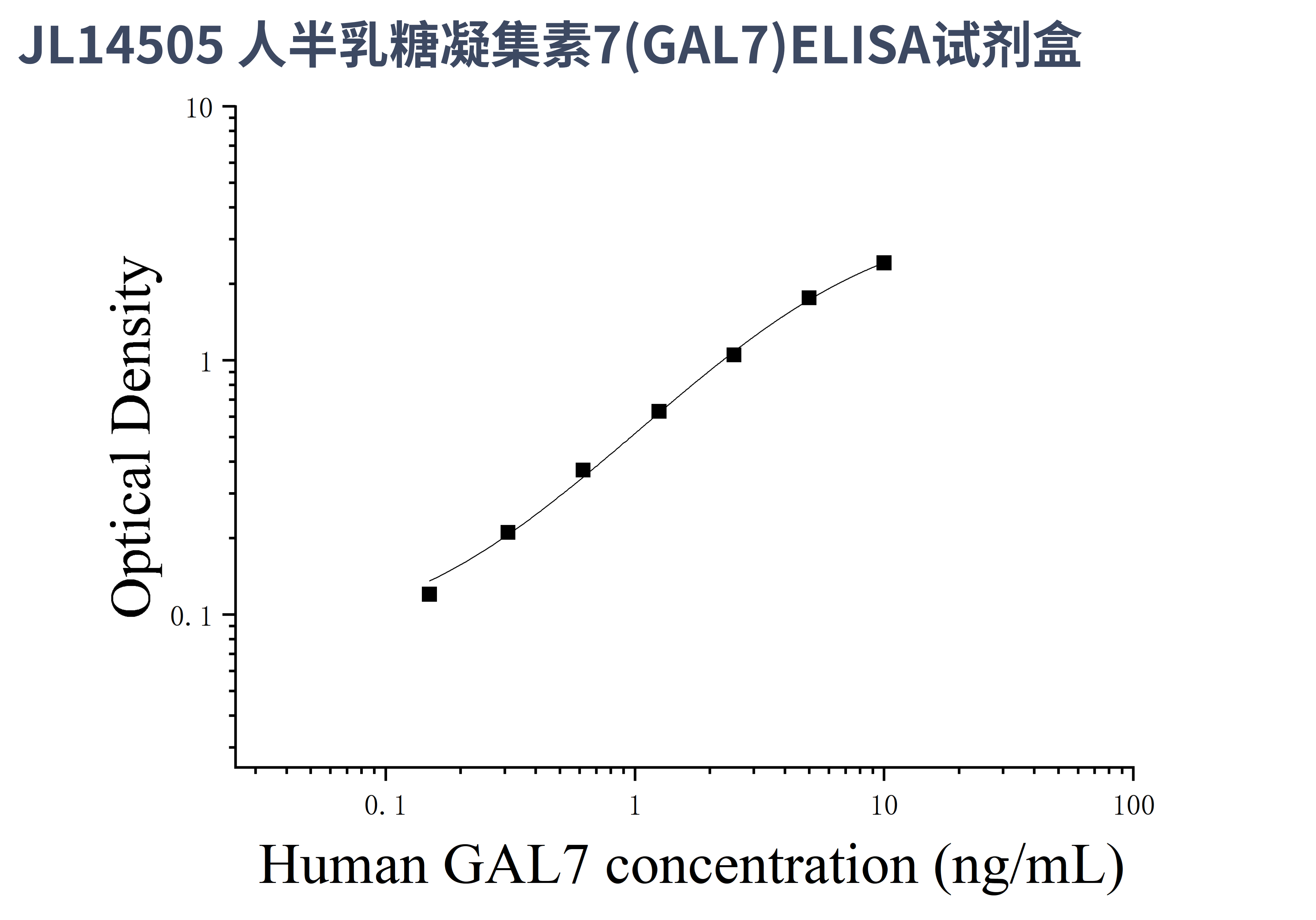 可检测样本中人的GAL7,且与其类似物无明显交叉反应。