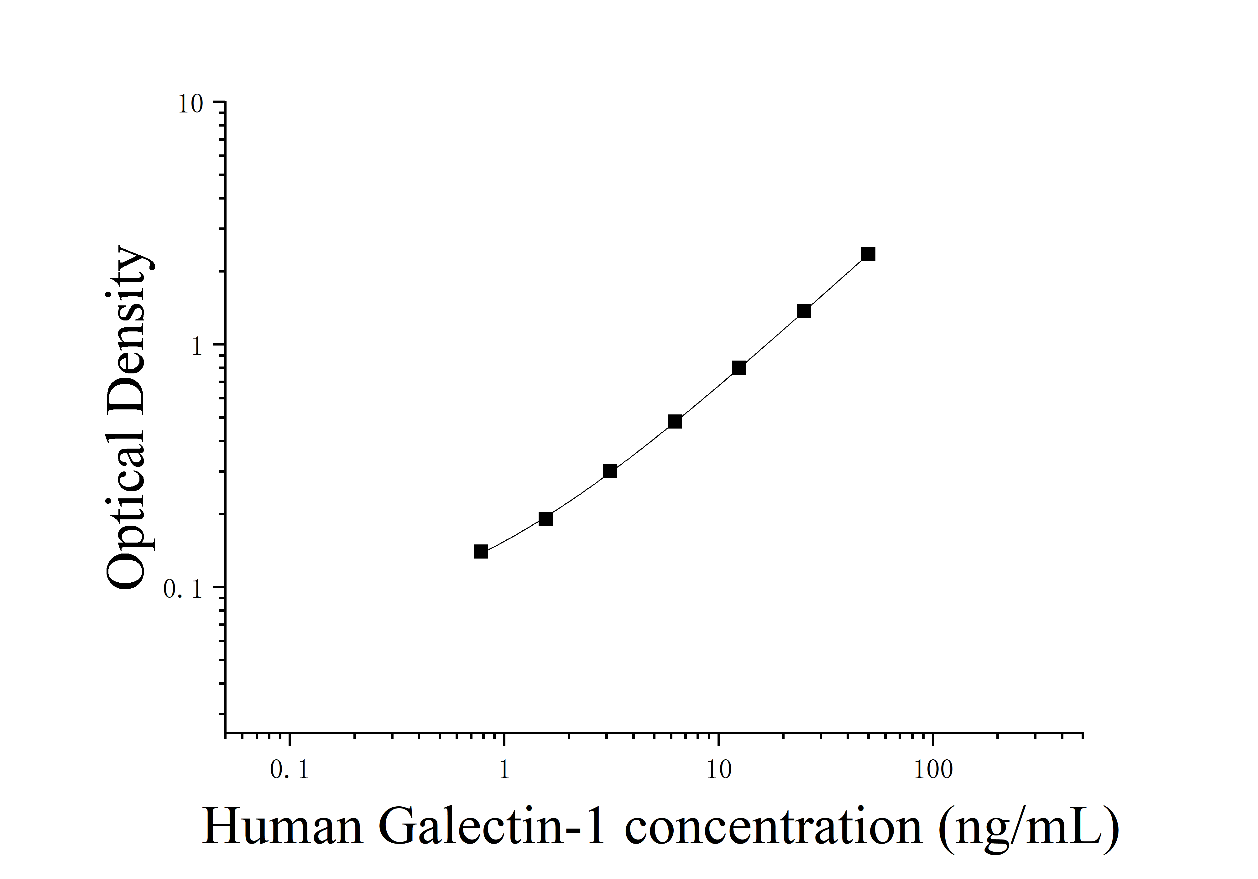 由于实验操作条件的不同( 如操作者、移液技术、洗板技术和稳定条件等),标准曲线的OD值会有所差异。以下数据和曲线仅供参考,实验者需根据自己的实验建立标准曲线。