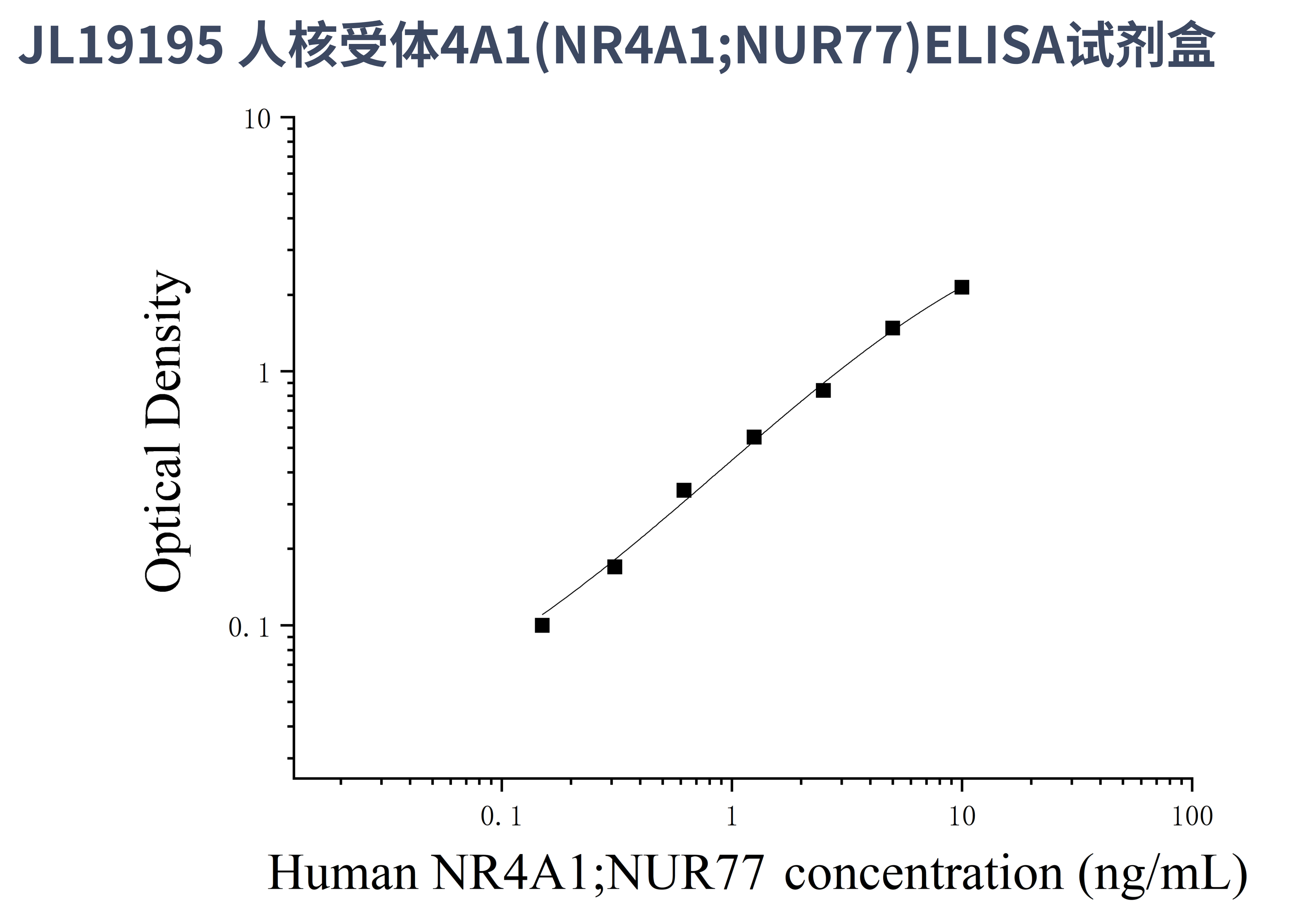 由于实验操作条件的不同( 如操作者、移液技术、洗板技术和稳定条件等),标准曲线的OD值会有所差异。以下数据和曲线仅供参考,实验者需根据自己的实验建立标准曲线。