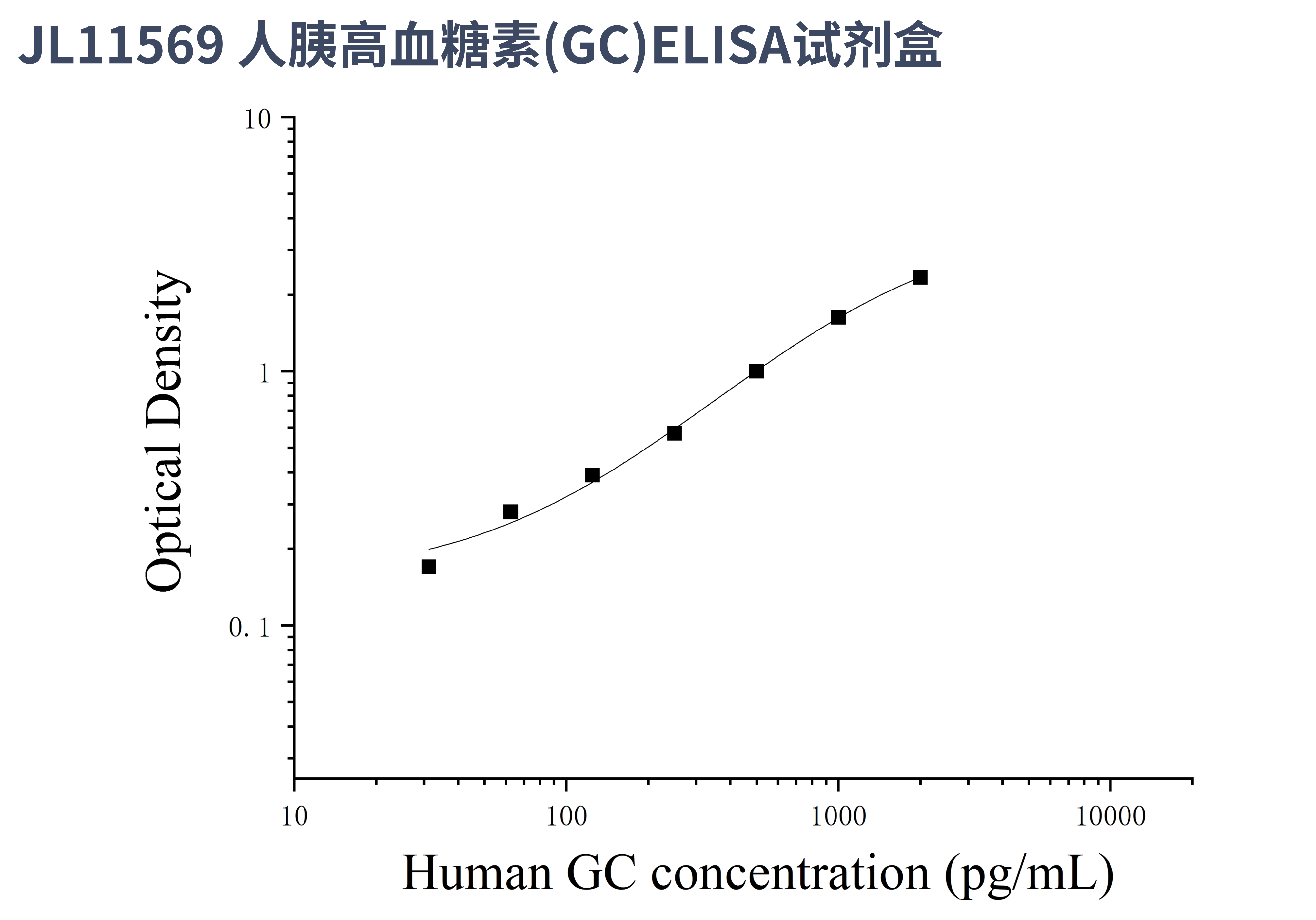 由于实验操作条件的不同( 如操作者、移液技术、洗板技术和稳定条件等),标准曲线的OD值会有所差异。以下数据和曲线仅供参考,实验者需根据自己的实验建立标准曲线。