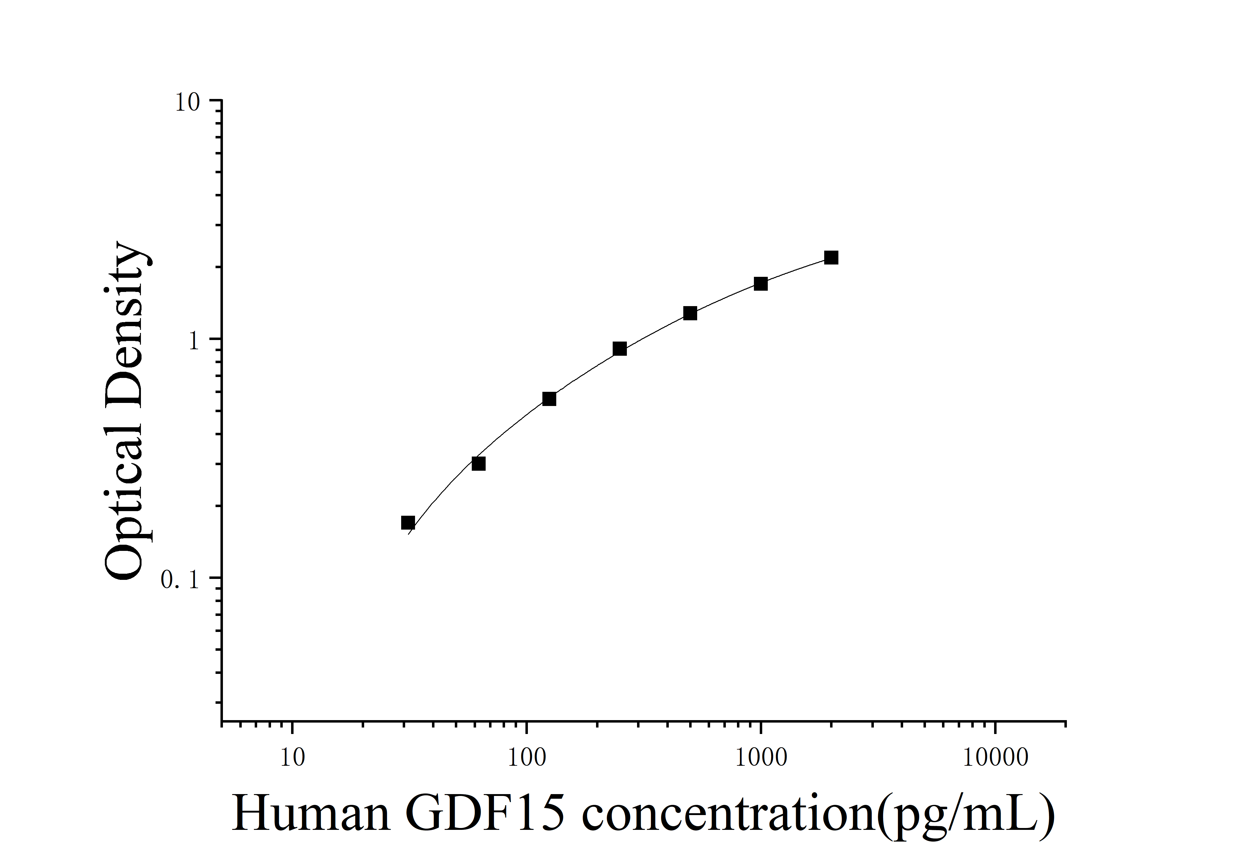 由于实验操作条件的不同( 如操作者、移液技术、洗板技术和稳定条件等),标准曲线的OD值会有所差异。以下数据和曲线仅供参考,实验者需根据自己的实验建立标准曲线。