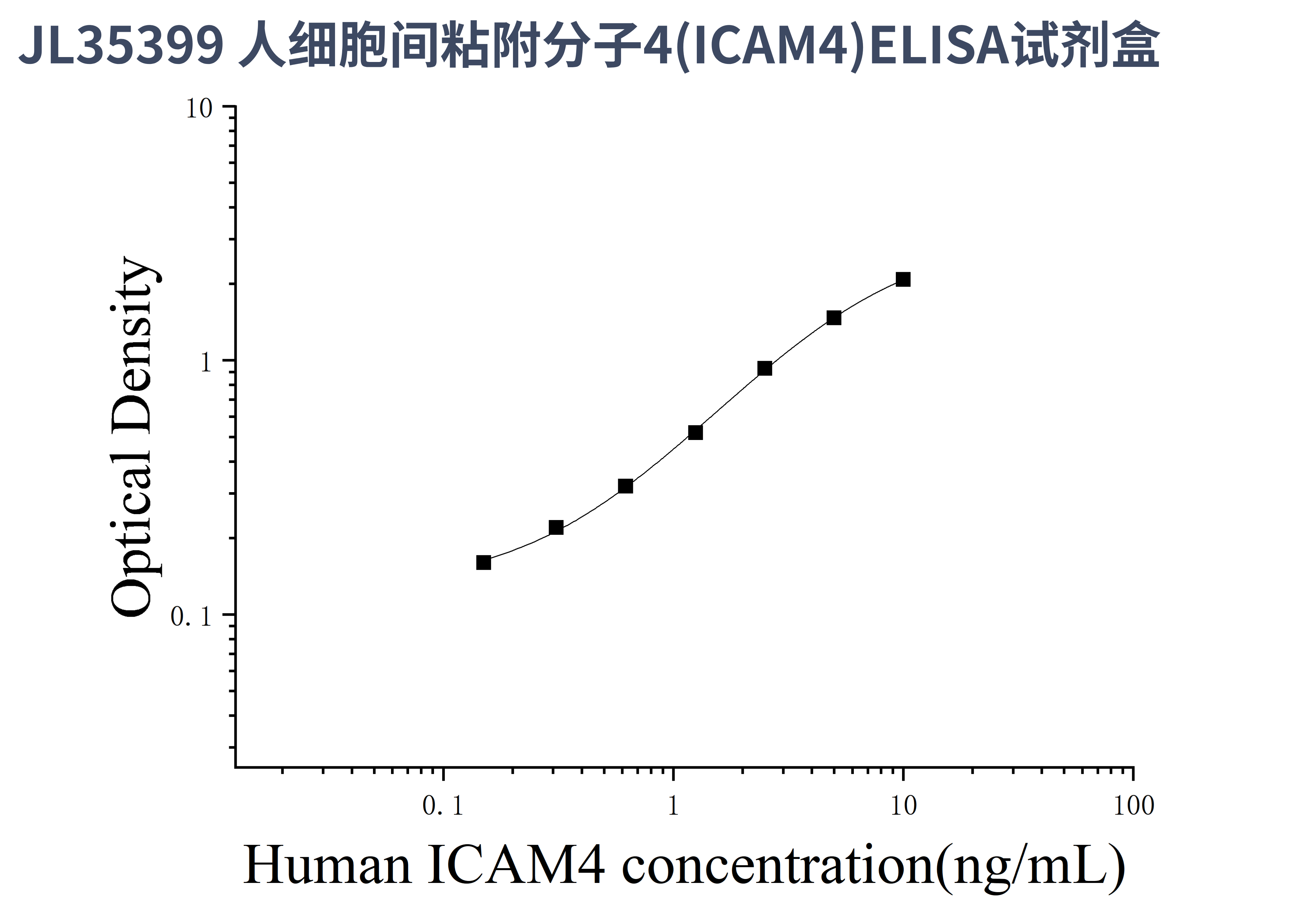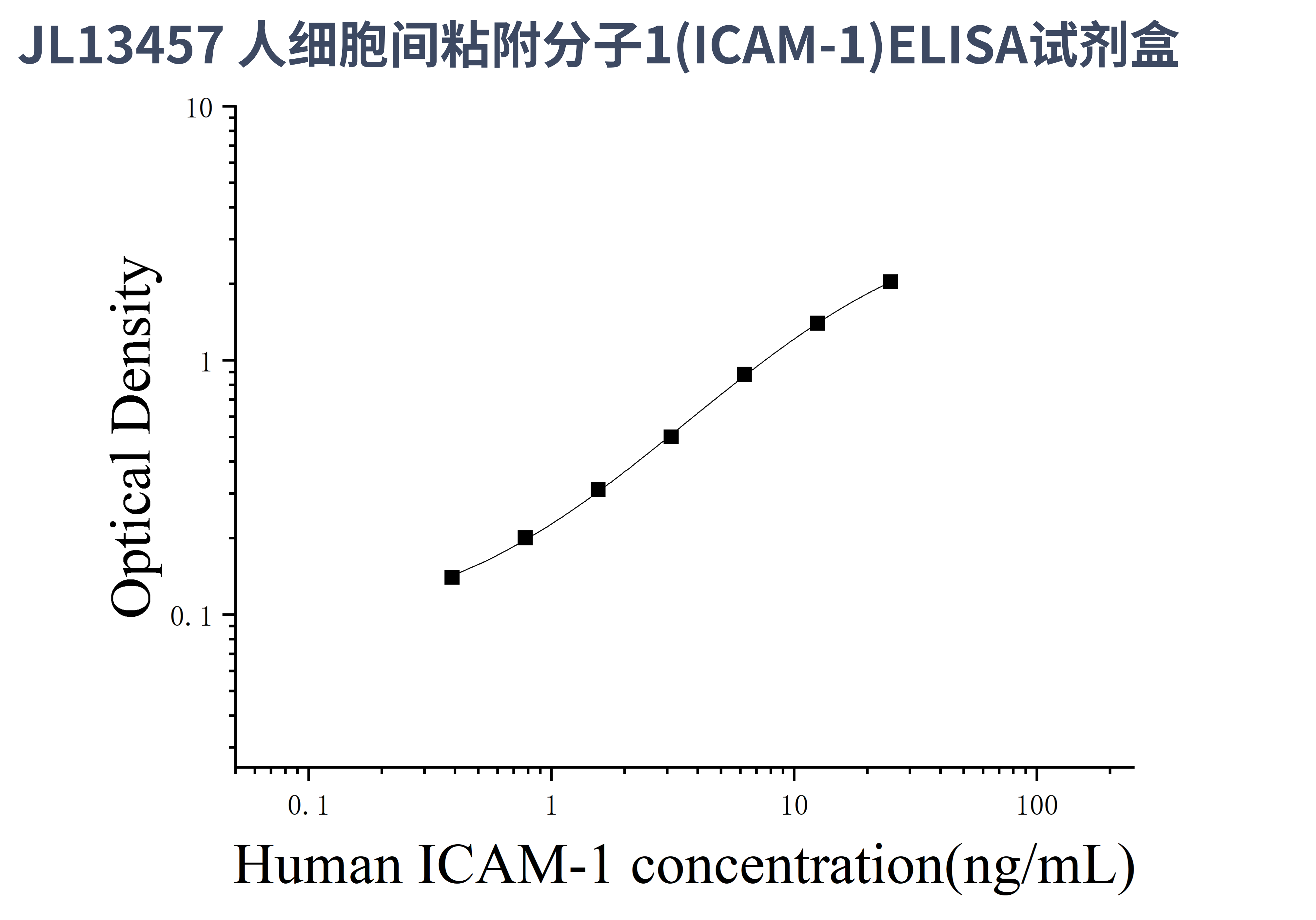 由于实验操作条件的不同( 如操作者、移液技术、洗板技术和稳定条件等),标准曲线的OD值会有所差异。以下数据和曲线仅供参考,实验者需根据自己的实验建立标准曲线。