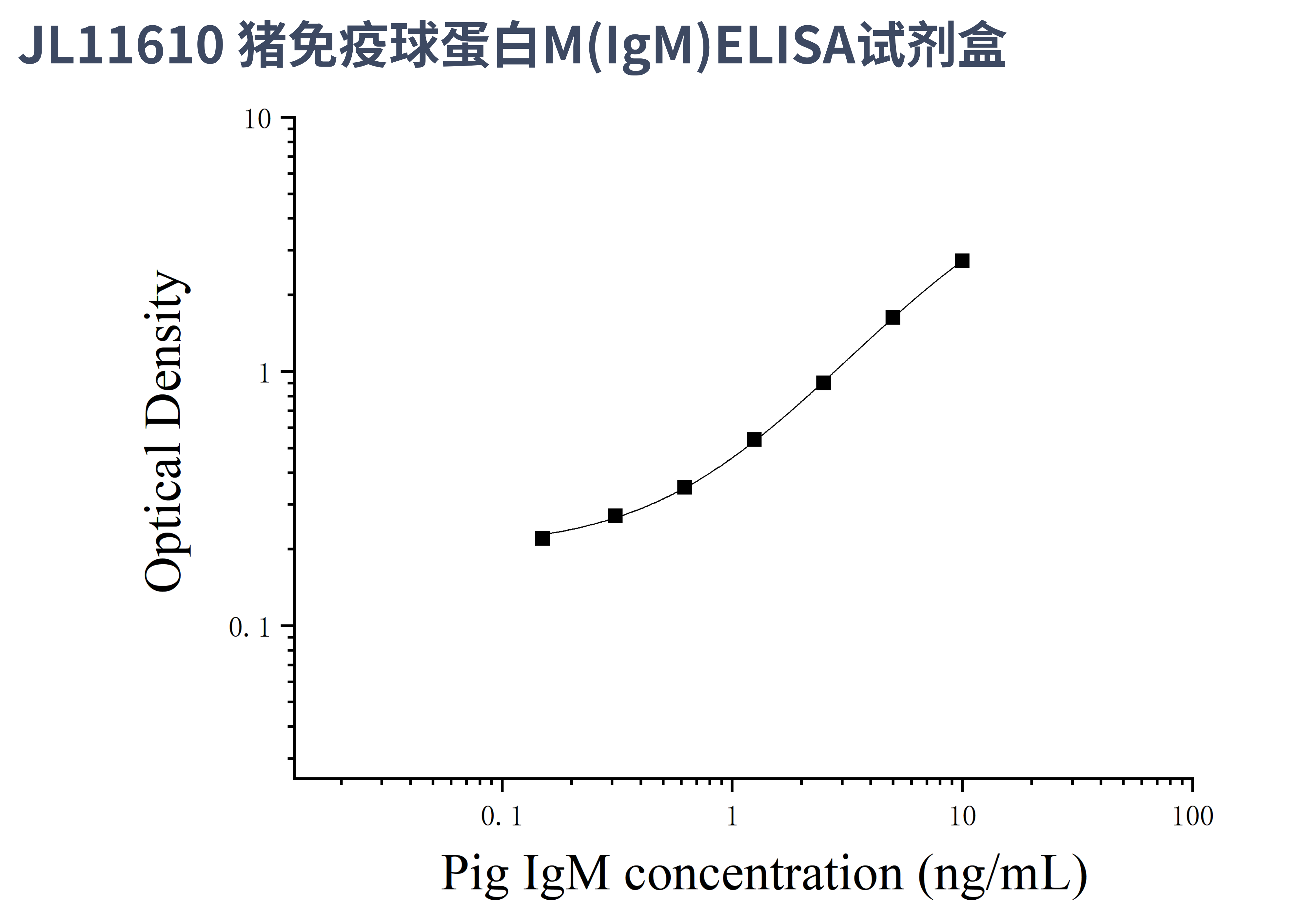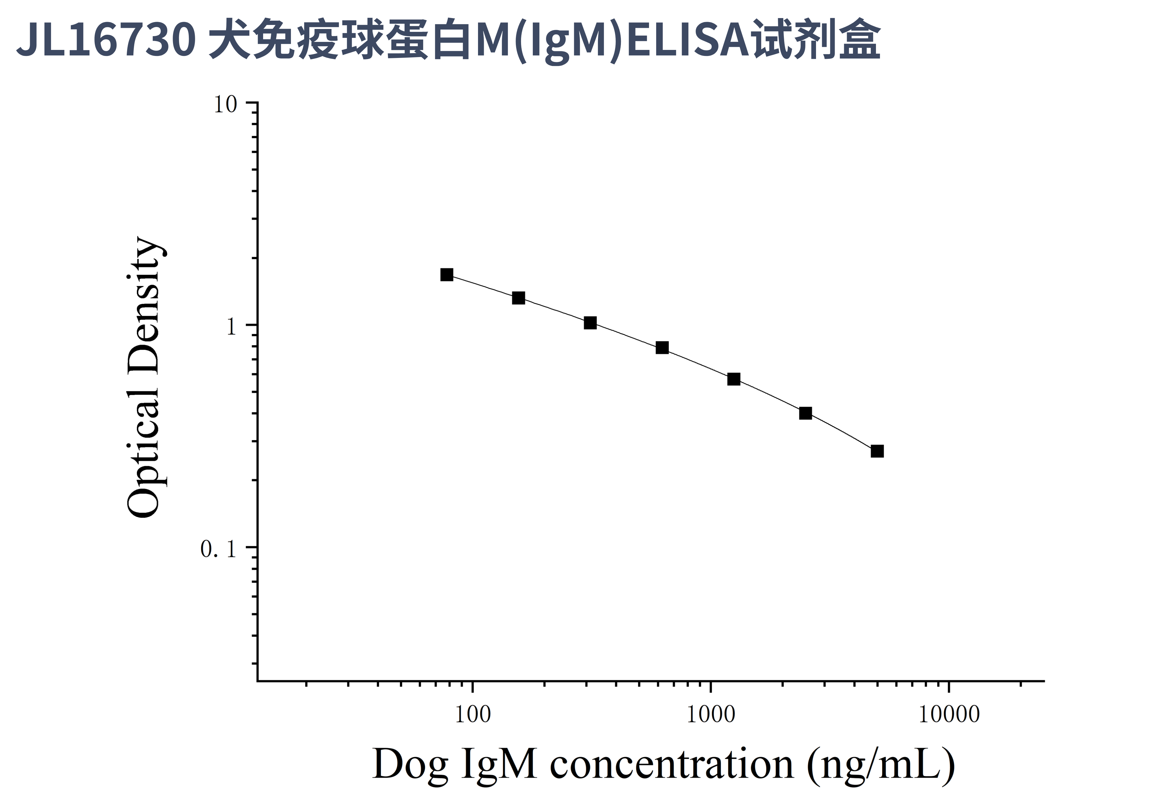 由于实验操作条件的不同( 如操作者、移液技术、洗板技术和稳定条件等),标准曲线的OD值会有所差异。以下数据和曲线仅供参考,实验者需根据自己的实验建立标准曲线。