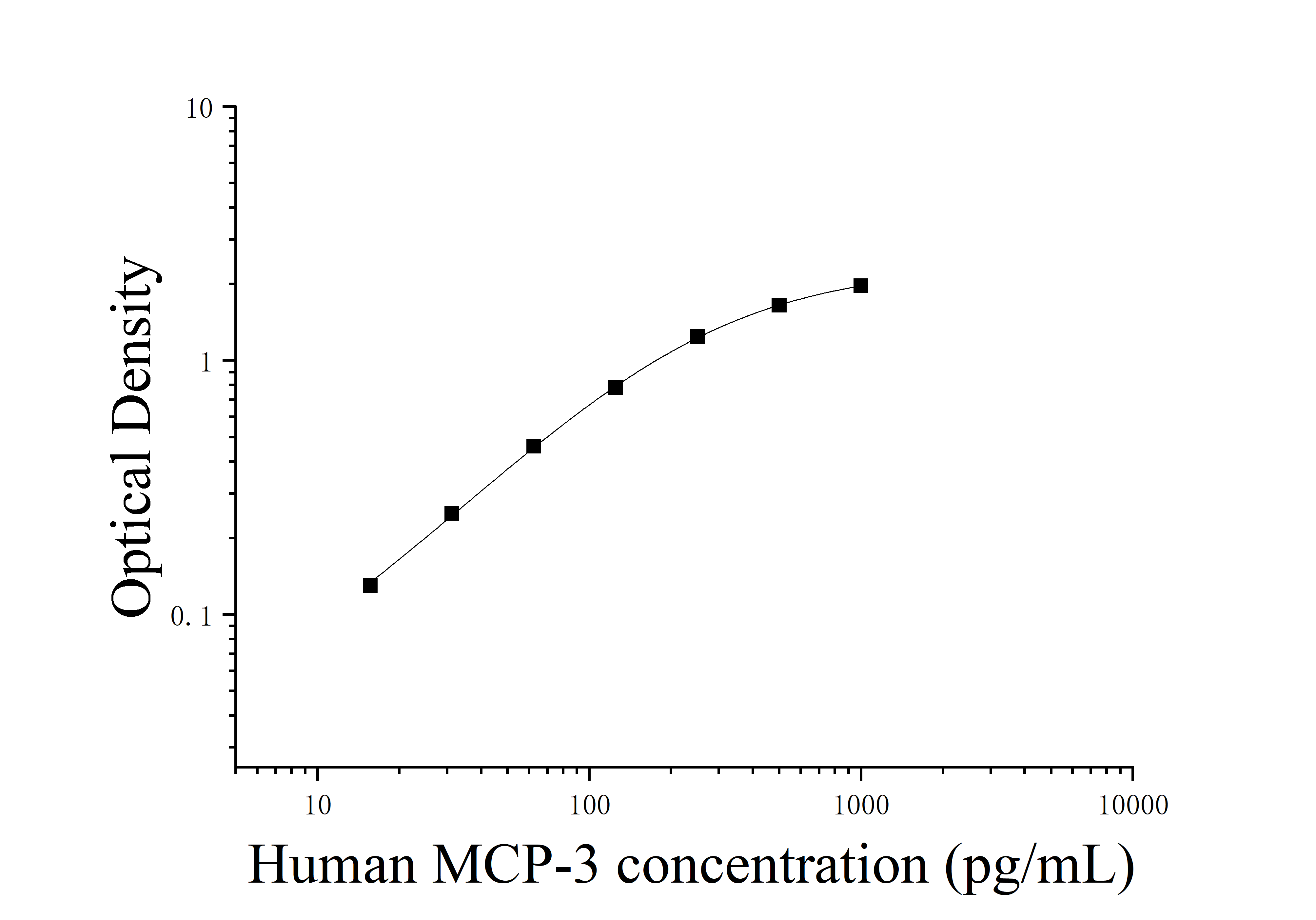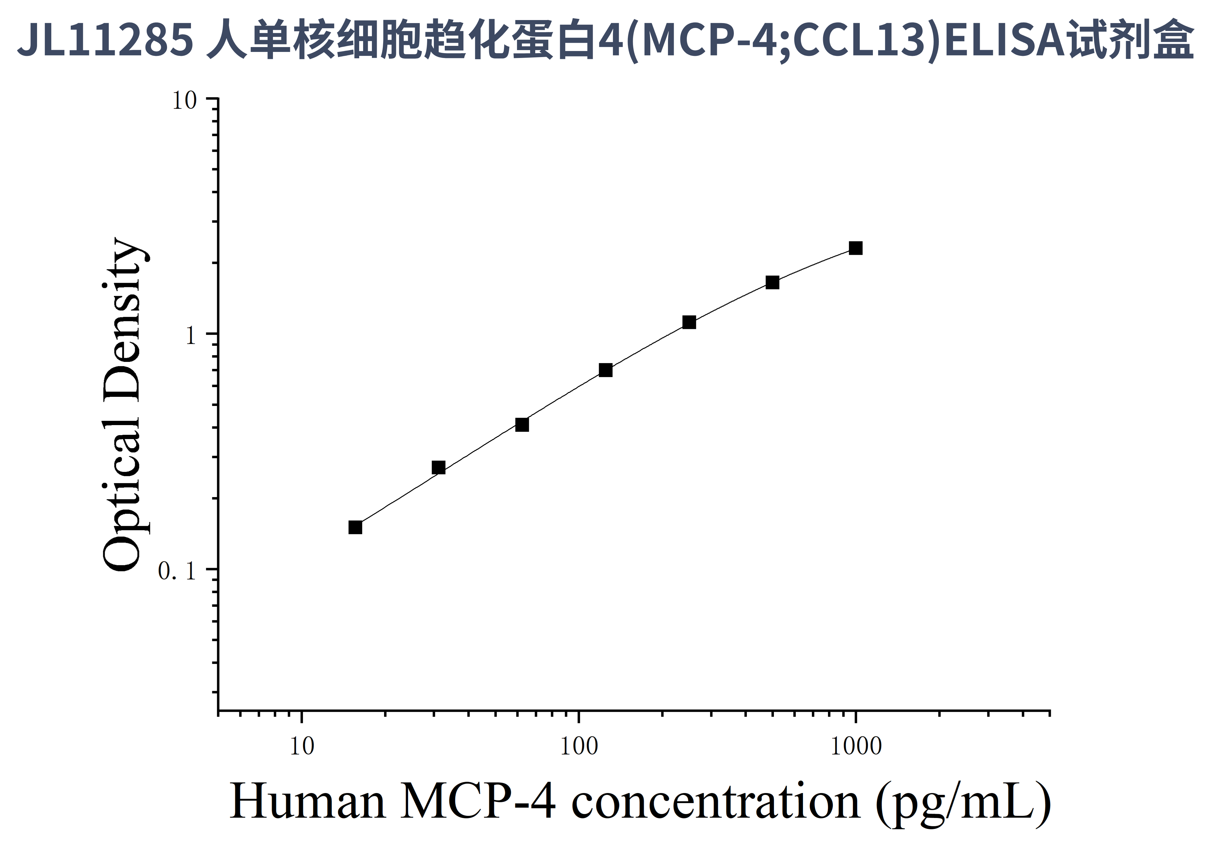 由于实验操作条件的不同( 如操作者、移液技术、洗板技术和稳定条件等),标准曲线的OD值会有所差异。以下数据和曲线仅供参考,实验者需根据自己的实验建立标准曲线。