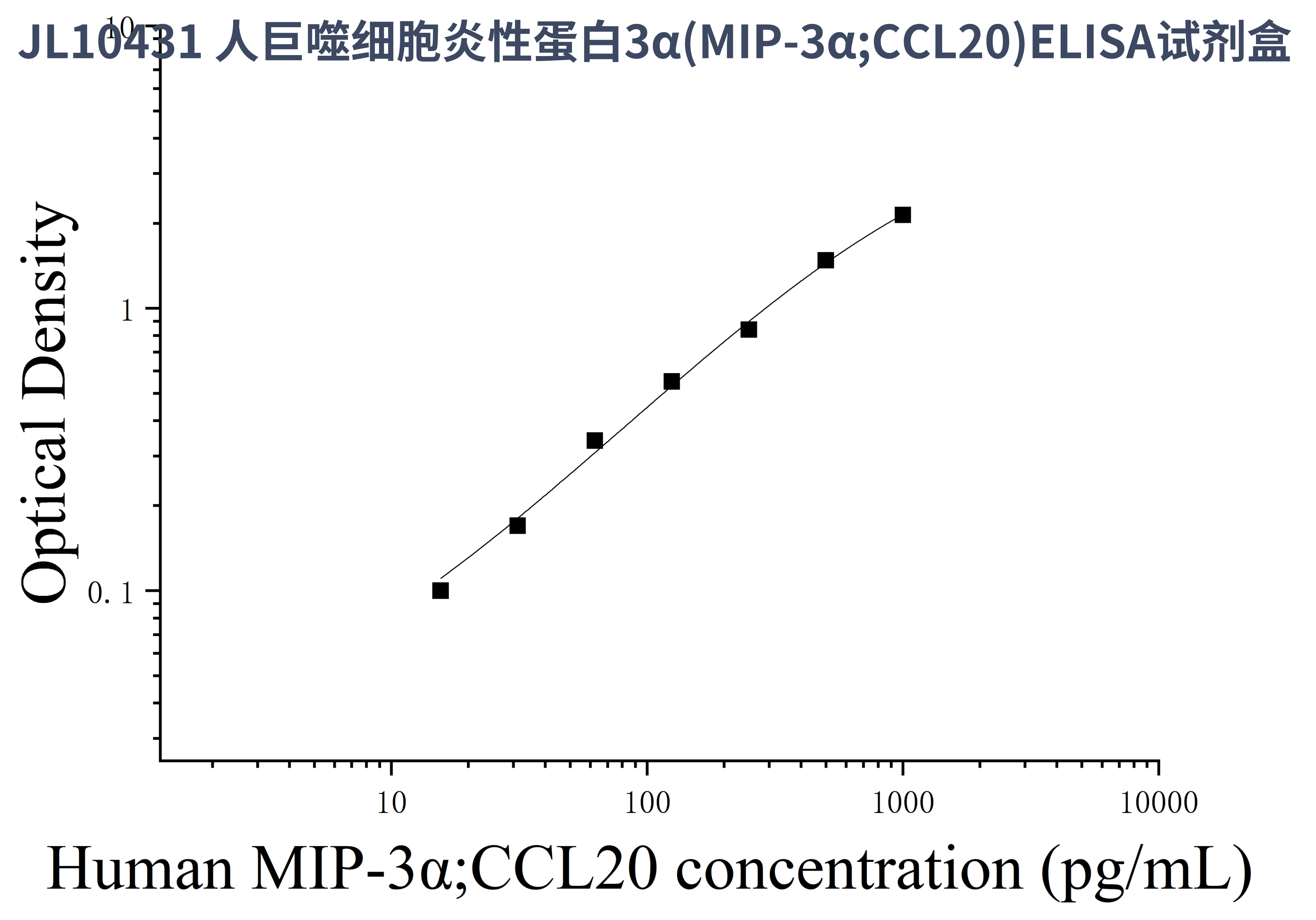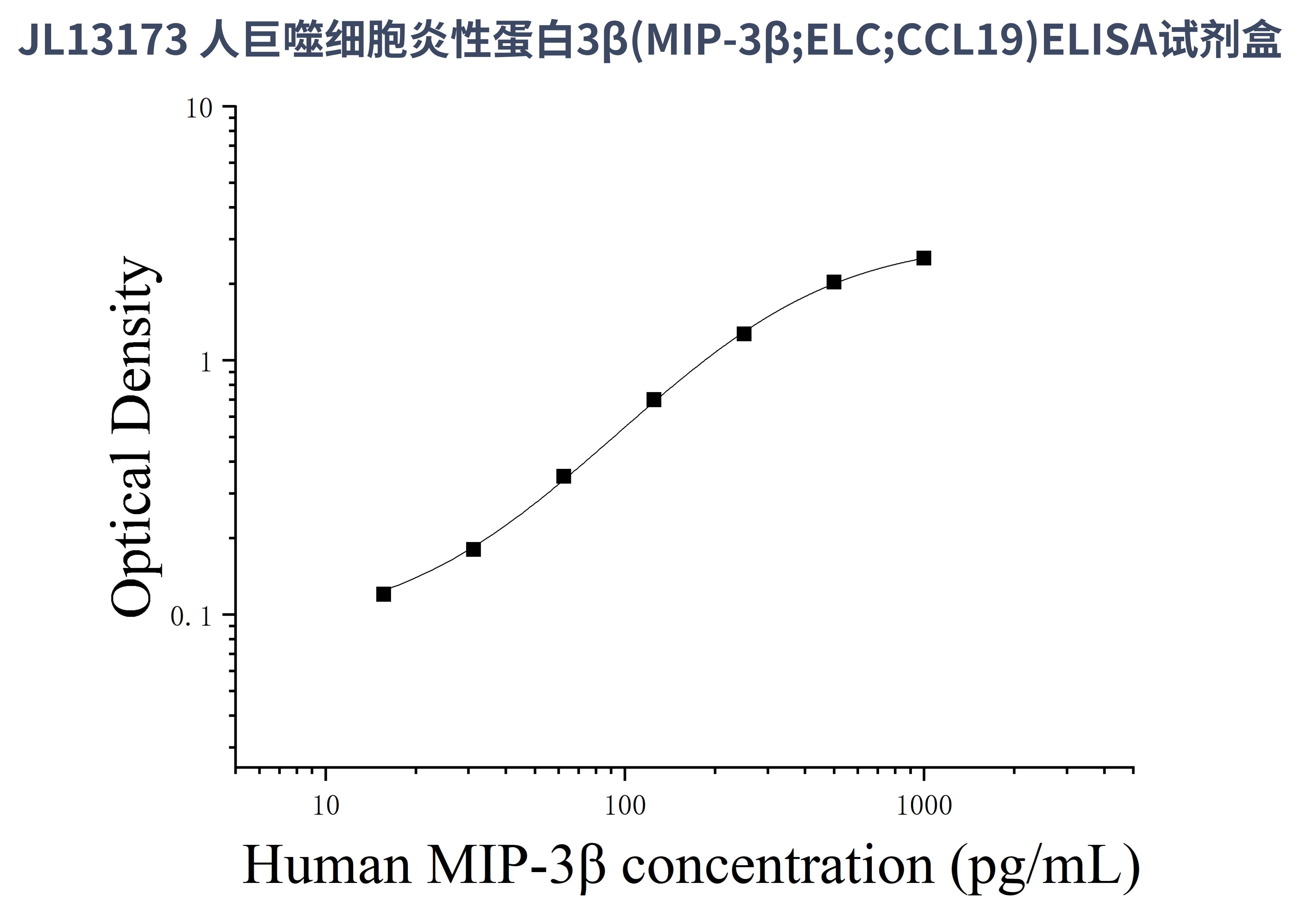 由于实验操作条件的不同( 如操作者、移液技术、洗板技术和稳定条件等),标准曲线的OD值会有所差异。以下数据和曲线仅供参考,实验者需根据自己的实验建立标准曲线。