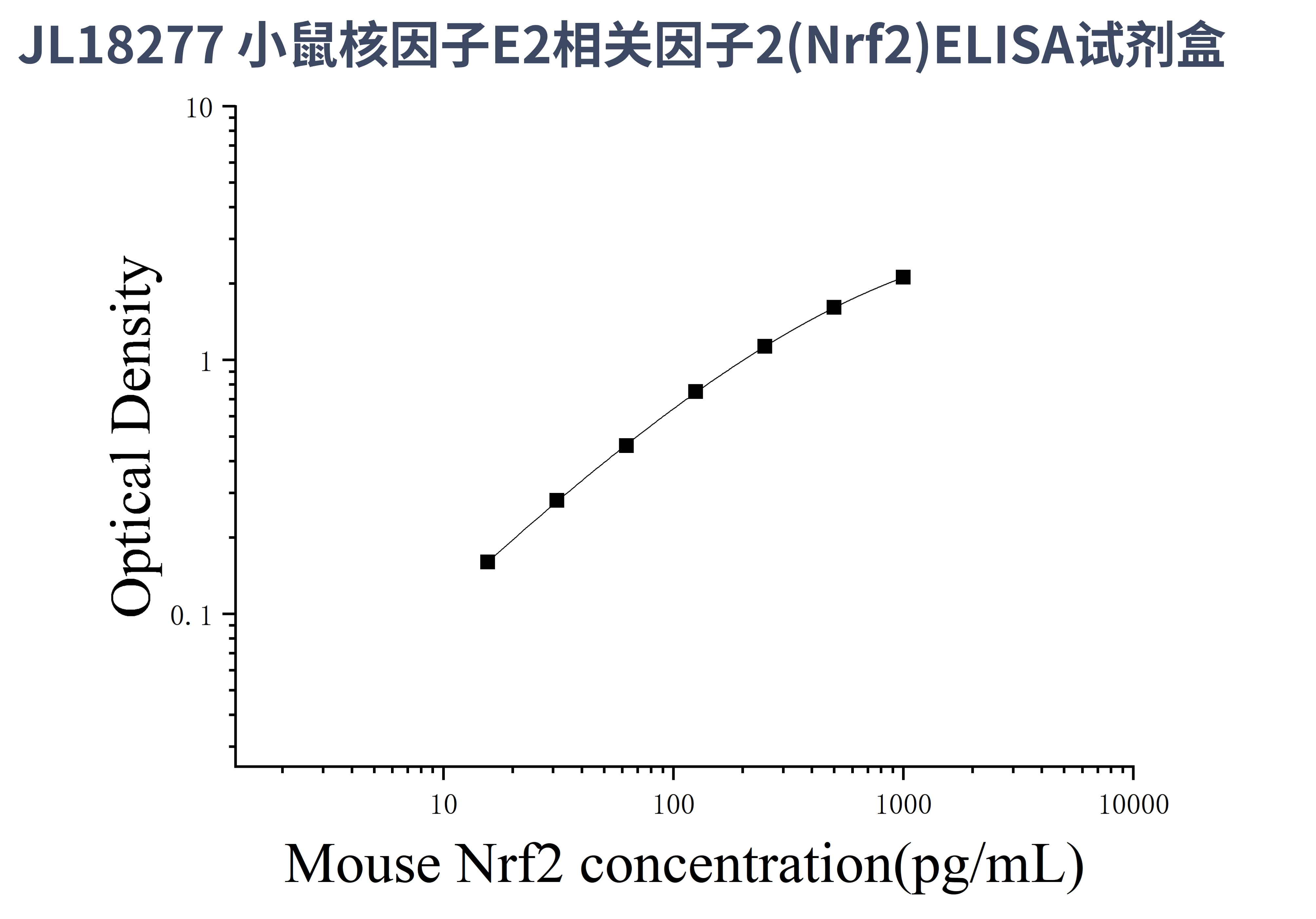 由于实验操作条件的不同( 如操作者、移液技术、洗板技术和稳定条件等),标准曲线的OD值会有所差异。以下数据和曲线仅供参考,实验者需根据自己的实验建立标准曲线。