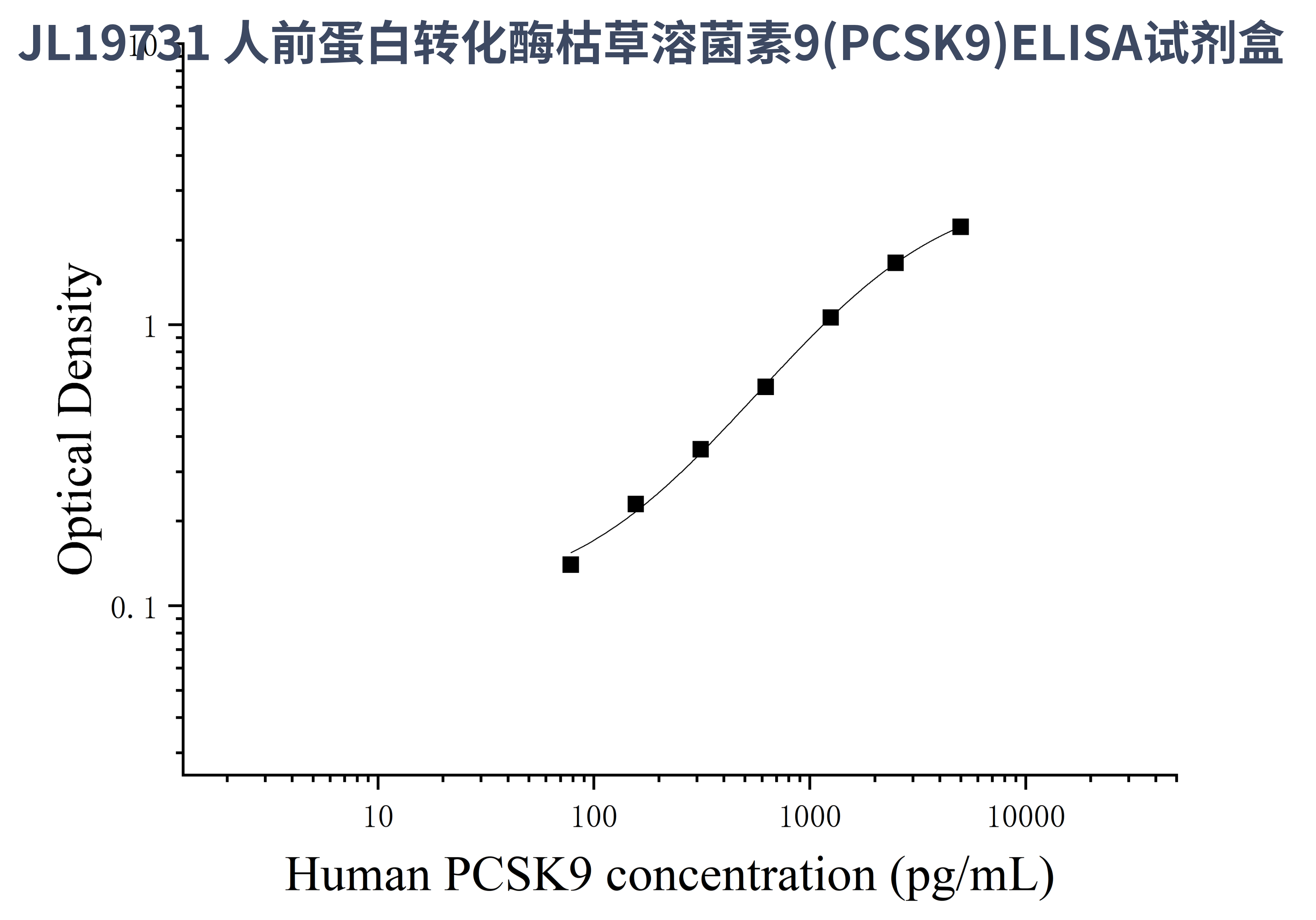 由于实验操作条件的不同( 如操作者、移液技术、洗板技术和稳定条件等),标准曲线的OD值会有所差异。以下数据和曲线仅供参考,实验者需根据自己的实验建立标准曲线。