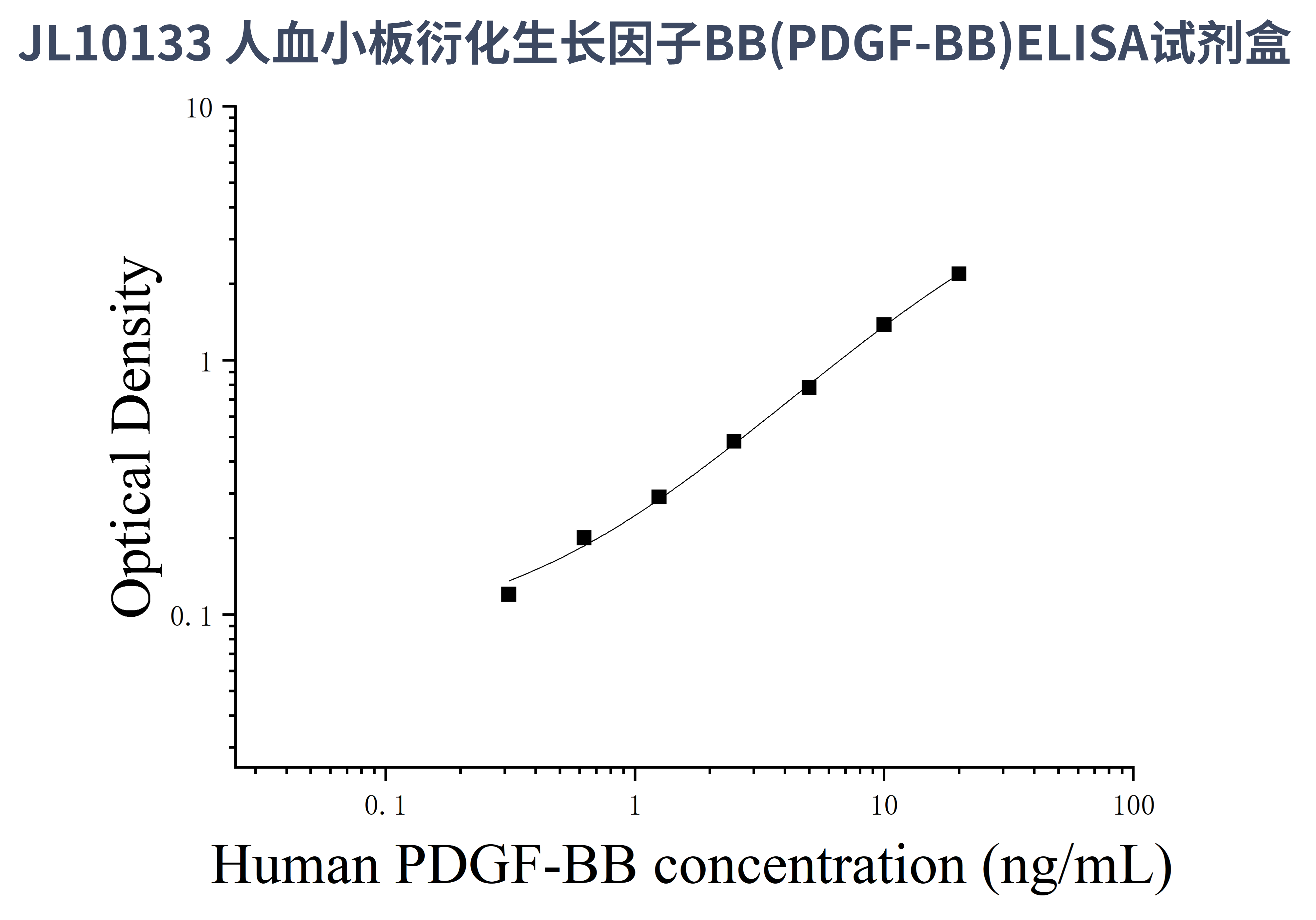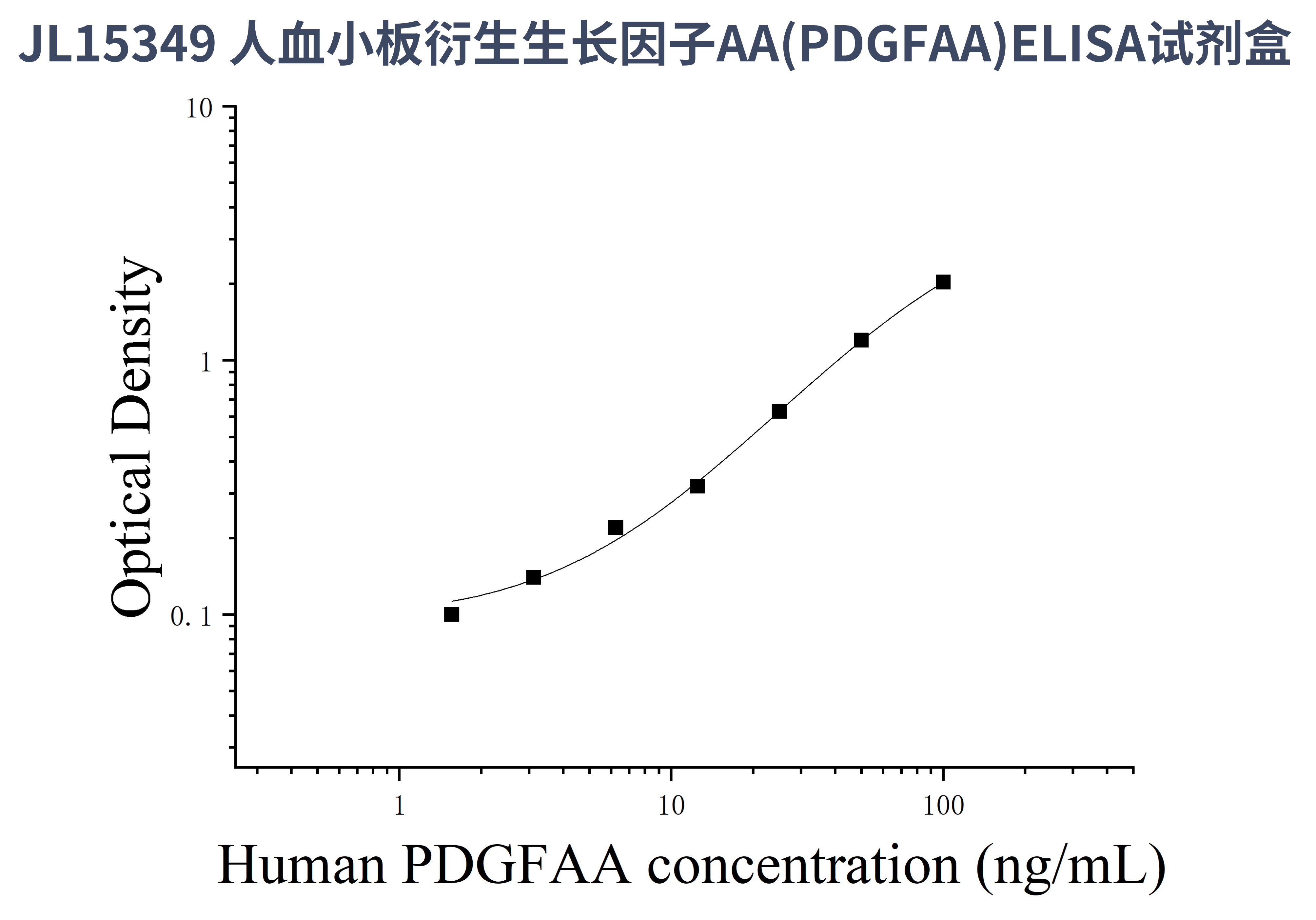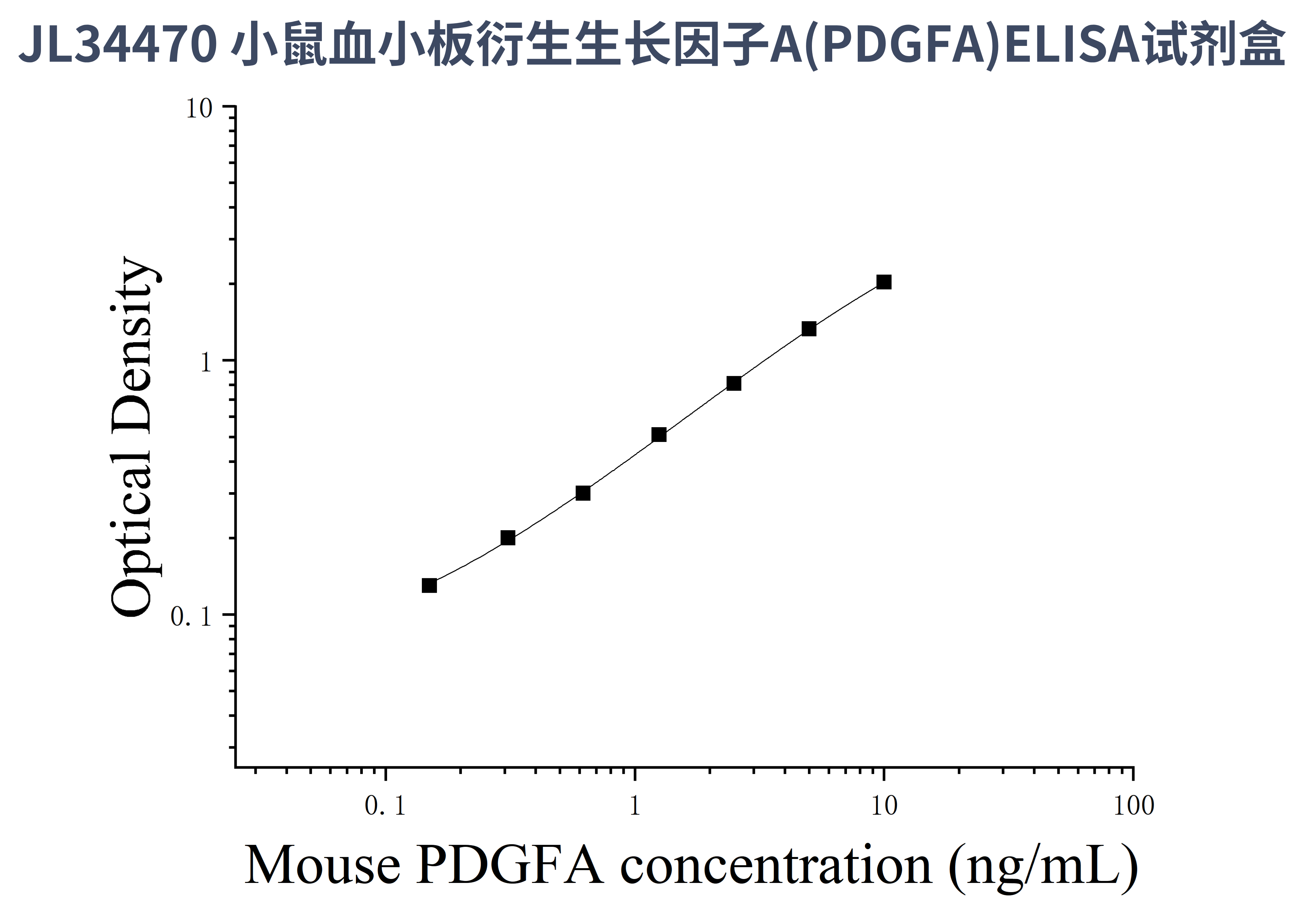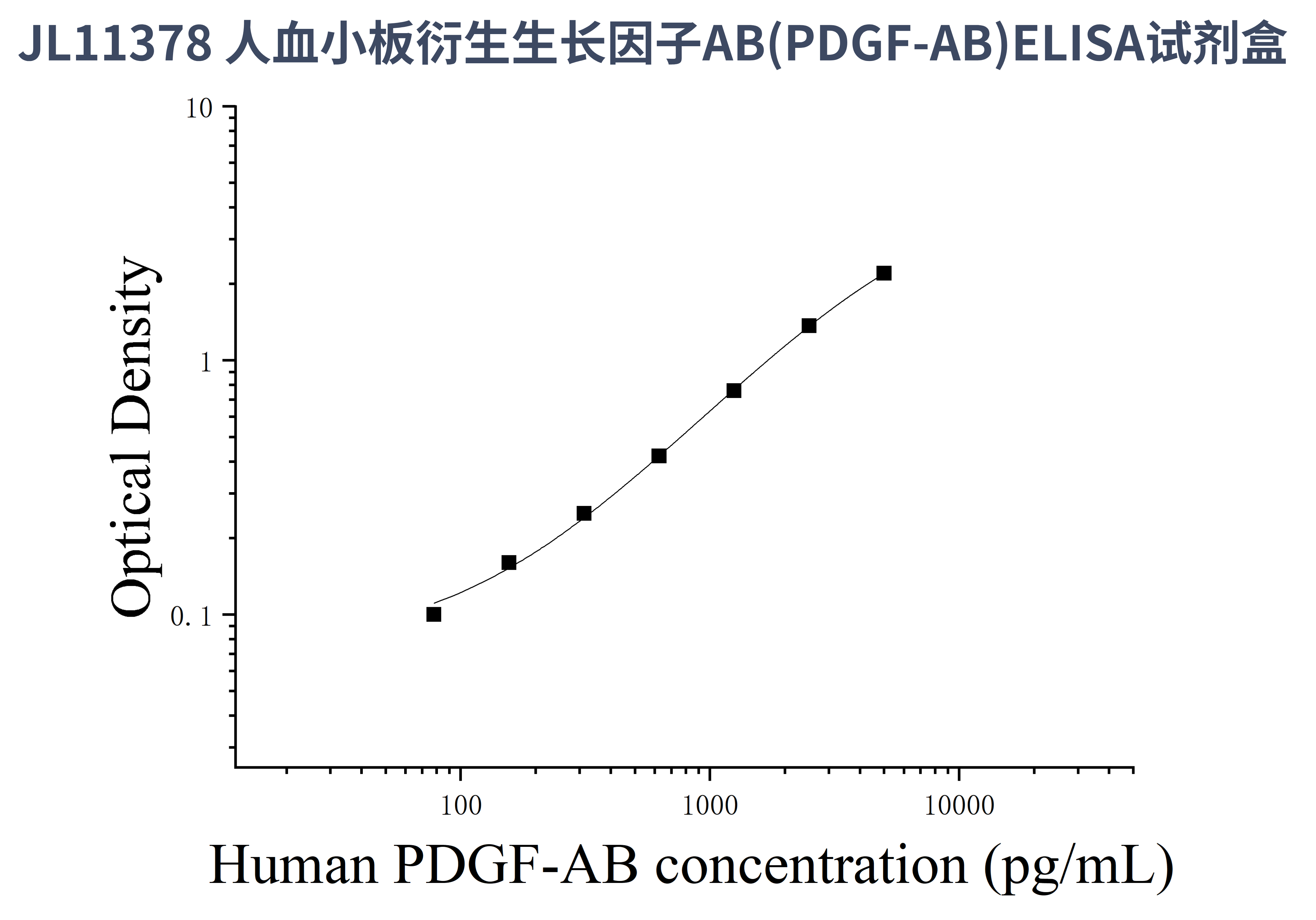 由于实验操作条件的不同( 如操作者、移液技术、洗板技术和稳定条件等),标准曲线的OD值会有所差异。以下数据和曲线仅供参考,实验者需根据自己的实验建立标准曲线。