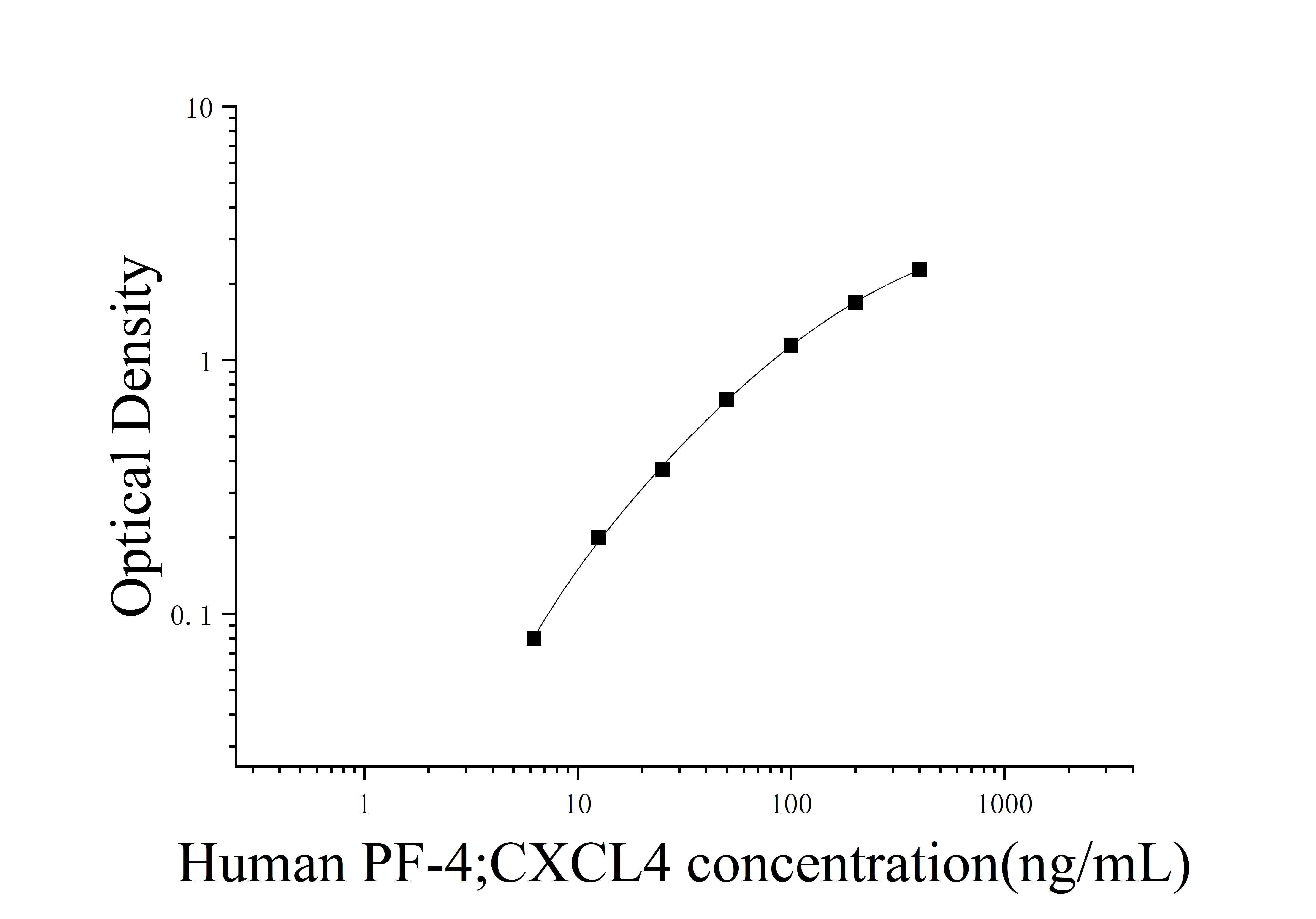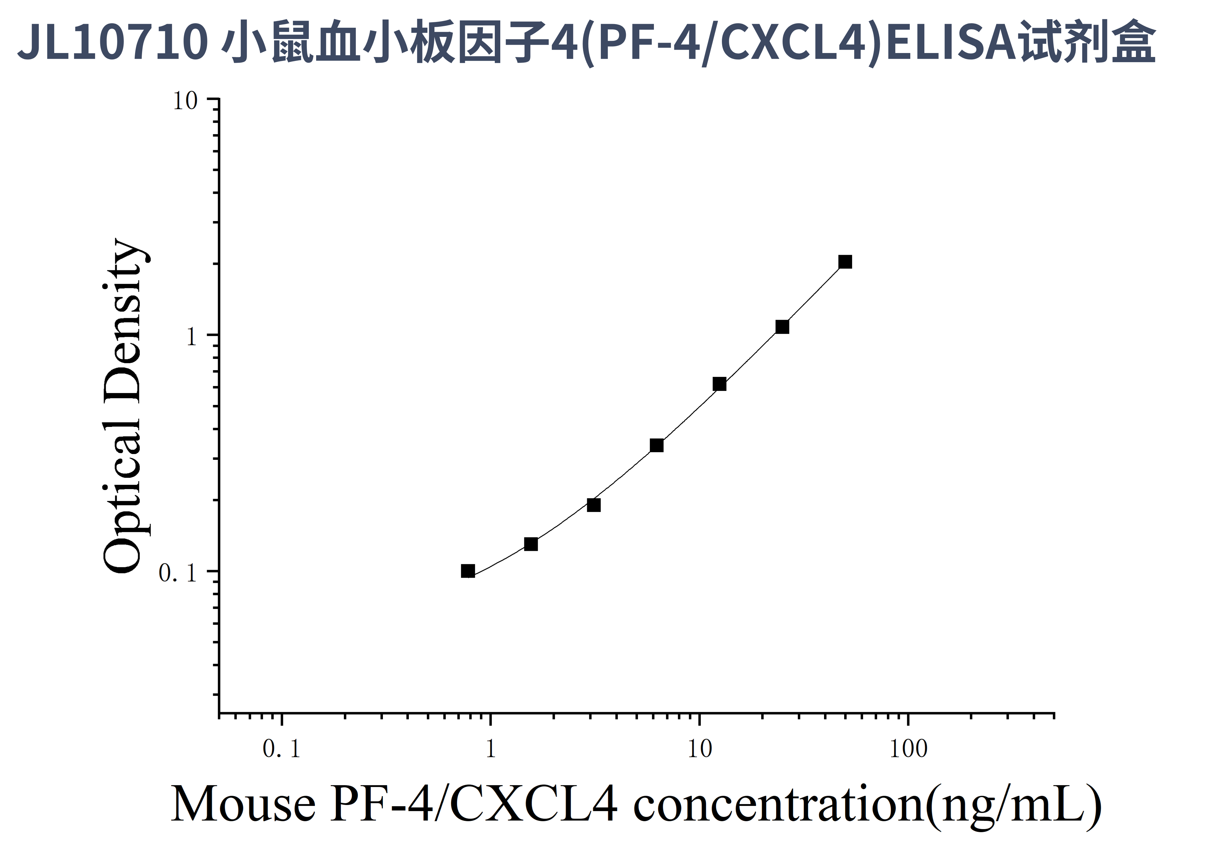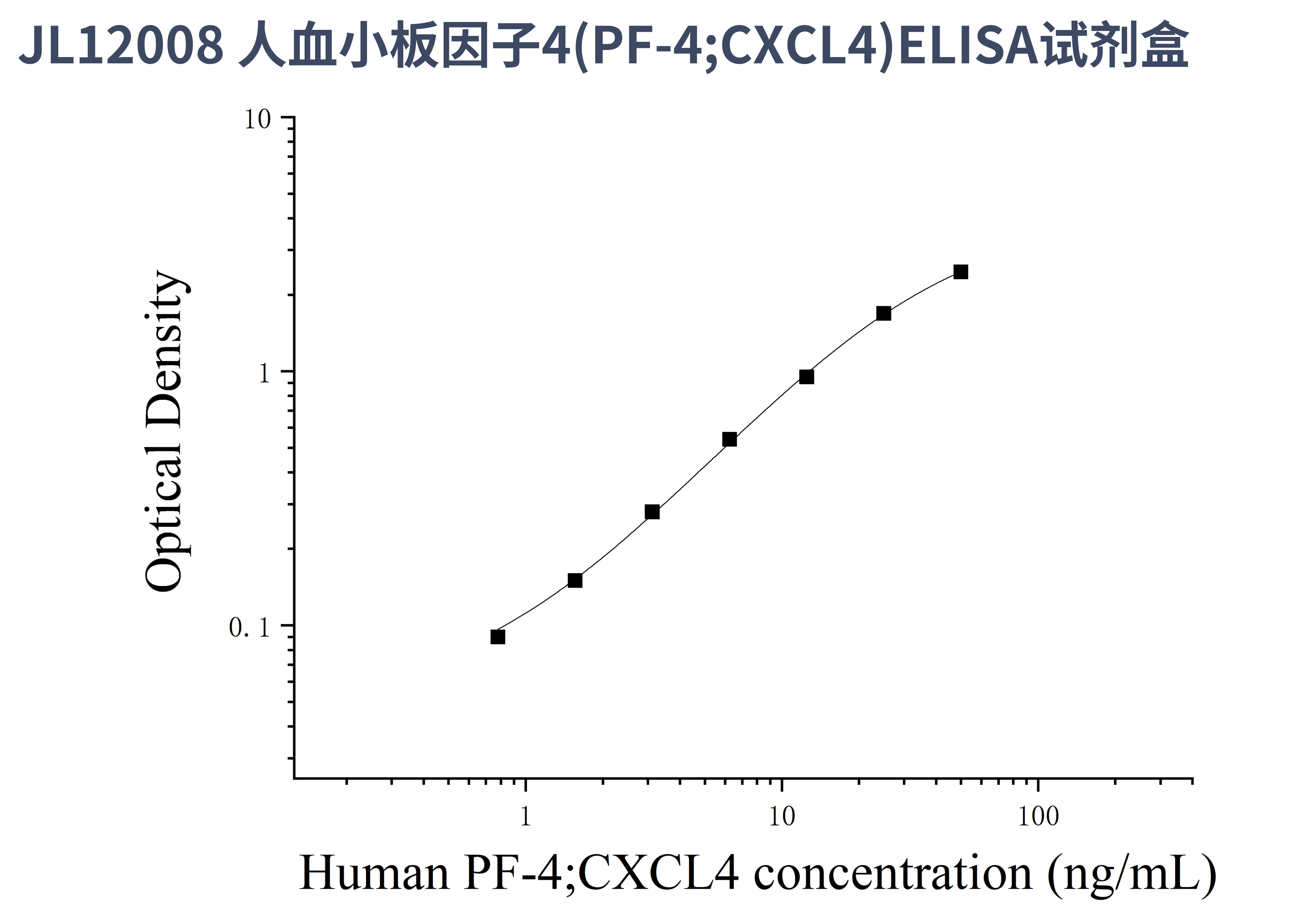 由于实验操作条件的不同( 如操作者、移液技术、洗板技术和稳定条件等),标准曲线的OD值会有所差异。以下数据和曲线仅供参考,实验者需根据自己的实验建立标准曲线。