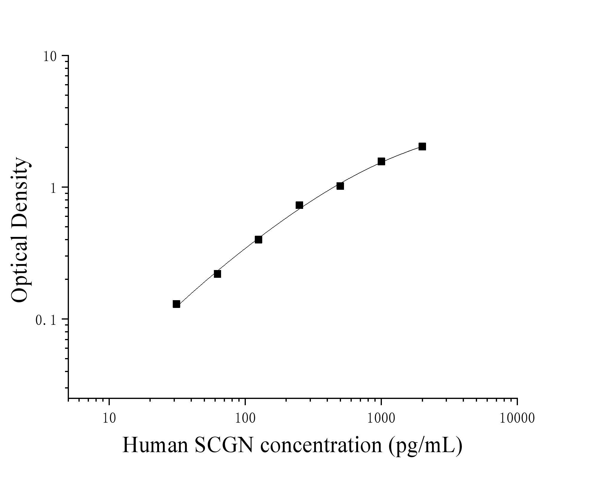 由于实验操作条件的不同( 如操作者、移液技术、洗板技术和稳定条件等),标准曲线的OD值会有所差异。以下数据和曲线仅供参考,实验者需根据自己的实验建立标准曲线。