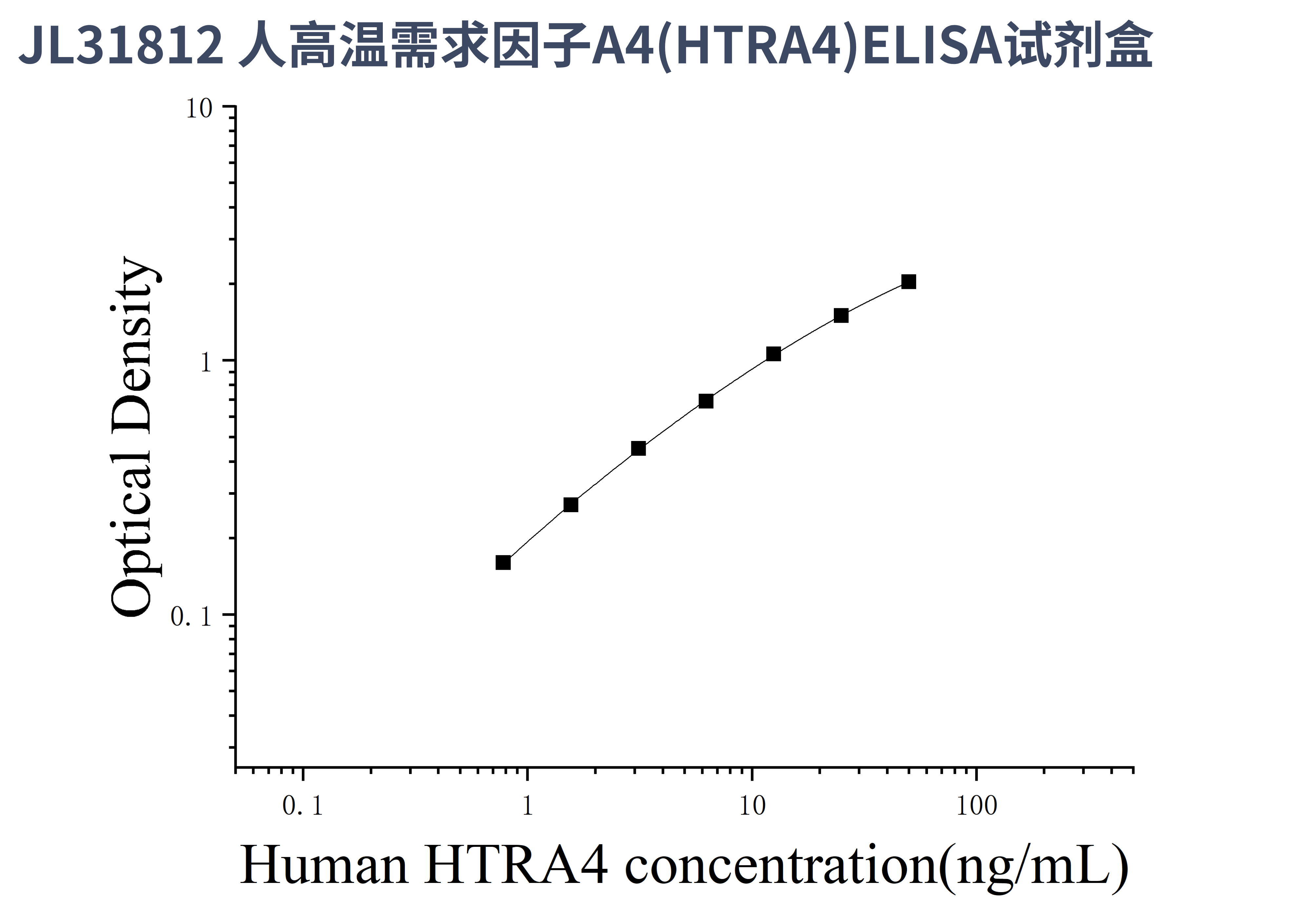 由于实验操作条件的不同( 如操作者、移液技术、洗板技术和稳定条件等),标准曲线的OD值会有所差异。以下数据和曲线仅供参考,实验者需根据自己的实验建立标准曲线。