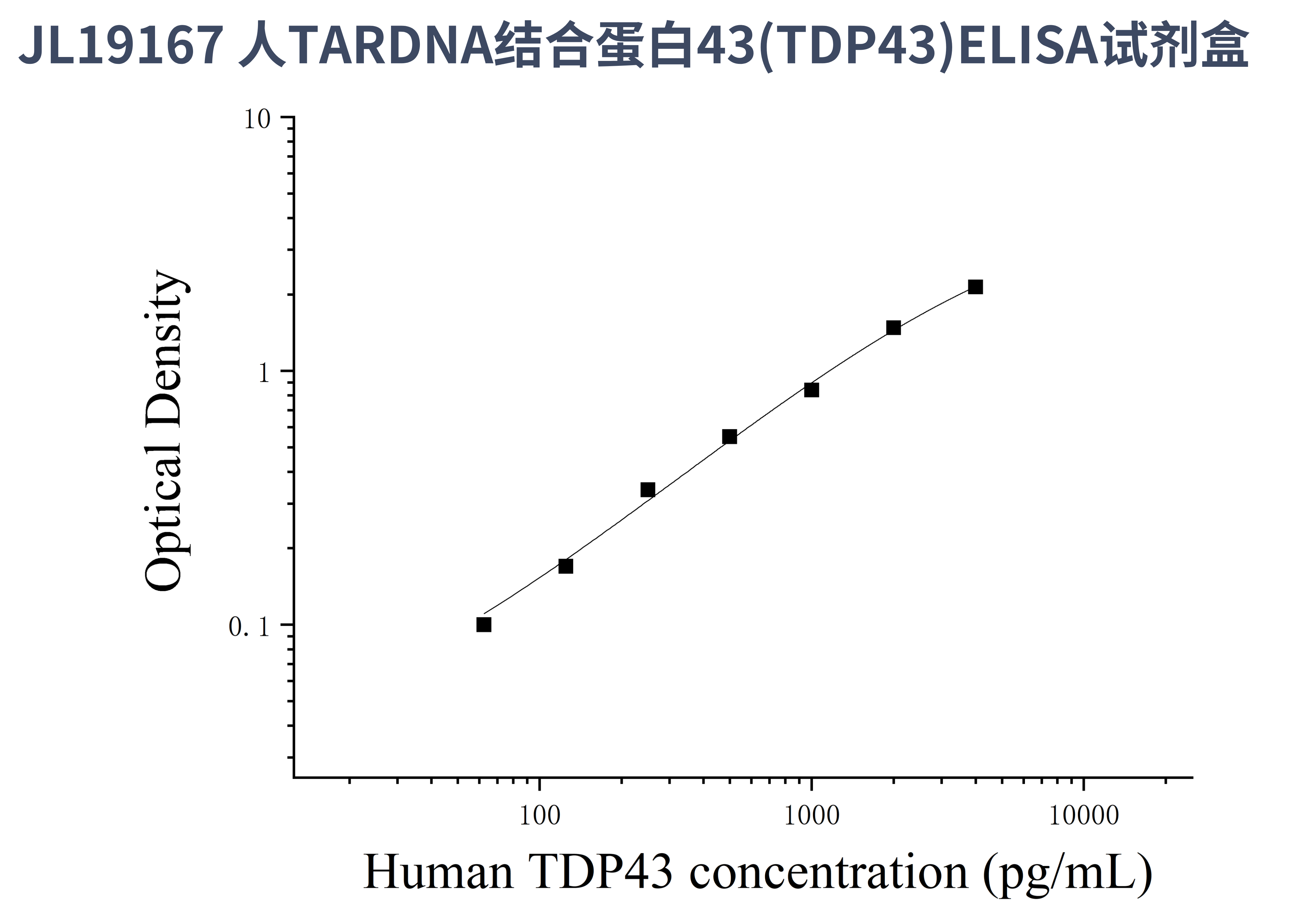 由于实验操作条件的不同( 如操作者、移液技术、洗板技术和稳定条件等),标准曲线的OD值会有所差异。以下数据和曲线仅供参考,实验者需根据自己的实验建立标准曲线。