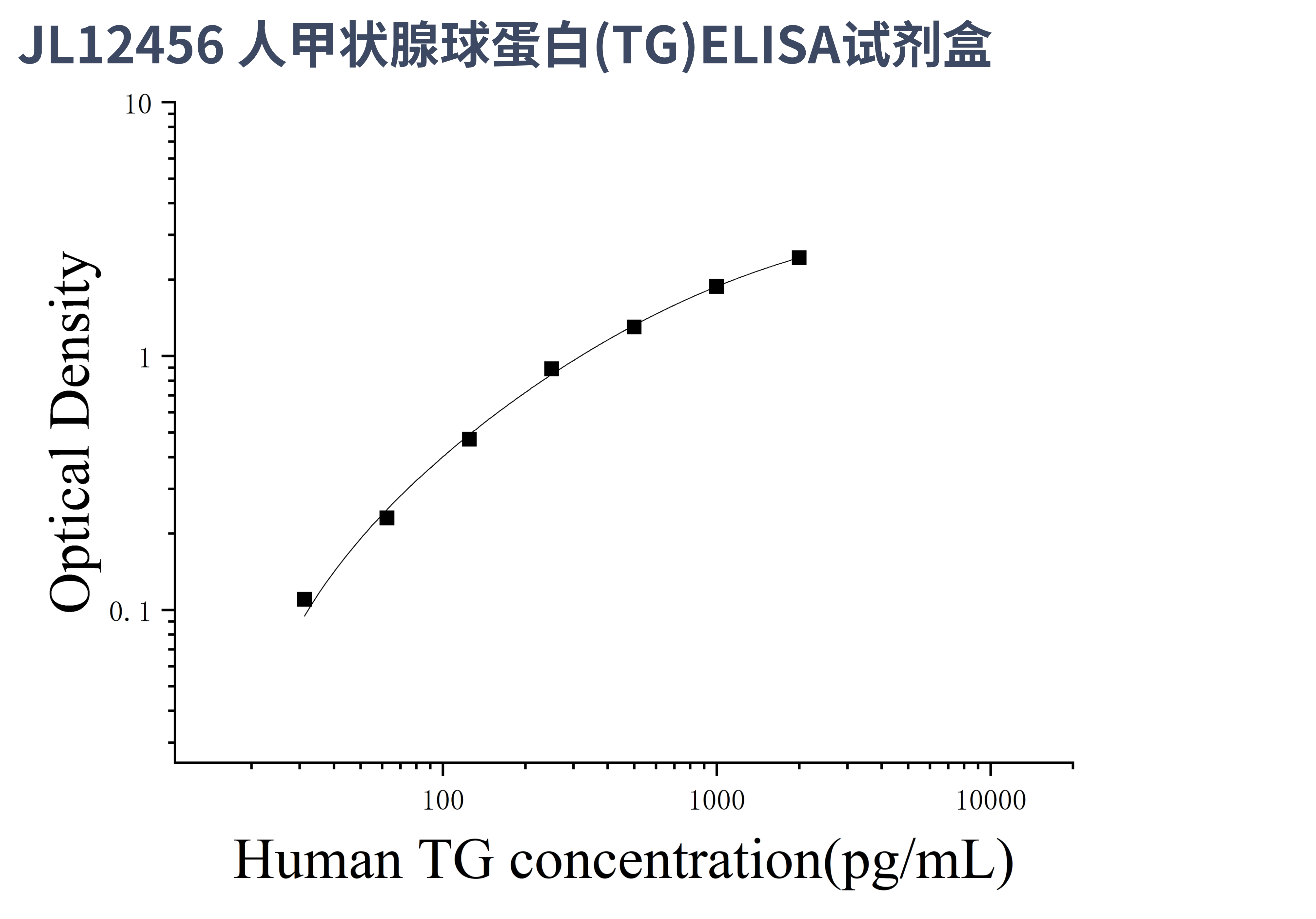 由于实验操作条件的不同( 如操作者、移液技术、洗板技术和稳定条件等),标准曲线的OD值会有所差异。以下数据和曲线仅供参考,实验者需根据自己的实验建立标准曲线。