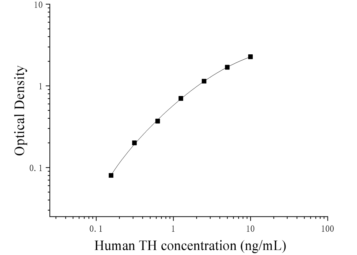 由于实验操作条件的不同( 如操作者、移液技术、洗板技术和稳定条件等),标准曲线的OD值会有所差异。以下数据和曲线仅供参考,实验者需根据自己的实验建立标准曲线。