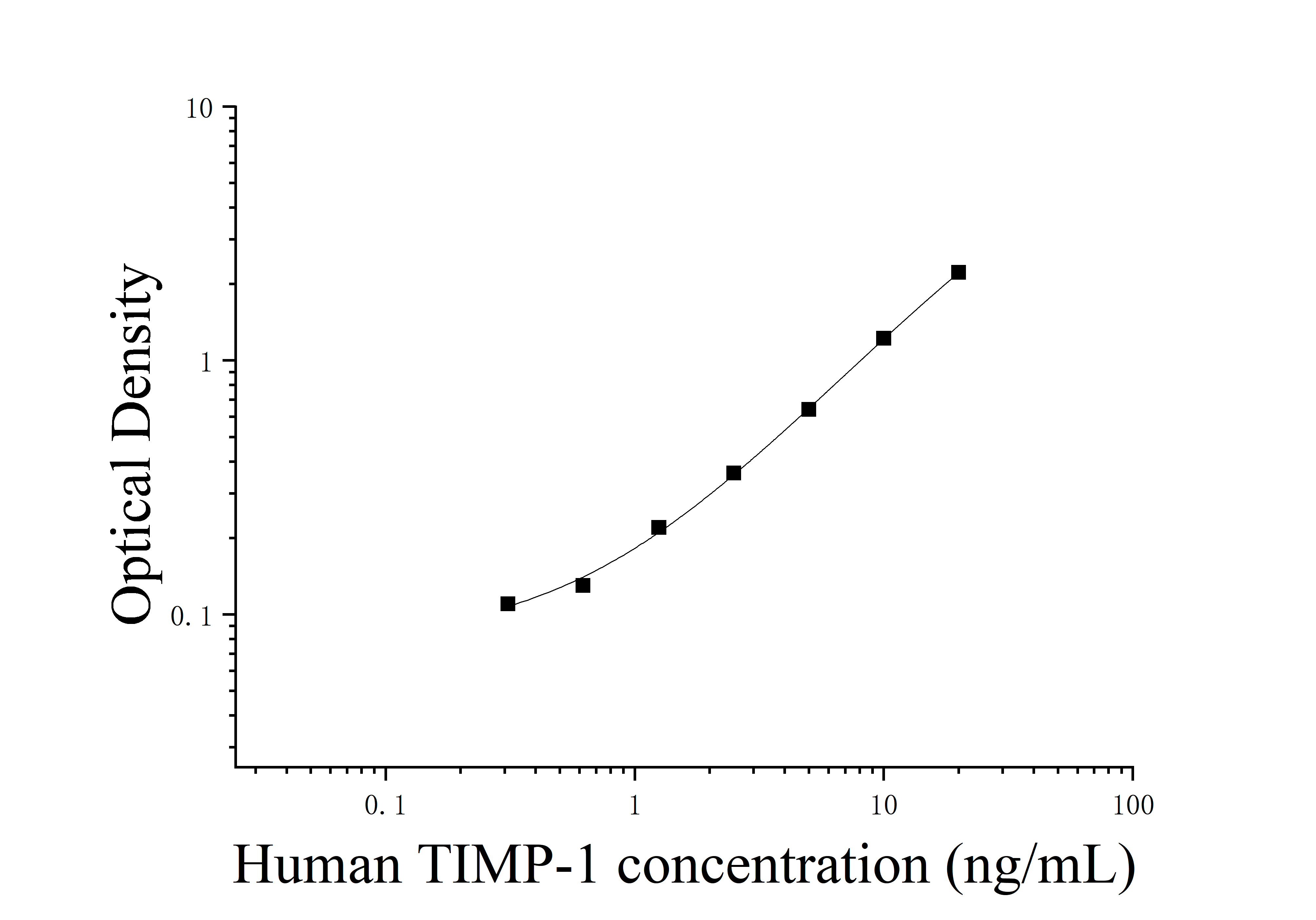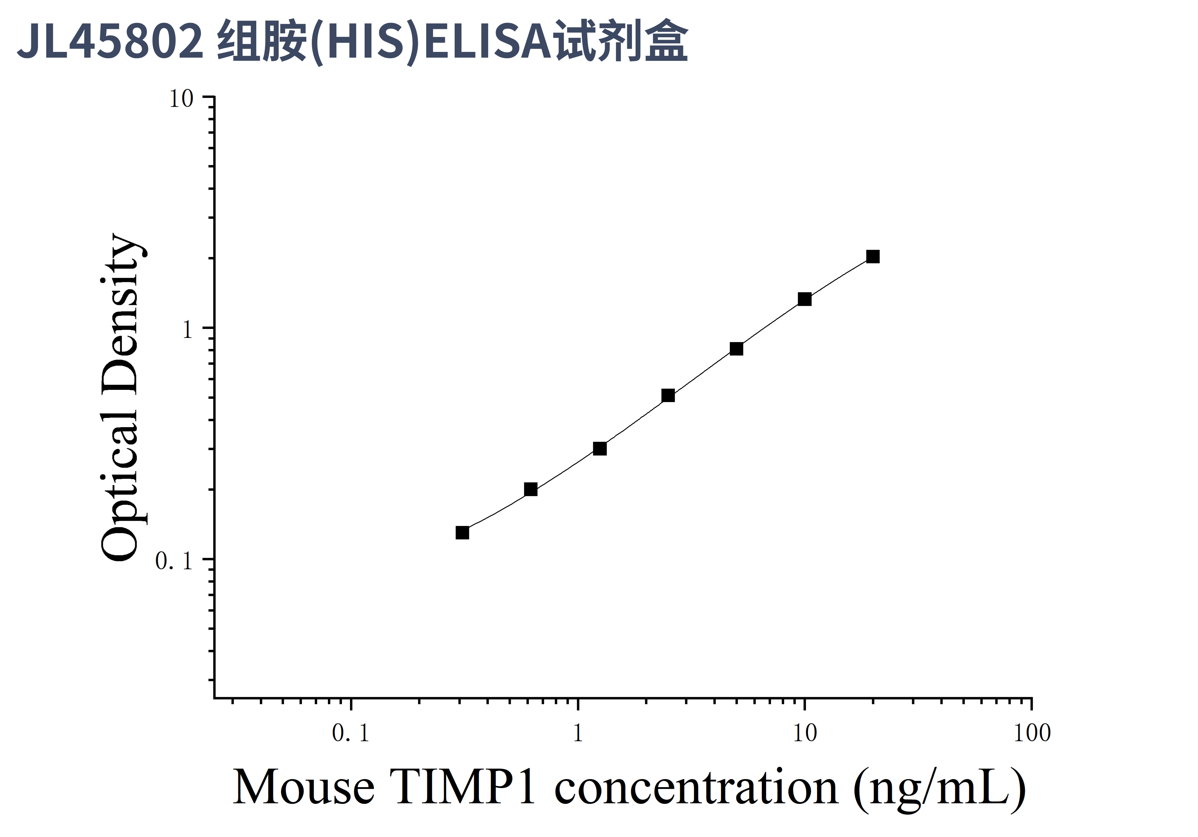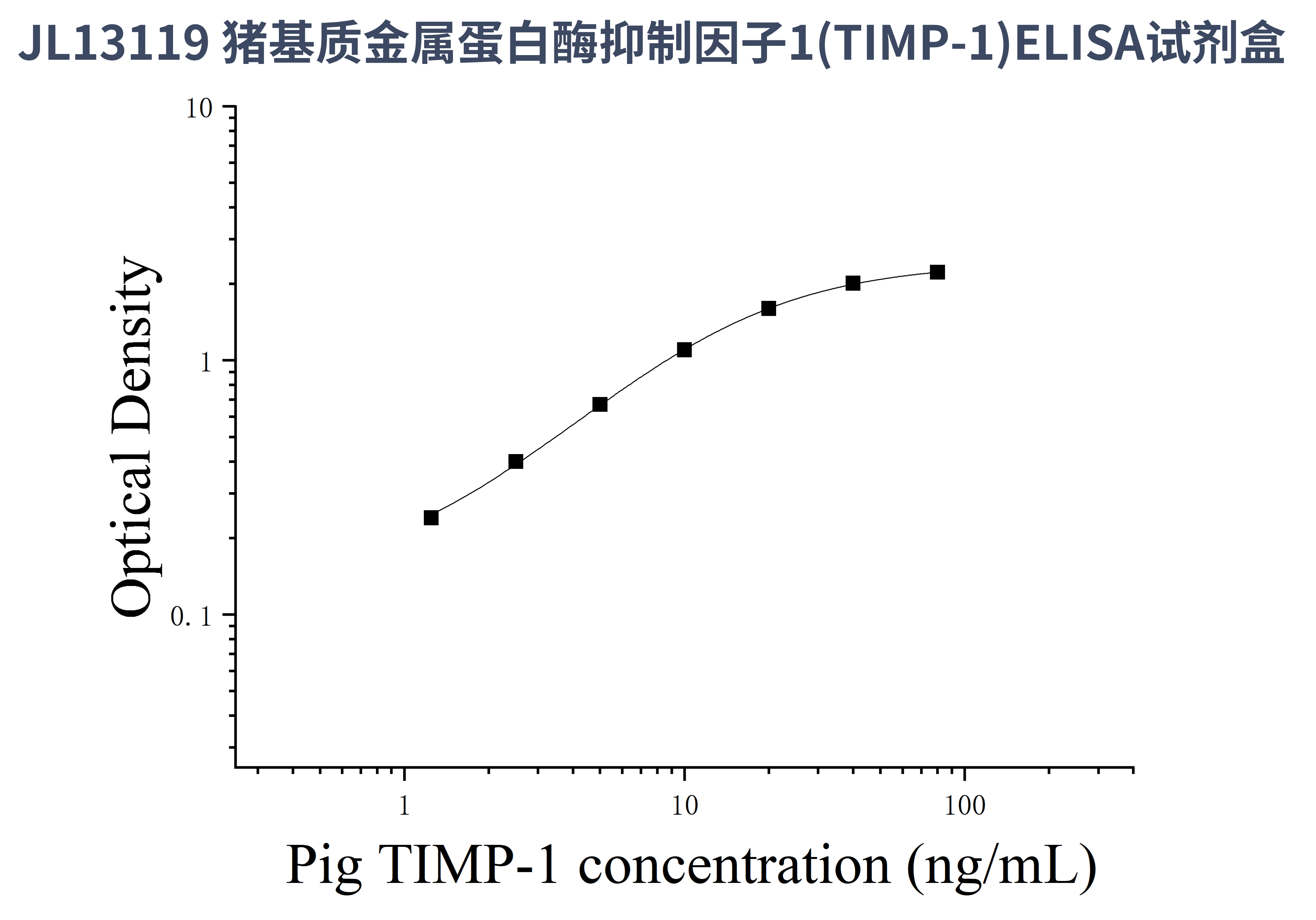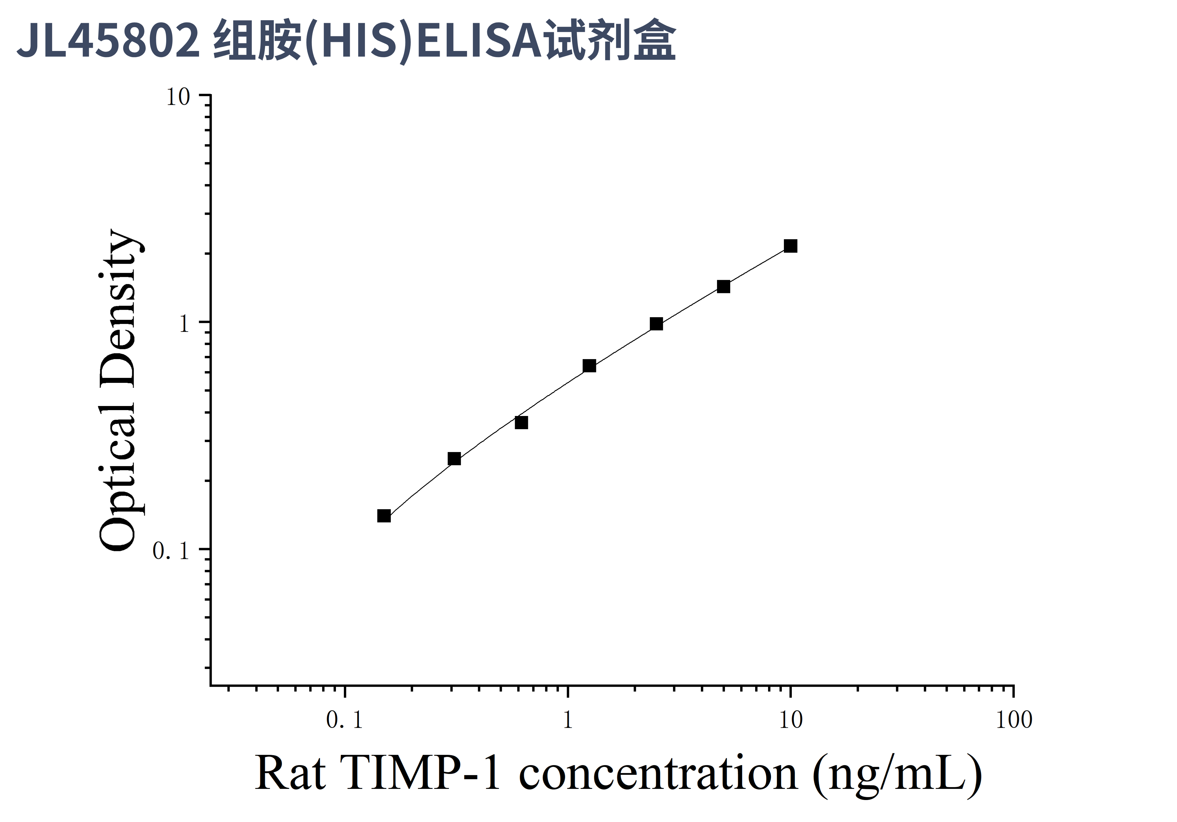 由于实验操作条件的不同( 如操作者、移液技术、洗板技术和稳定条件等),标准曲线的OD值会有所差异。以下数据和曲线仅供参考,实验者需根据自己的实验建立标准曲线。