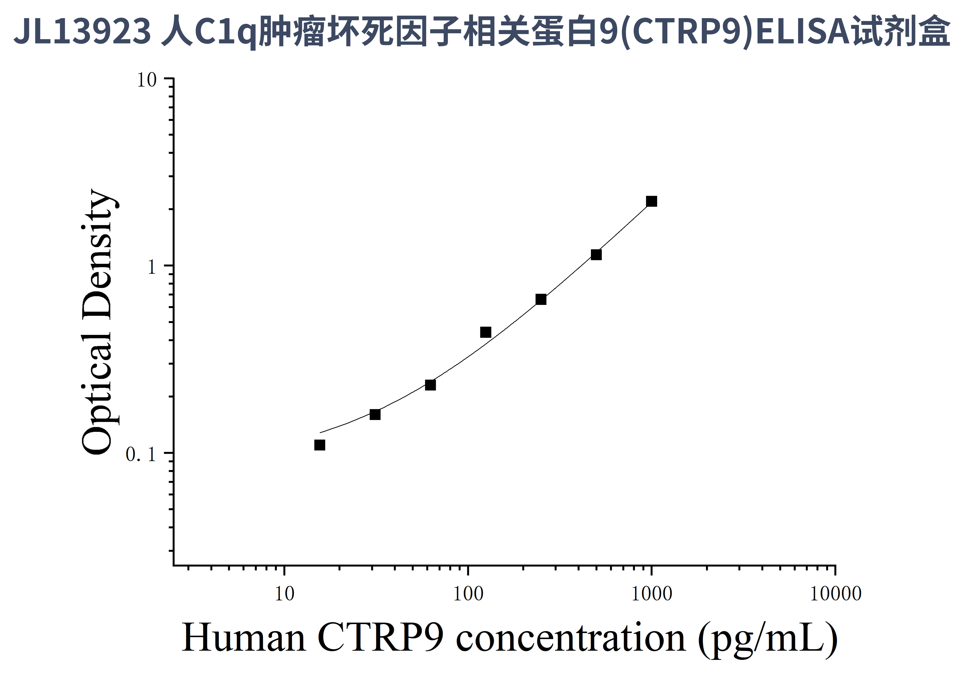 由于实验操作条件的不同( 如操作者、移液技术、洗板技术和稳定条件等),标准曲线的OD值会有所差异。以下数据和曲线仅供参考,实验者需根据自己的实验建立标准曲线。