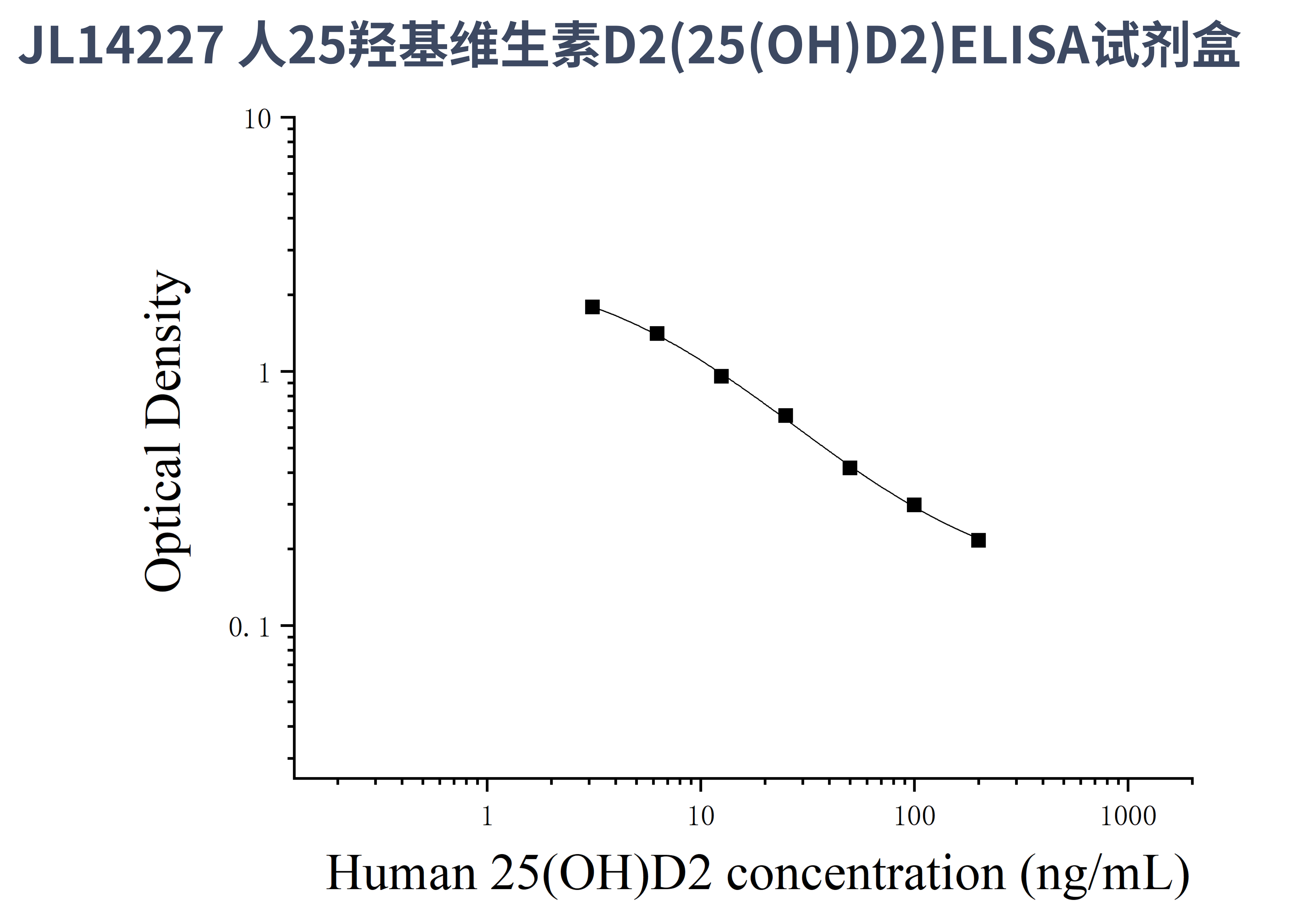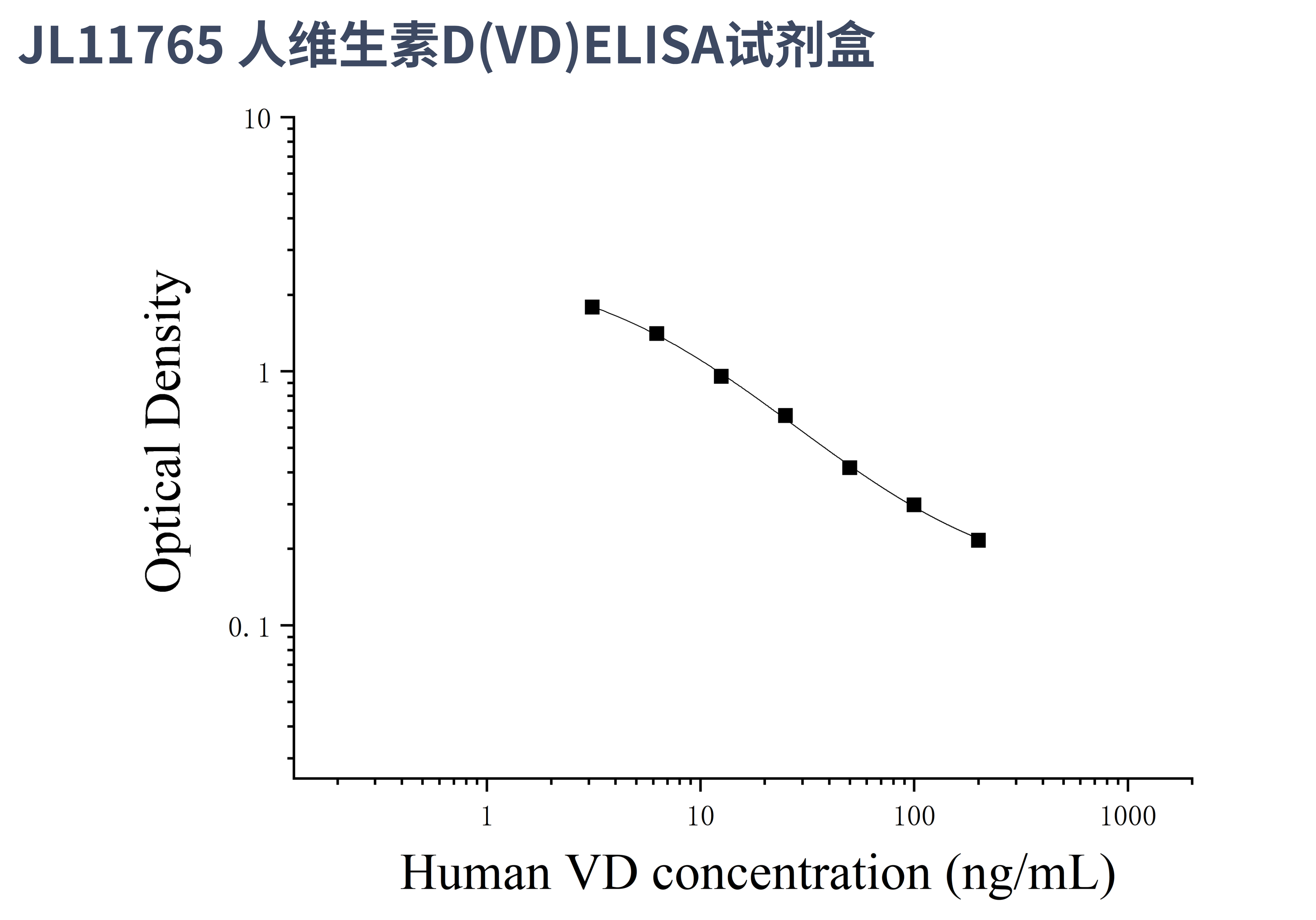 由于实验操作条件的不同( 如操作者、移液技术、洗板技术和稳定条件等),标准曲线的OD值会有所差异。以下数据和曲线仅供参考,实验者需根据自己的实验建立标准曲线。