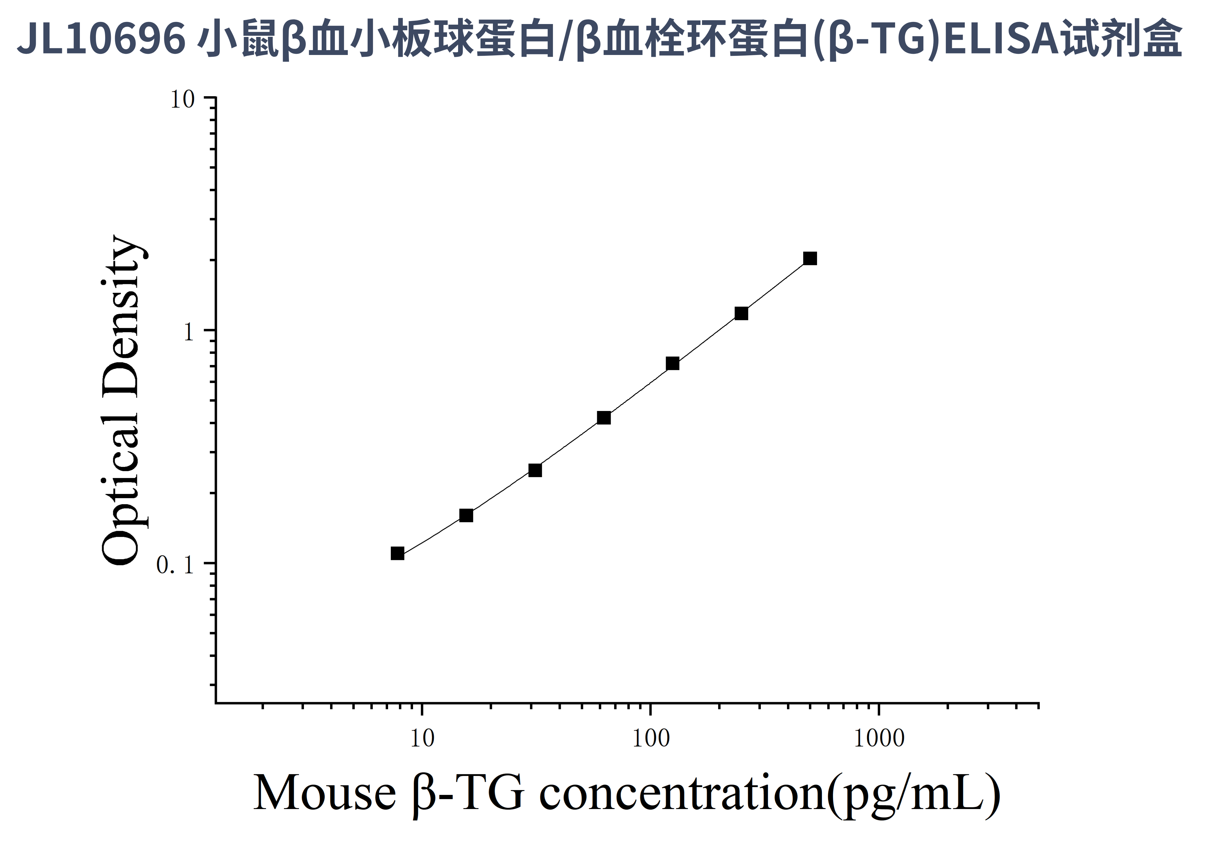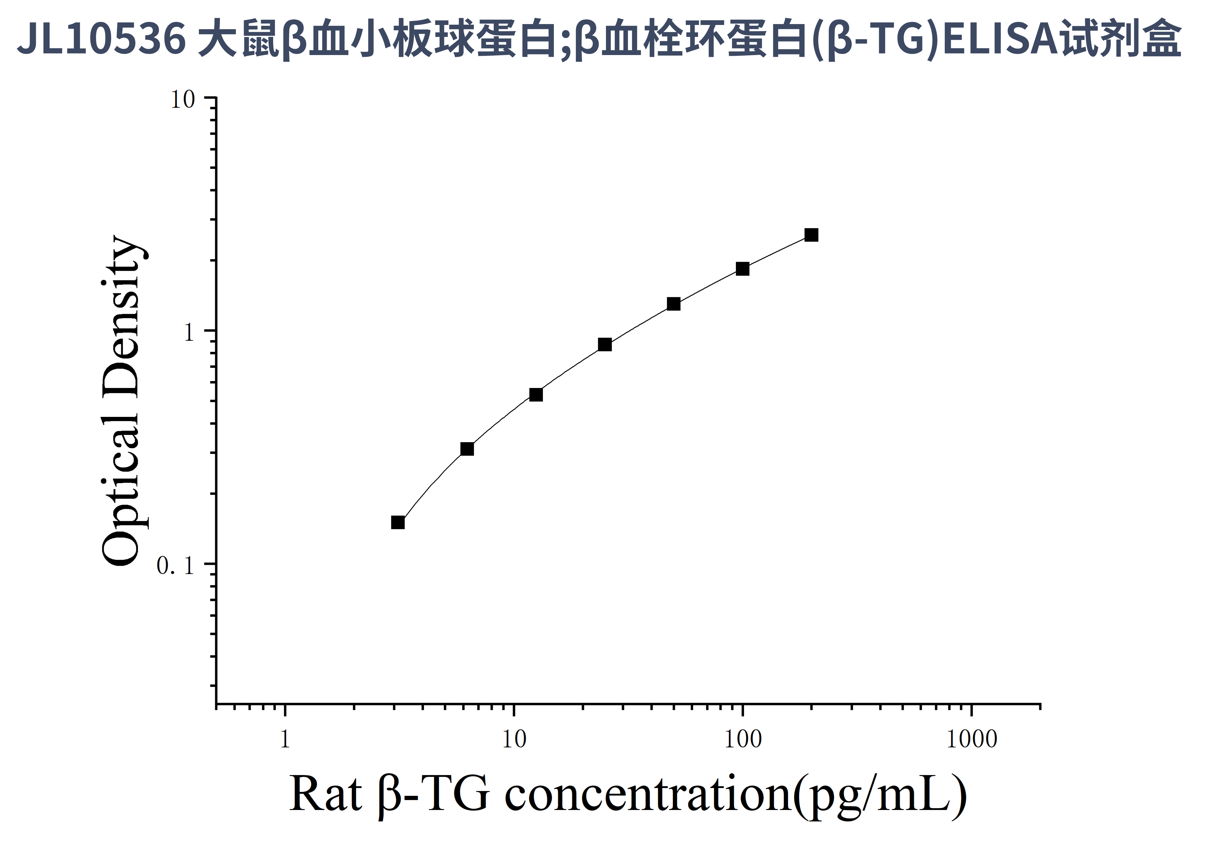 由于实验操作条件的不同( 如操作者、移液技术、洗板技术和稳定条件等),标准曲线的OD值会有所差异。以下数据和曲线仅供参考,实验者需根据自己的实验建立标准曲线。