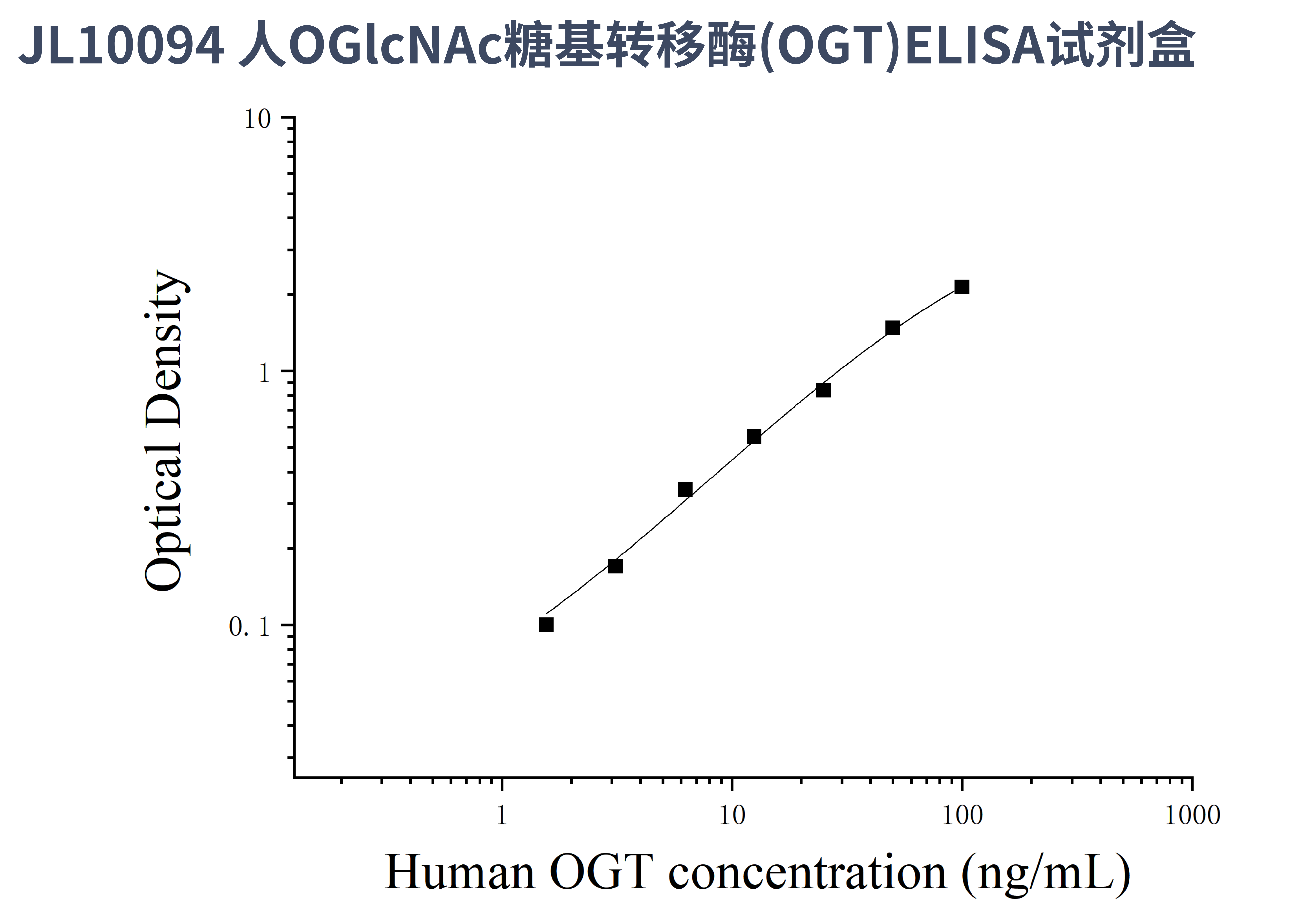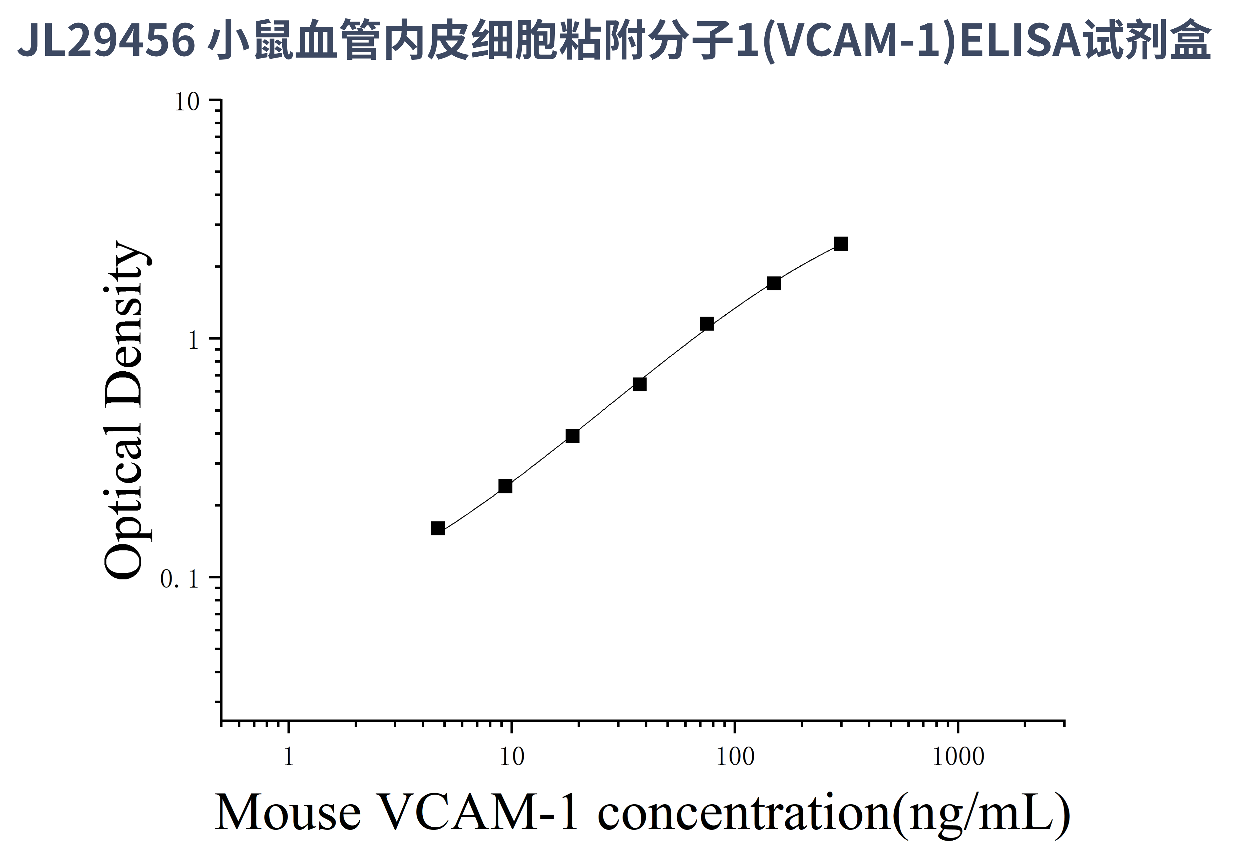 由于实验操作条件的不同( 如操作者、移液技术、洗板技术和稳定条件等),标准曲线的OD值会有所差异。以下数据和曲线仅供参考,实验者需根据自己的实验建立标准曲线。
