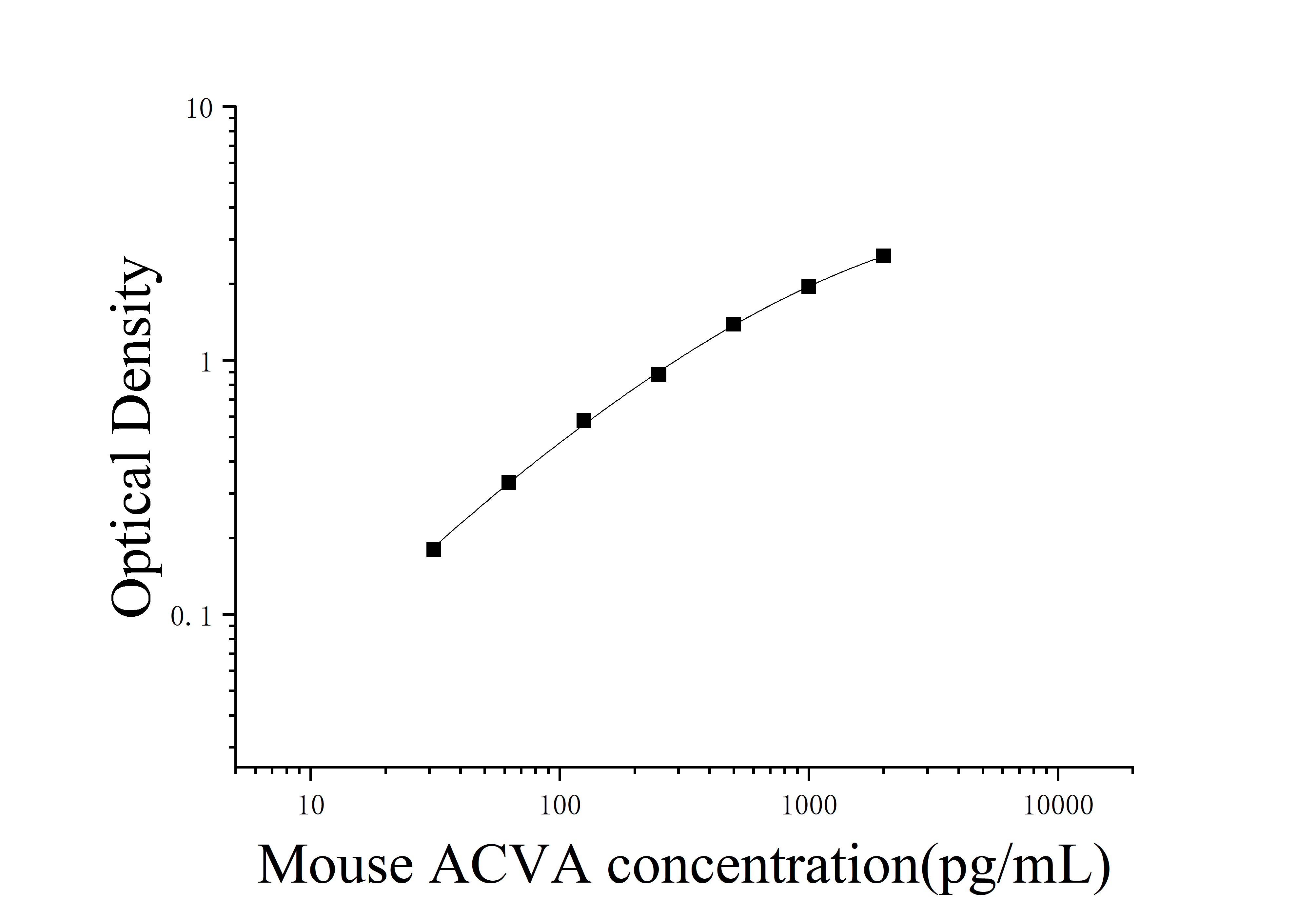 由于实验操作条件的不同( 如操作者、移液技术、洗板技术和稳定条件等),标准曲线的OD值会有所差异。以下数据和曲线仅供参考,实验者需根据自己的实验建立标准曲线。