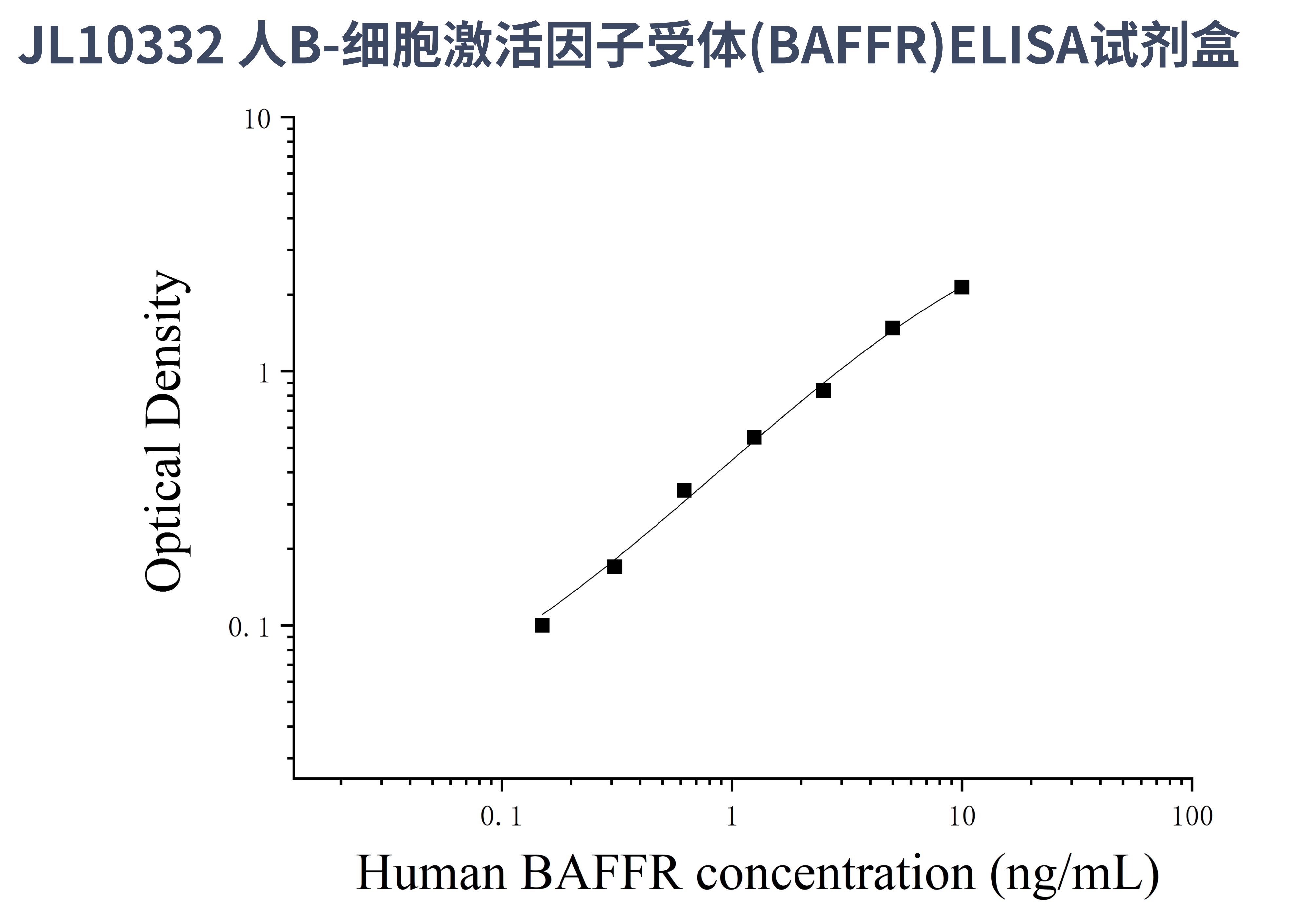 由于实验操作条件的不同( 如操作者、移液技术、洗板技术和稳定条件等),标准曲线的OD值会有所差异。以下数据和曲线仅供参考,实验者需根据自己的实验建立标准曲线。