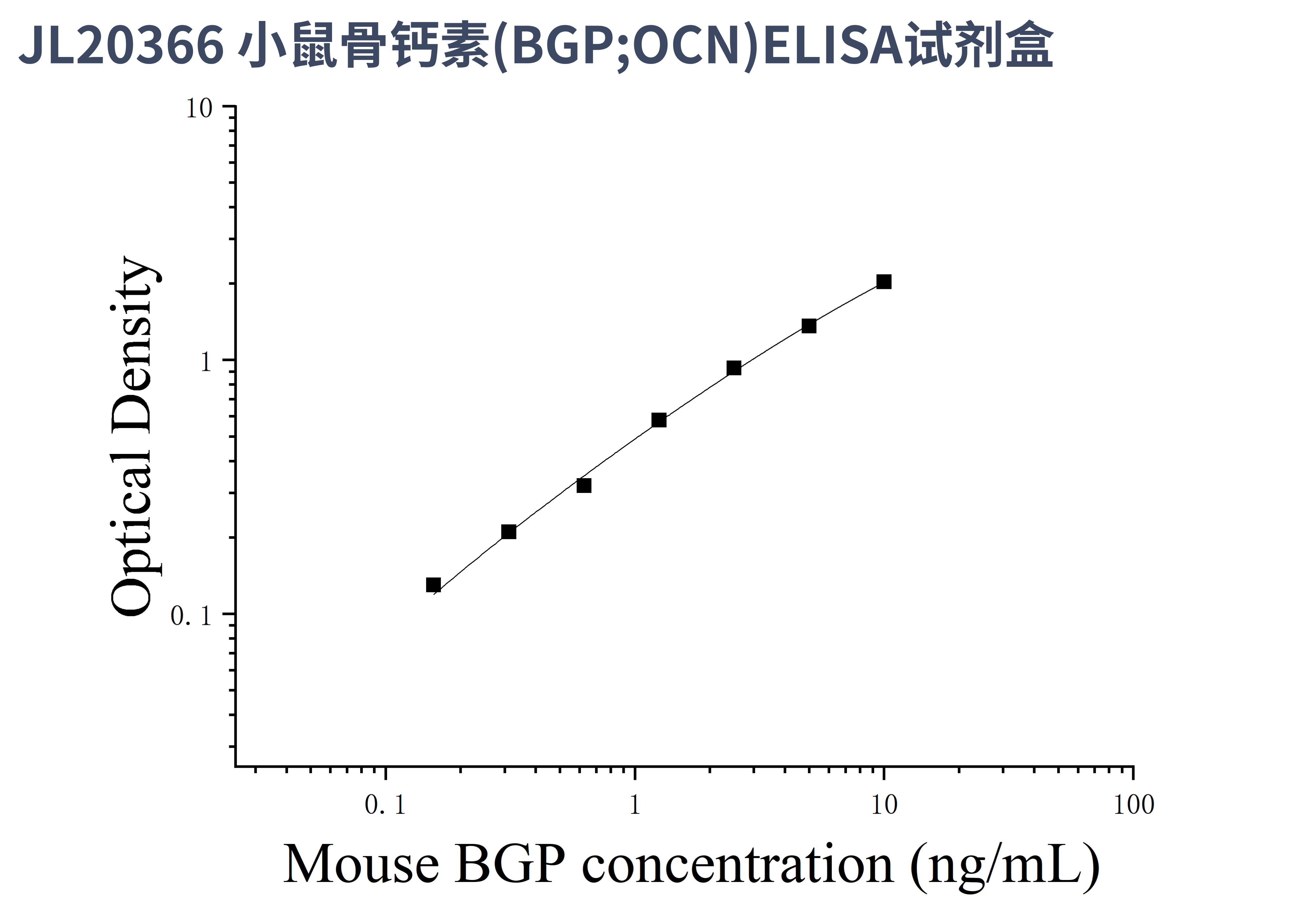 由于实验操作条件的不同( 如操作者、移液技术、洗板技术和稳定条件等),标准曲线的OD值会有所差异。以下数据和曲线仅供参考,实验者需根据自己的实验建立标准曲线。