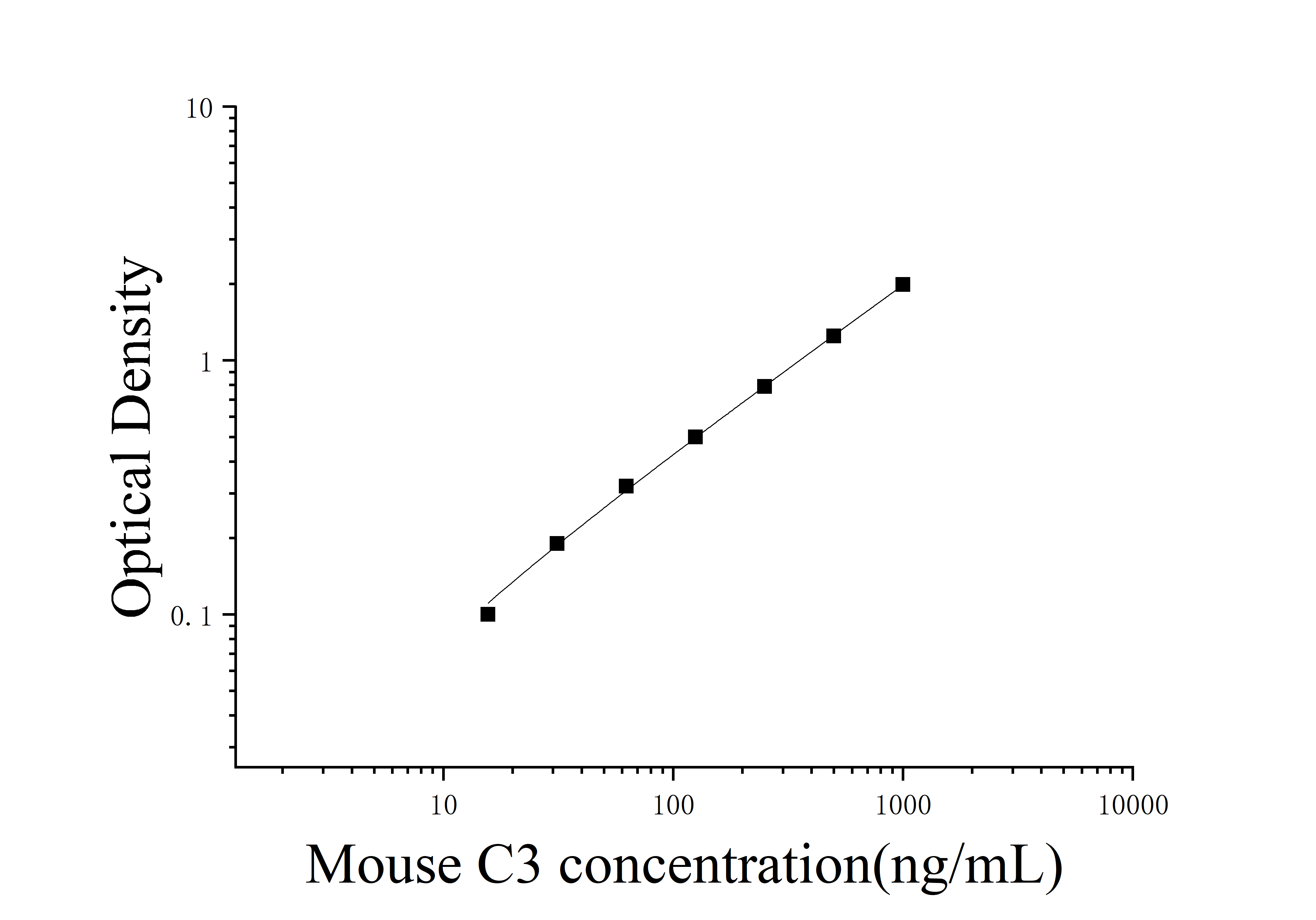 由于实验操作条件的不同( 如操作者、移液技术、洗板技术和稳定条件等),标准曲线的OD值会有所差异。以下数据和曲线仅供参考,实验者需根据自己的实验建立标准曲线。