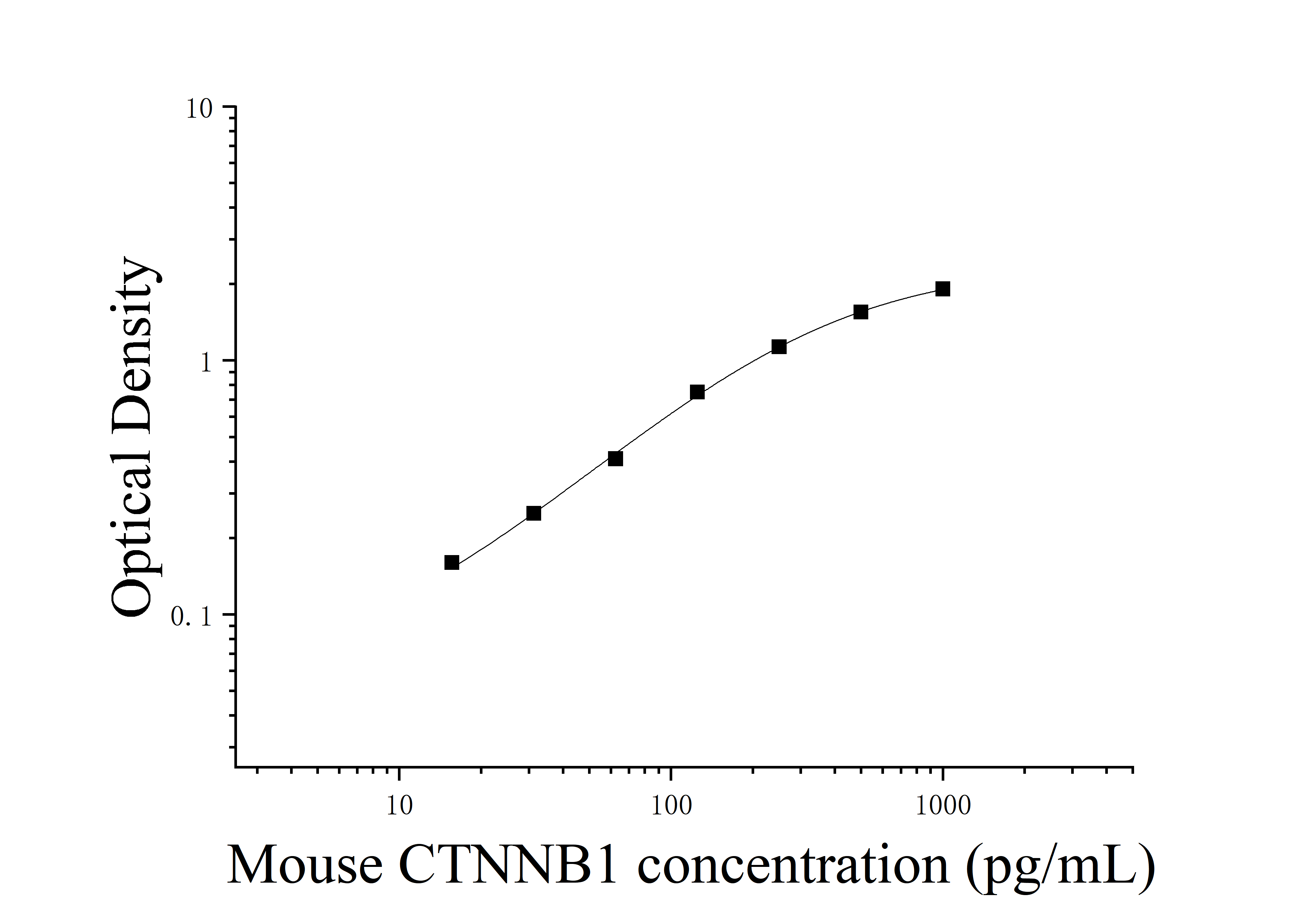由于实验操作条件的不同( 如操作者、移液技术、洗板技术和稳定条件等),标准曲线的OD值会有所差异。以下数据和曲线仅供参考,实验者需根据自己的实验建立标准曲线。