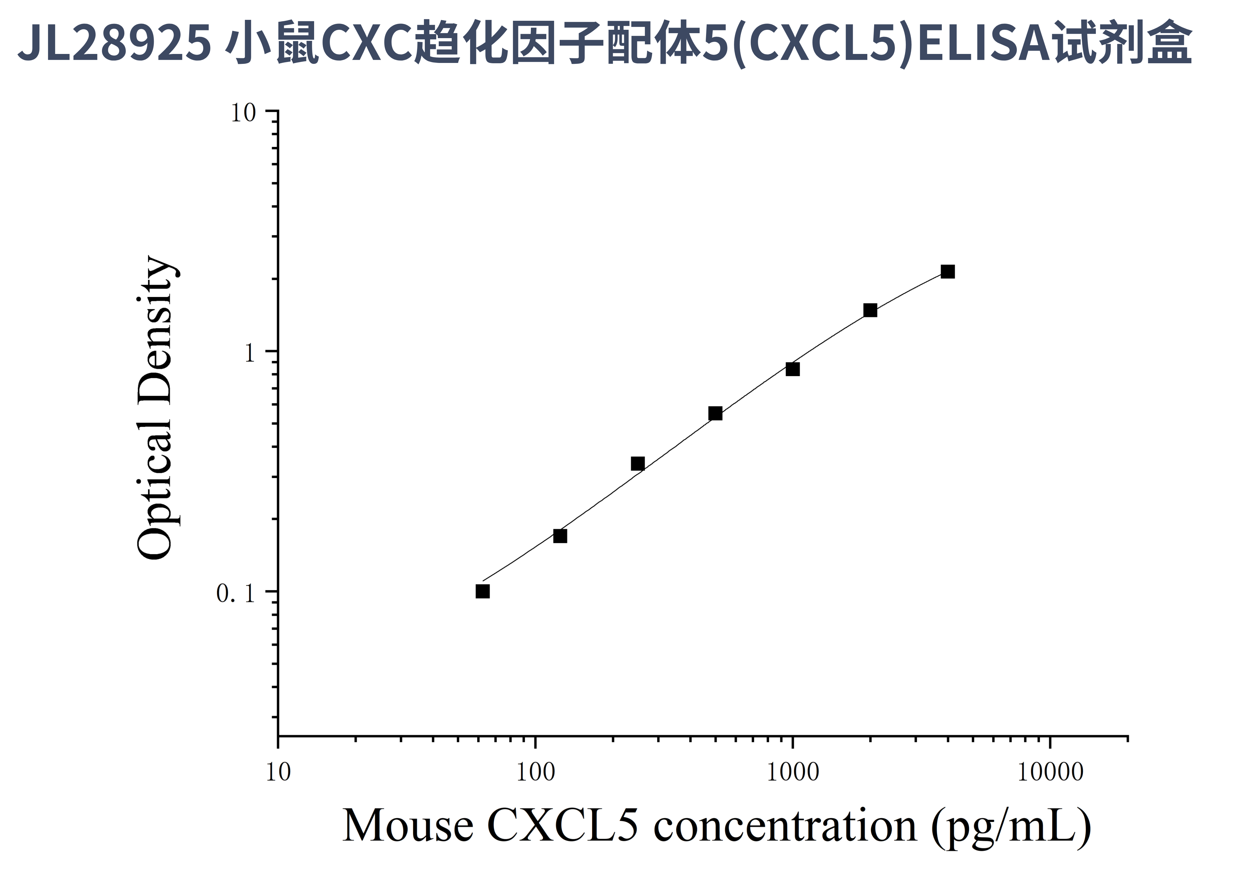 由于实验操作条件的不同( 如操作者、移液技术、洗板技术和稳定条件等),标准曲线的OD值会有所差异。以下数据和曲线仅供参考,实验者需根据自己的实验建立标准曲线。