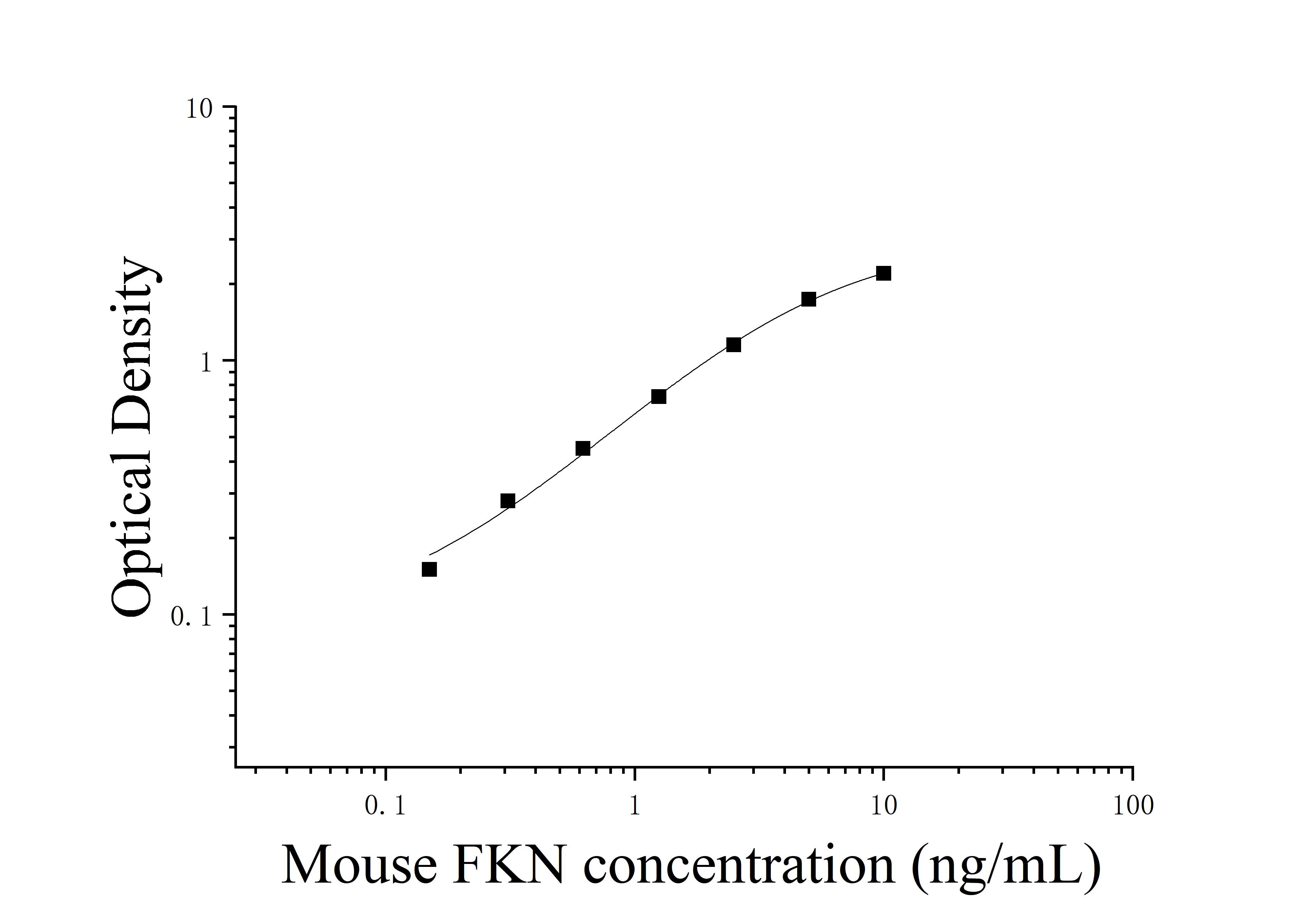 由于实验操作条件的不同( 如操作者、移液技术、洗板技术和稳定条件等),标准曲线的OD值会有所差异。以下数据和曲线仅供参考,实验者需根据自己的实验建立标准曲线。