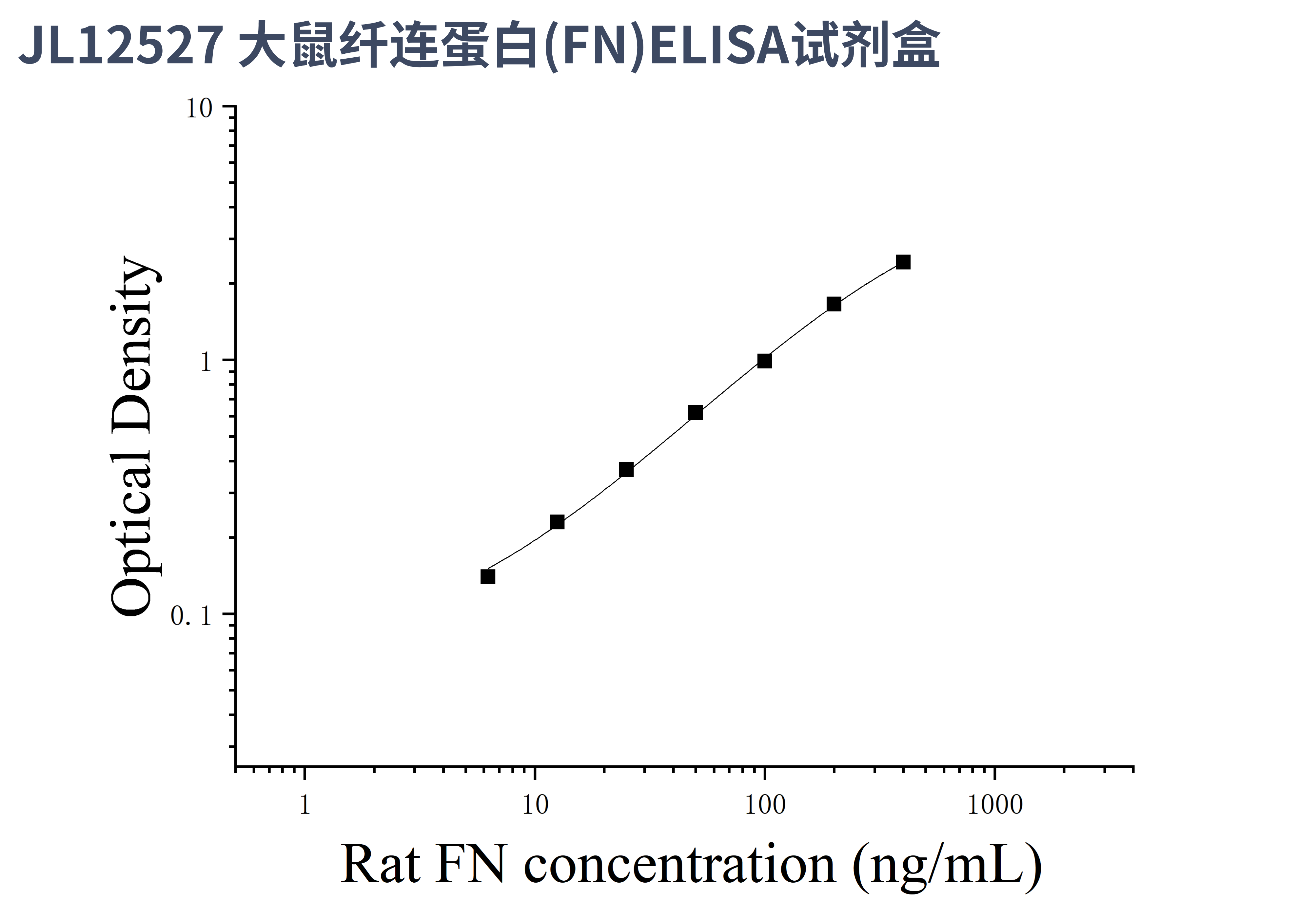 由于实验操作条件的不同( 如操作者、移液技术、洗板技术和稳定条件等),标准曲线的OD值会有所差异。以下数据和曲线仅供参考,实验者需根据自己的实验建立标准曲线。