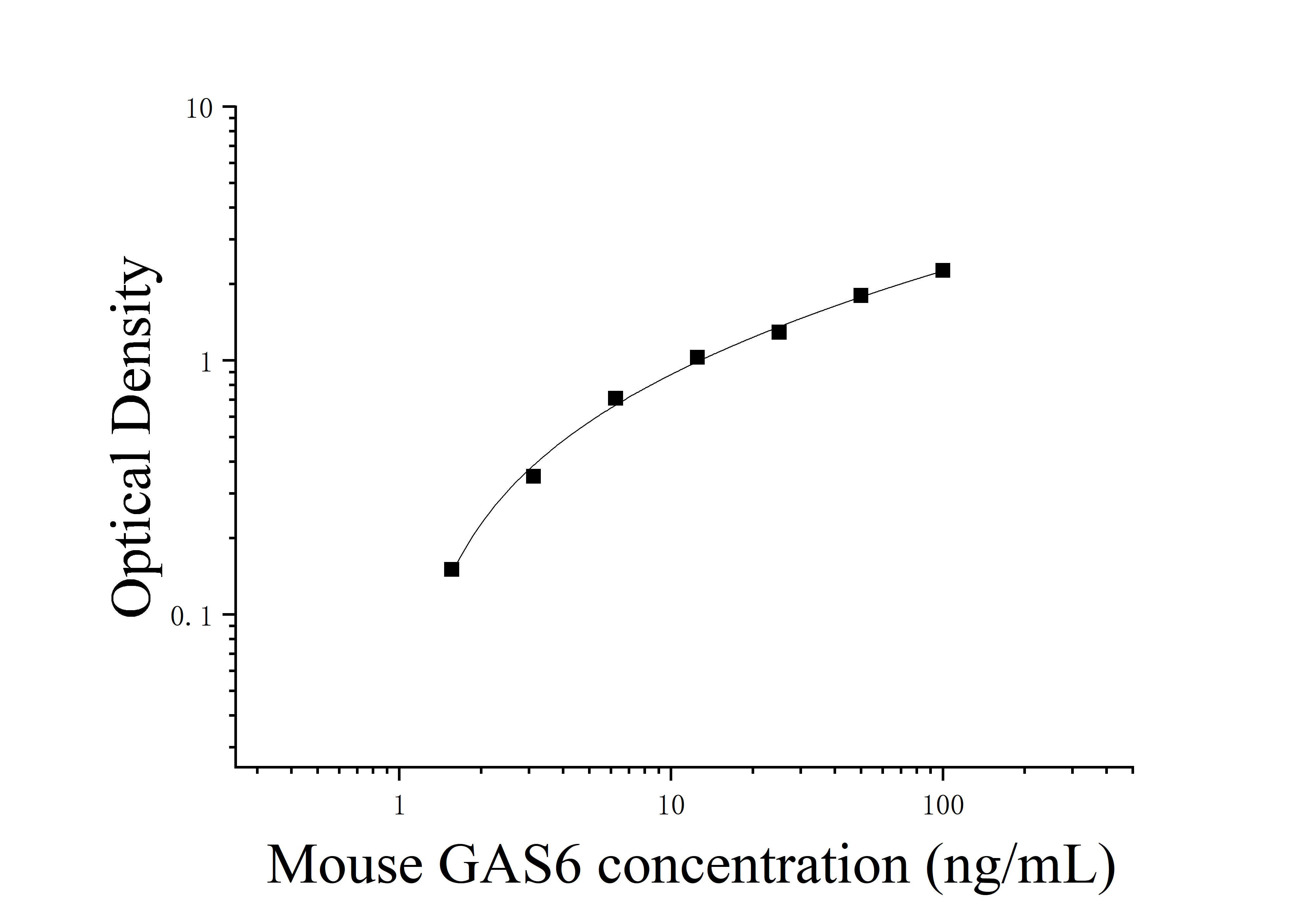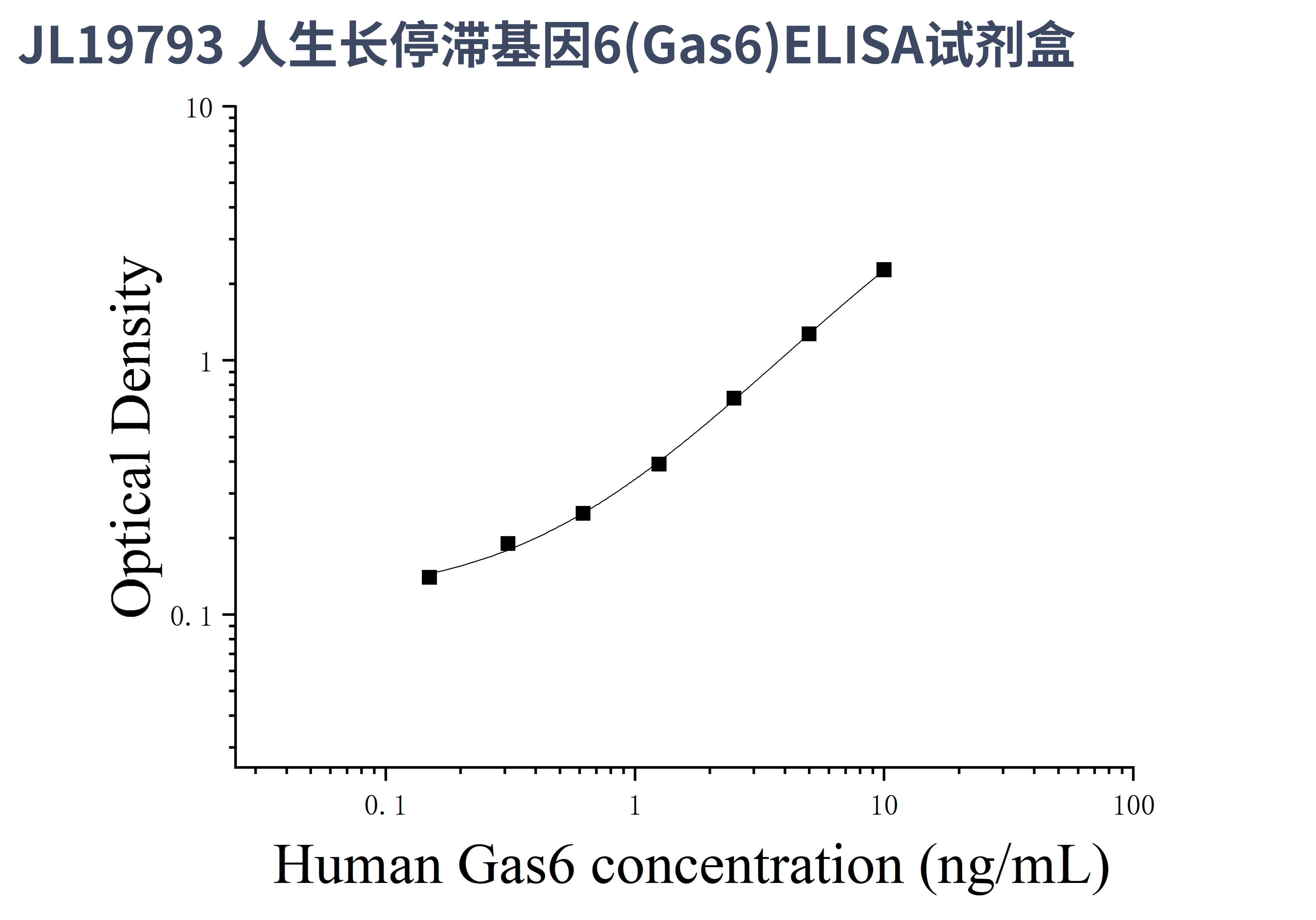 由于实验操作条件的不同( 如操作者、移液技术、洗板技术和稳定条件等),标准曲线的OD值会有所差异。以下数据和曲线仅供参考,实验者需根据自己的实验建立标准曲线。