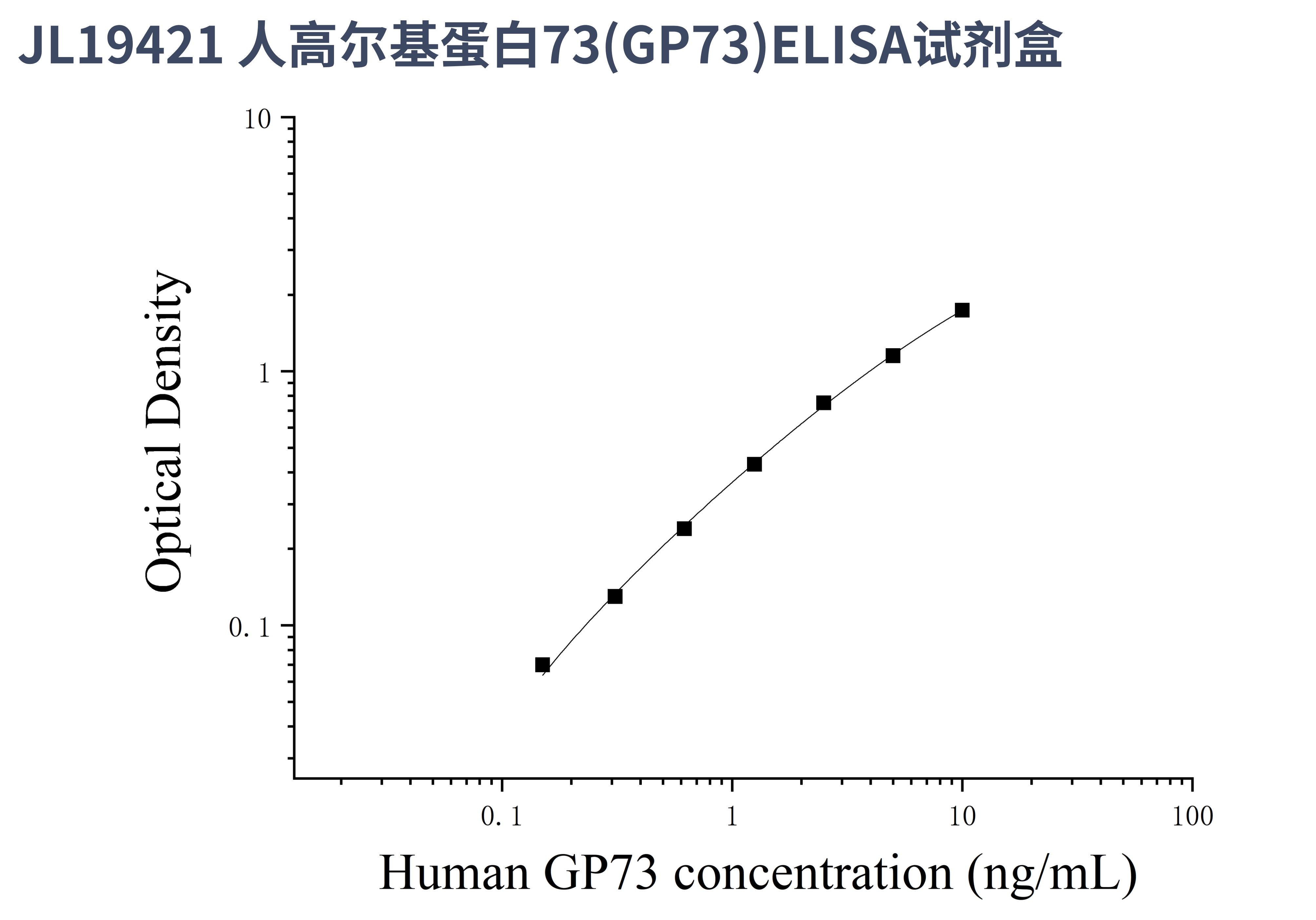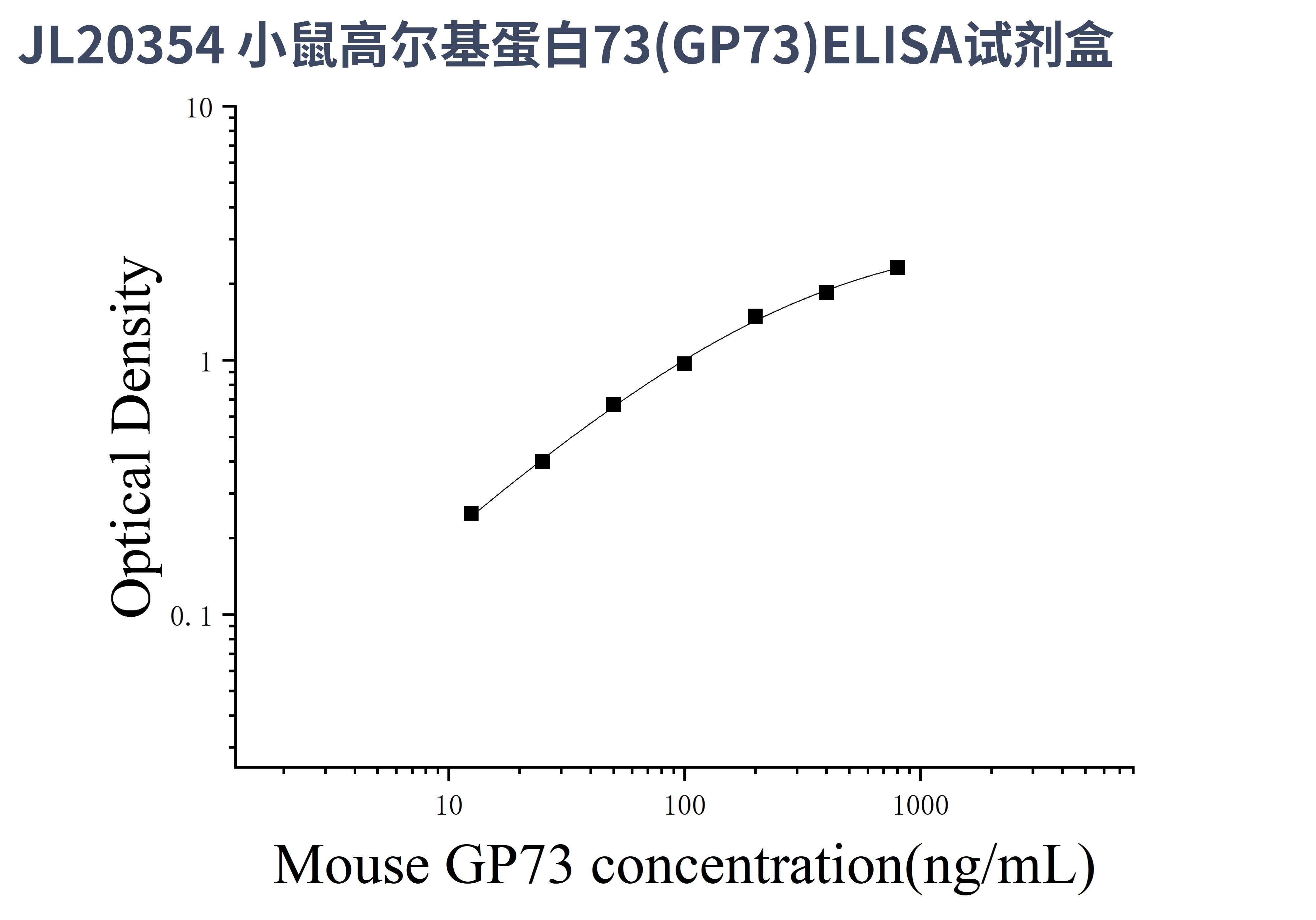 由于实验操作条件的不同( 如操作者、移液技术、洗板技术和稳定条件等),标准曲线的OD值会有所差异。以下数据和曲线仅供参考,实验者需根据自己的实验建立标准曲线。