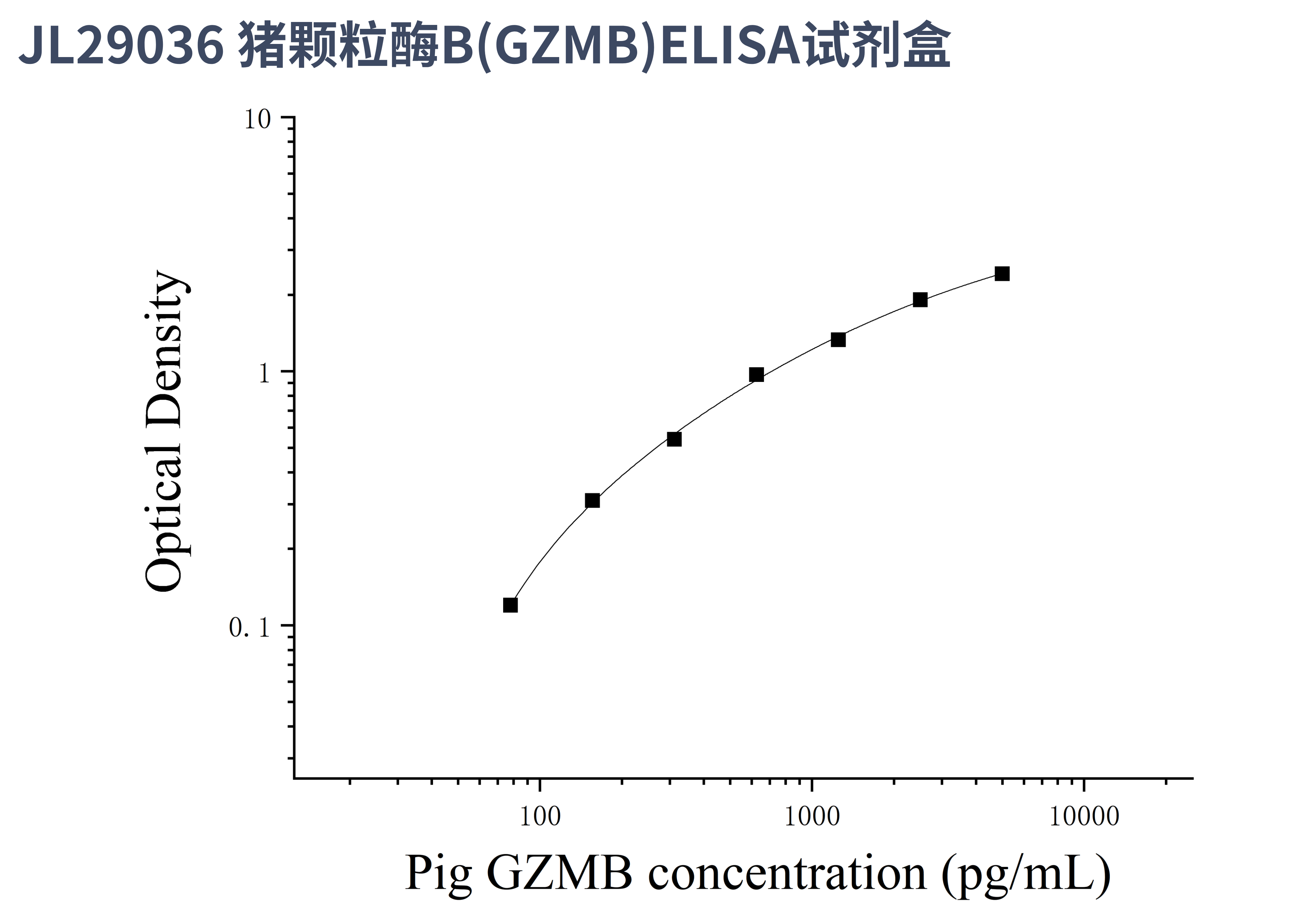 由于实验操作条件的不同( 如操作者、移液技术、洗板技术和稳定条件等),标准曲线的OD值会有所差异。以下数据和曲线仅供参考,实验者需根据自己的实验建立标准曲线。