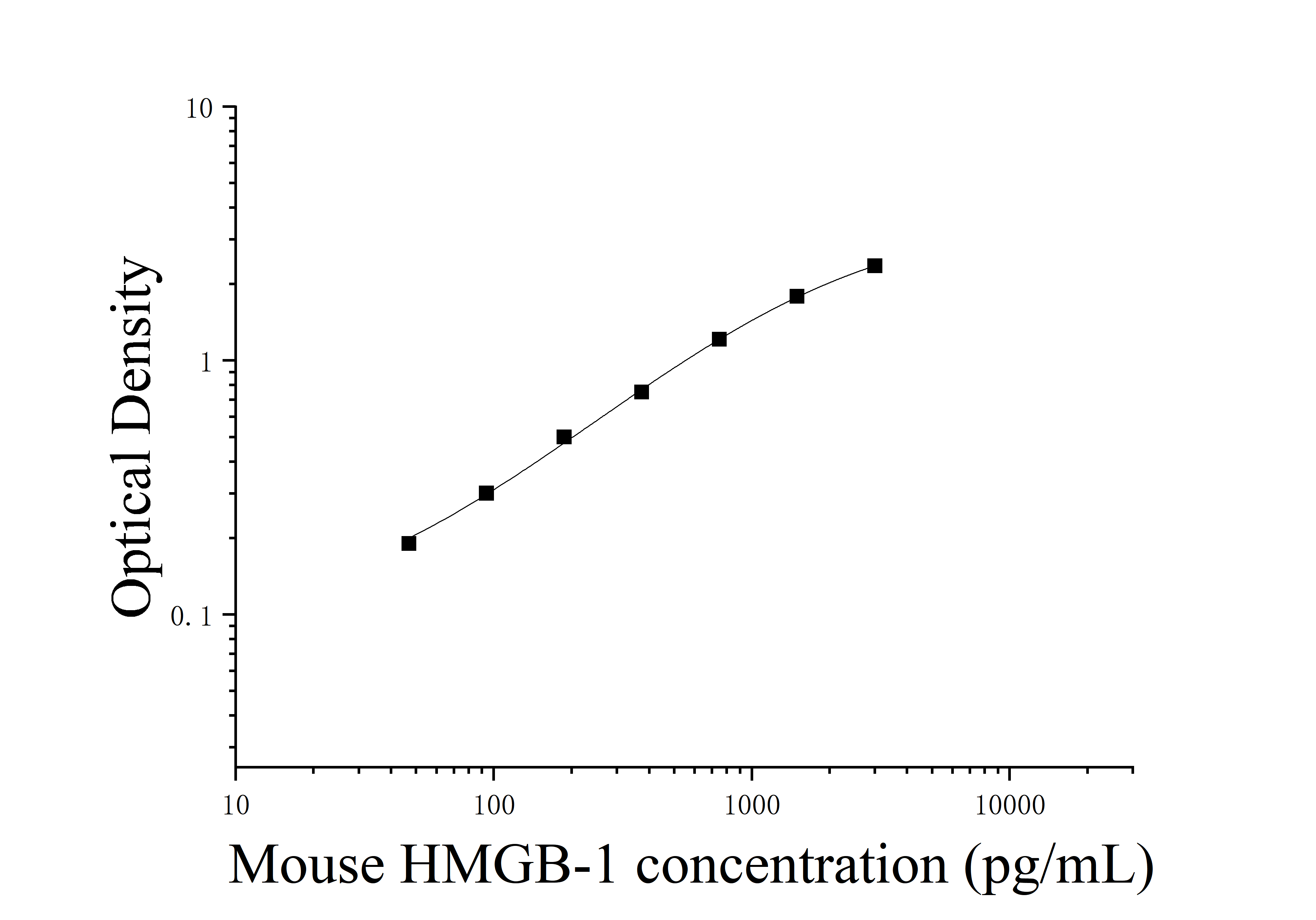 由于实验操作条件的不同( 如操作者、移液技术、洗板技术和稳定条件等),标准曲线的OD值会有所差异。以下数据和曲线仅供参考,实验者需根据自己的实验建立标准曲线。