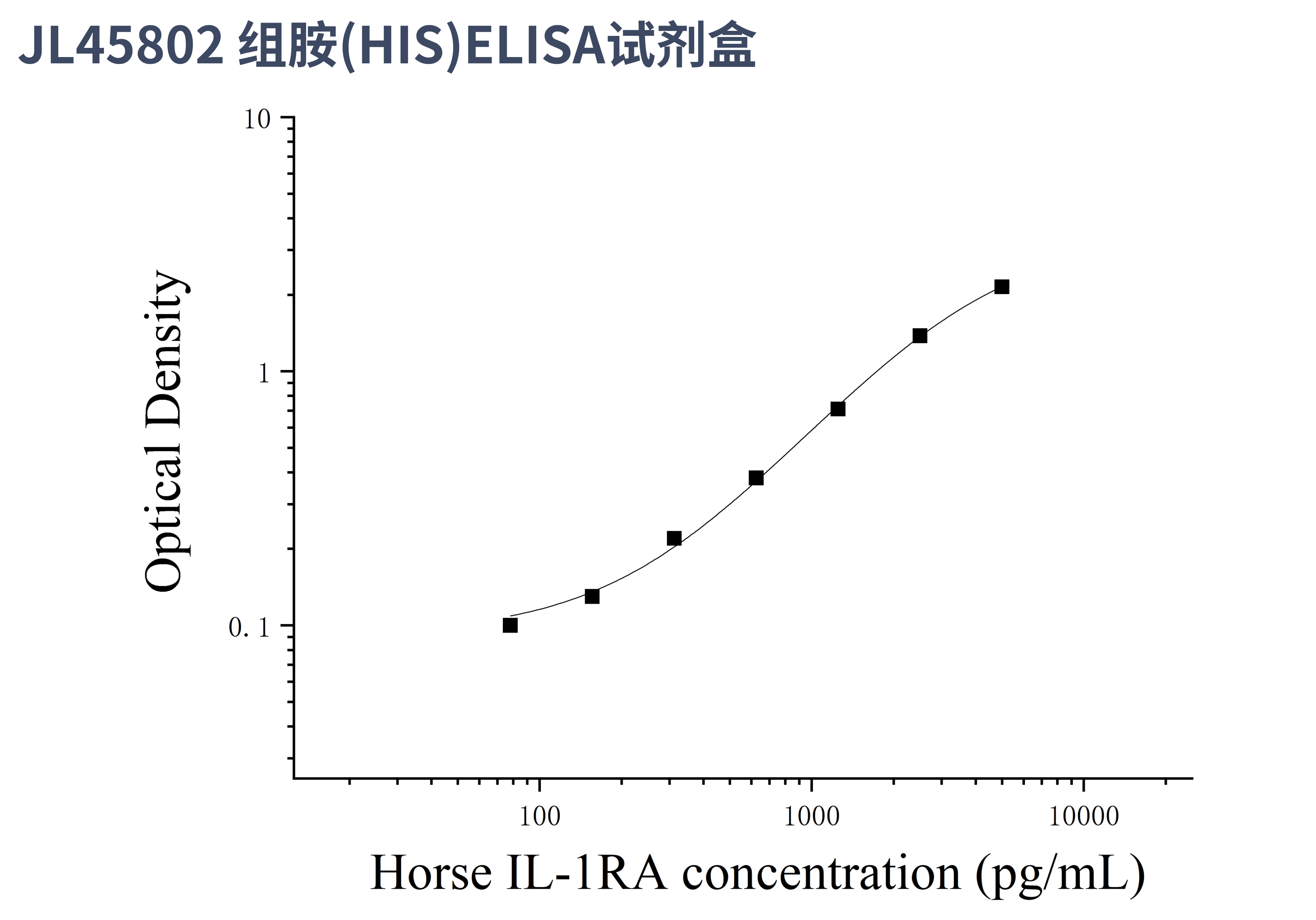 由于实验操作条件的不同( 如操作者、移液技术、洗板技术和稳定条件等),标准曲线的OD值会有所差异。以下数据和曲线仅供参考,实验者需根据自己的实验建立标准曲线。