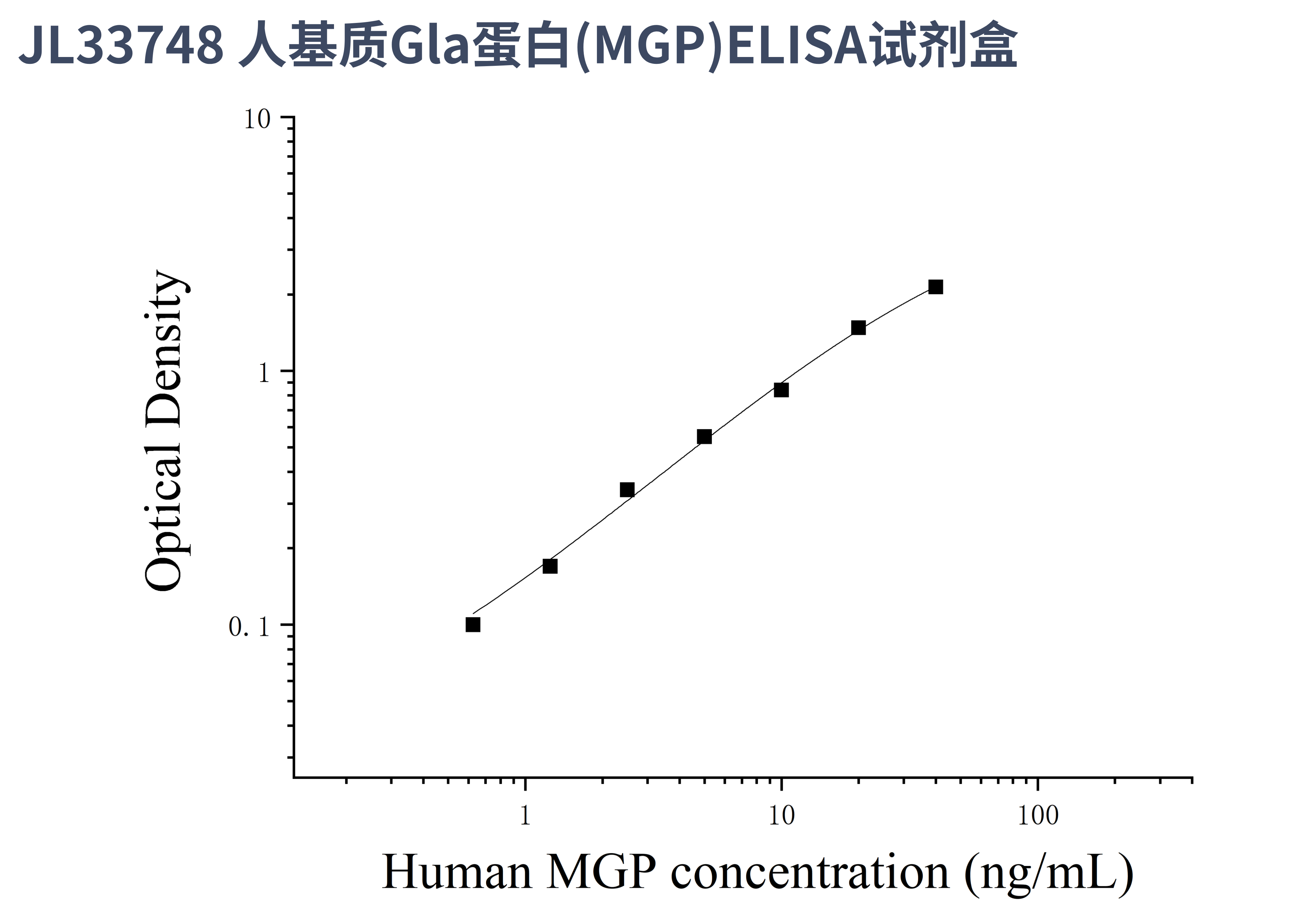 由于实验操作条件的不同( 如操作者、移液技术、洗板技术和稳定条件等),标准曲线的OD值会有所差异。以下数据和曲线仅供参考,实验者需根据自己的实验建立标准曲线。
