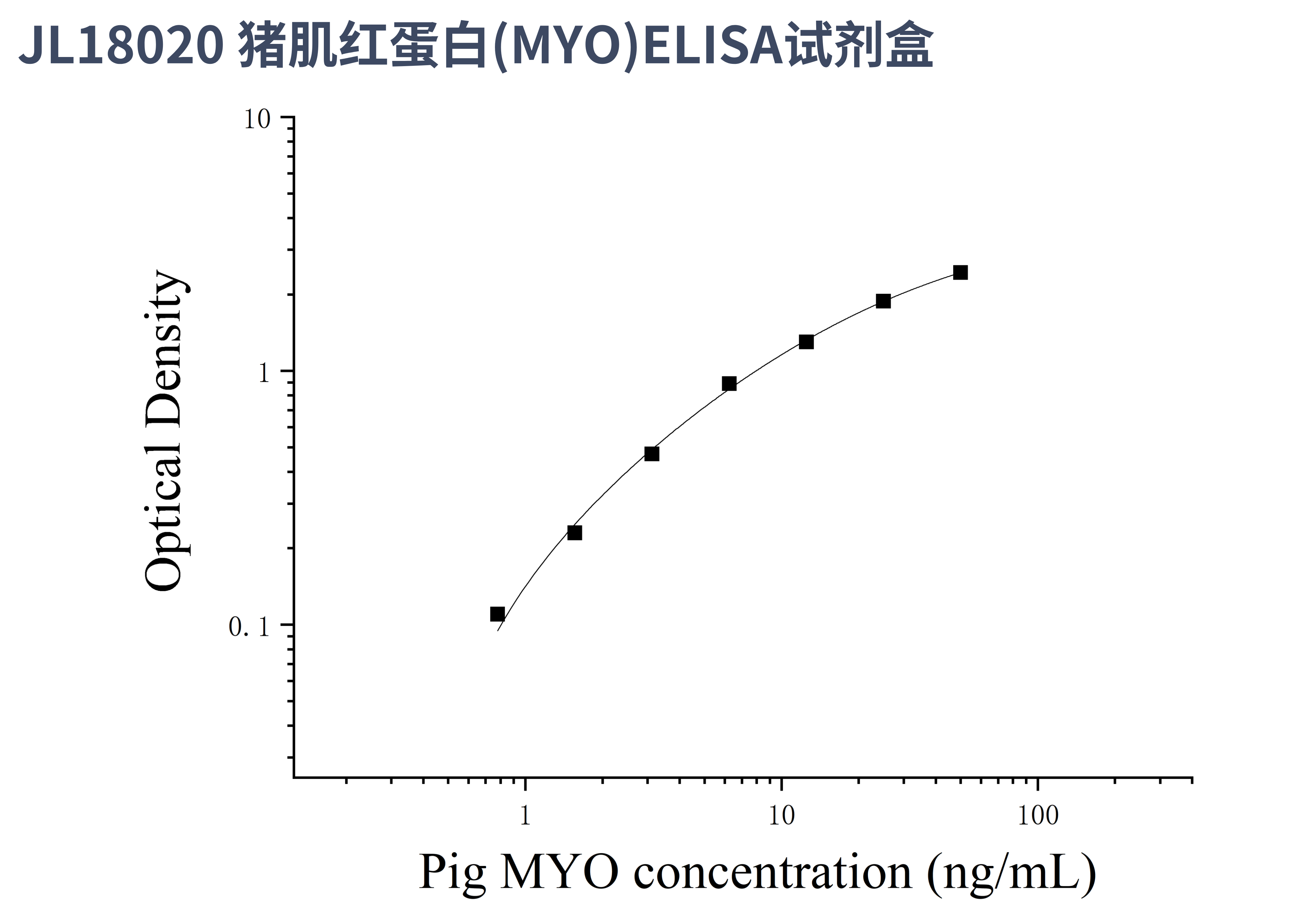 由于实验操作条件的不同( 如操作者、移液技术、洗板技术和稳定条件等),标准曲线的OD值会有所差异。以下数据和曲线仅供参考,实验者需根据自己的实验建立标准曲线。