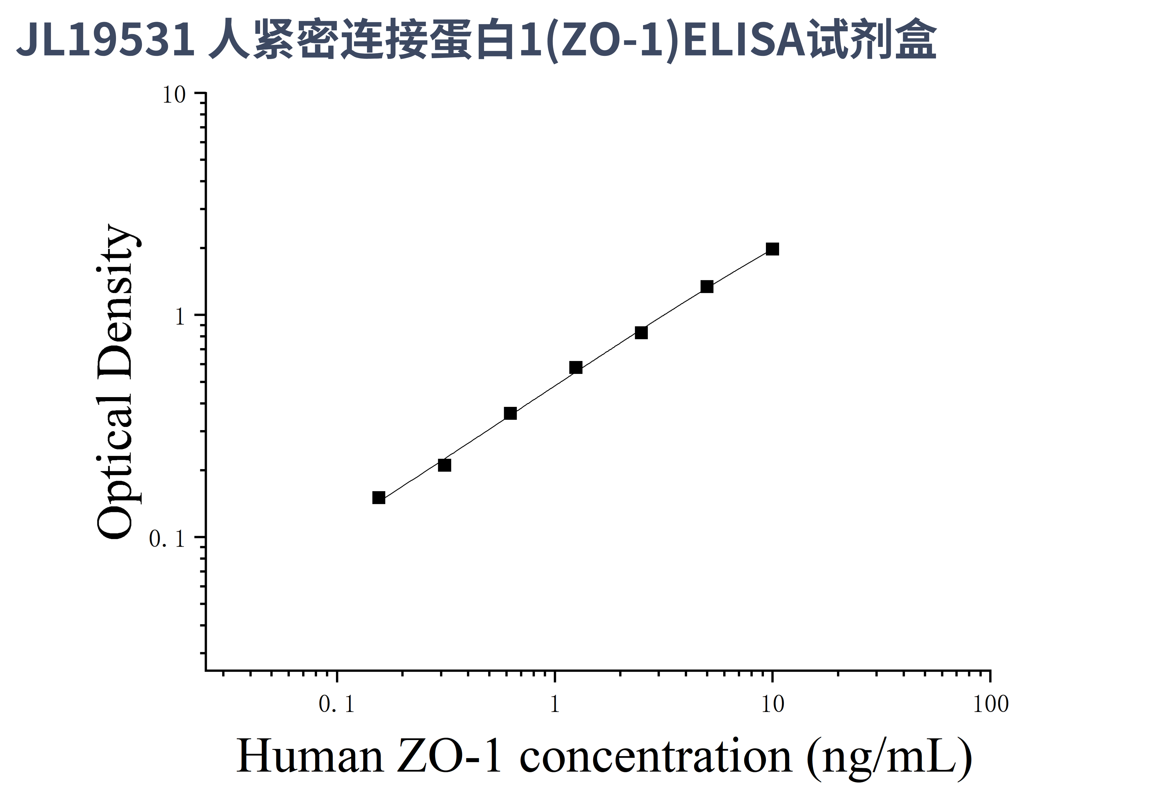 由于实验操作条件的不同( 如操作者、移液技术、洗板技术和稳定条件等),标准曲线的OD值会有所差异。以下数据和曲线仅供参考,实验者需根据自己的实验建立标准曲线。