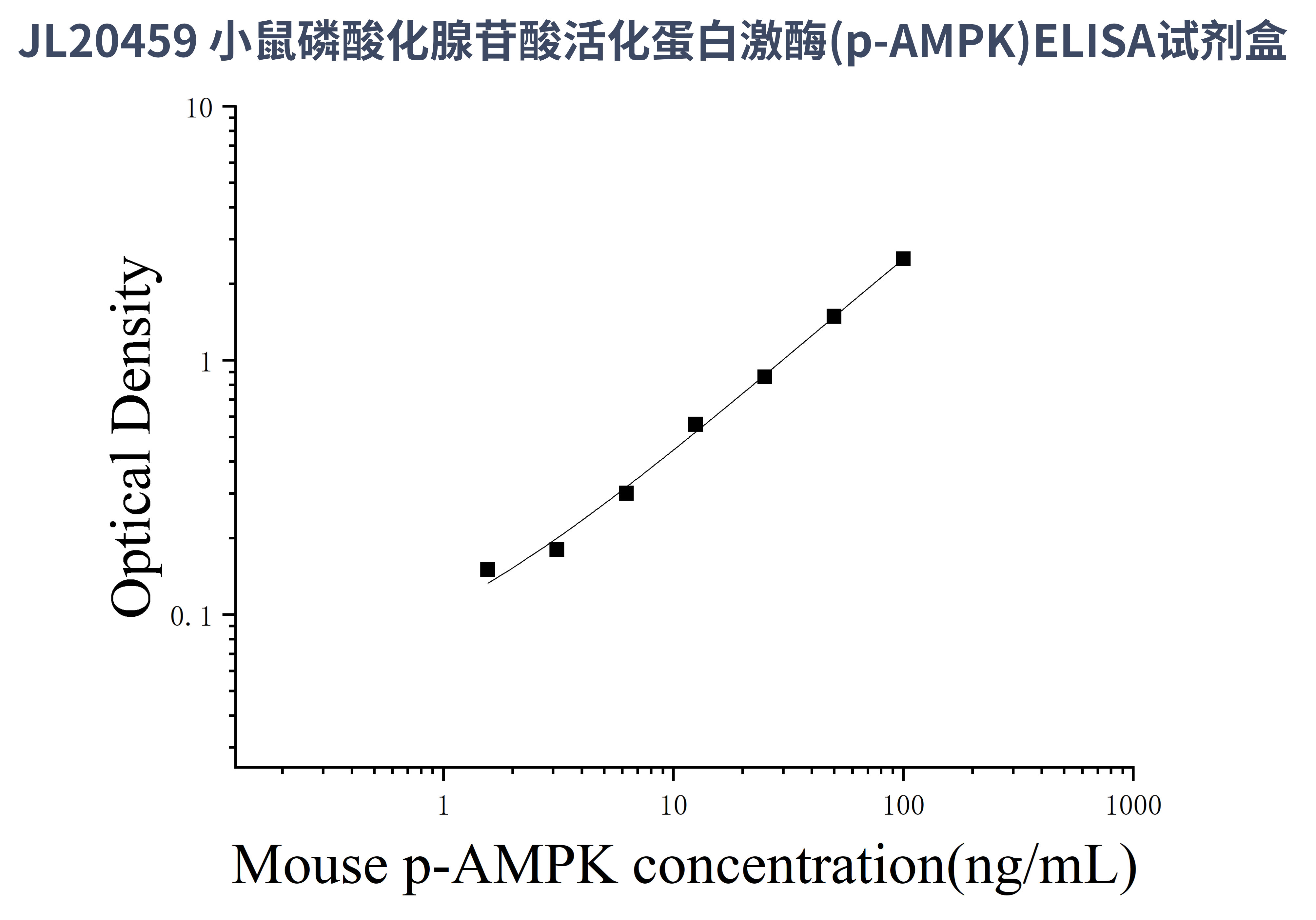 由于实验操作条件的不同( 如操作者、移液技术、洗板技术和稳定条件等),标准曲线的OD值会有所差异。以下数据和曲线仅供参考,实验者需根据自己的实验建立标准曲线。