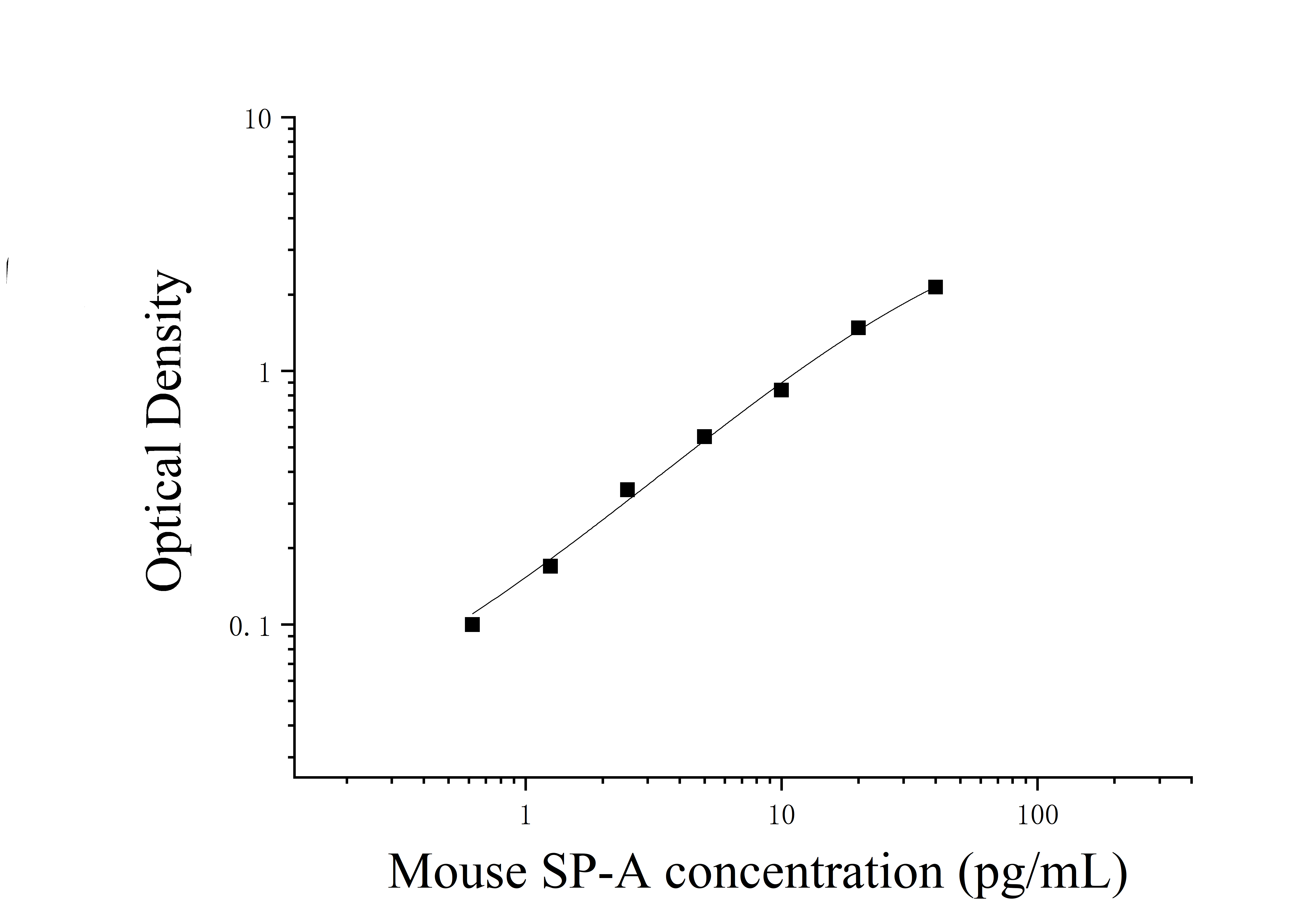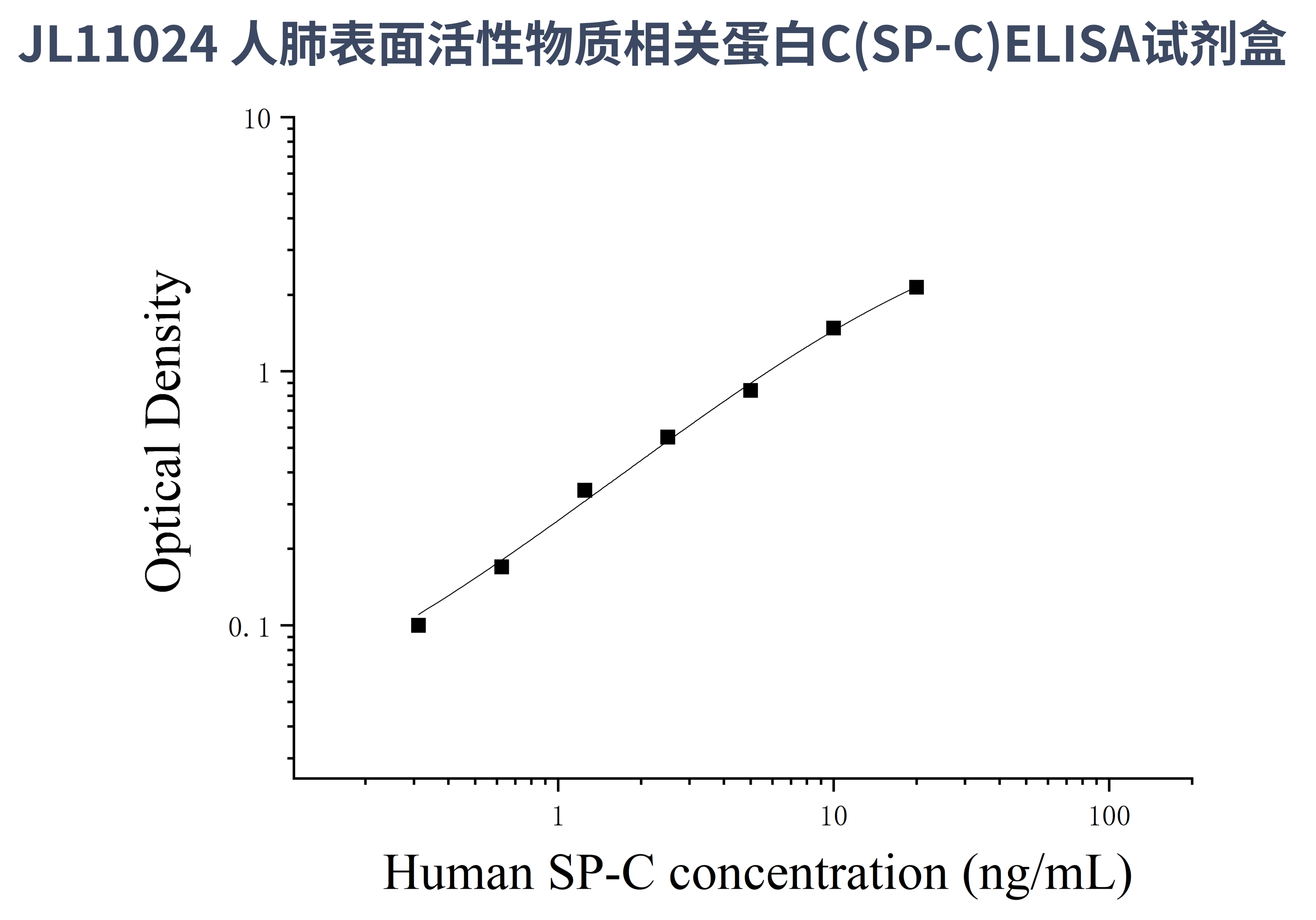 由于实验操作条件的不同( 如操作者、移液技术、洗板技术和稳定条件等),标准曲线的OD值会有所差异。以下数据和曲线仅供参考,实验者需根据自己的实验建立标准曲线。